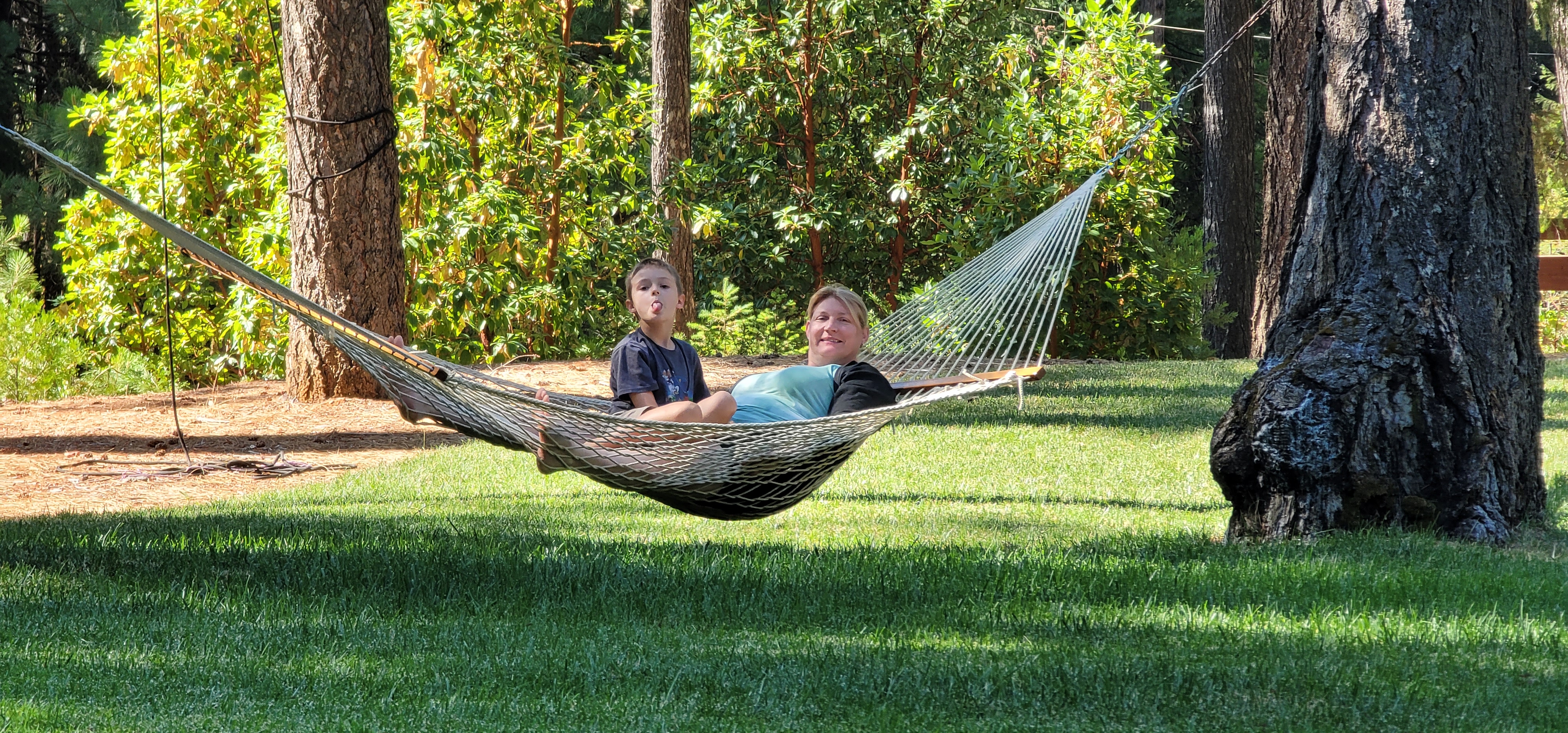 We spent an easy morning swinging softly in their hammock considering our options for the afternoon. One of us was agreeable to a picture…the other not so much.