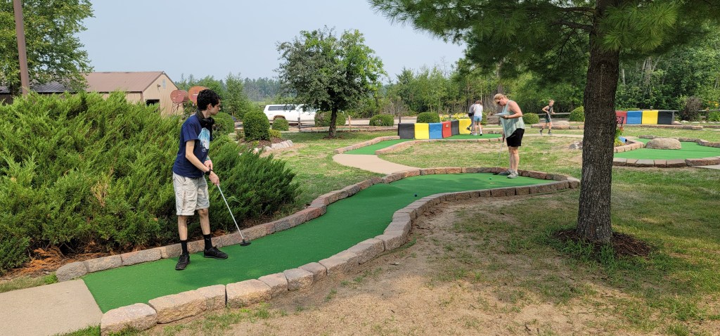 Brian learned that he shouldn’t translate putting prowess on the golf course to the mini-golf course. Alan Schneider and CreeperPuppy scored the only holes-in-one today.