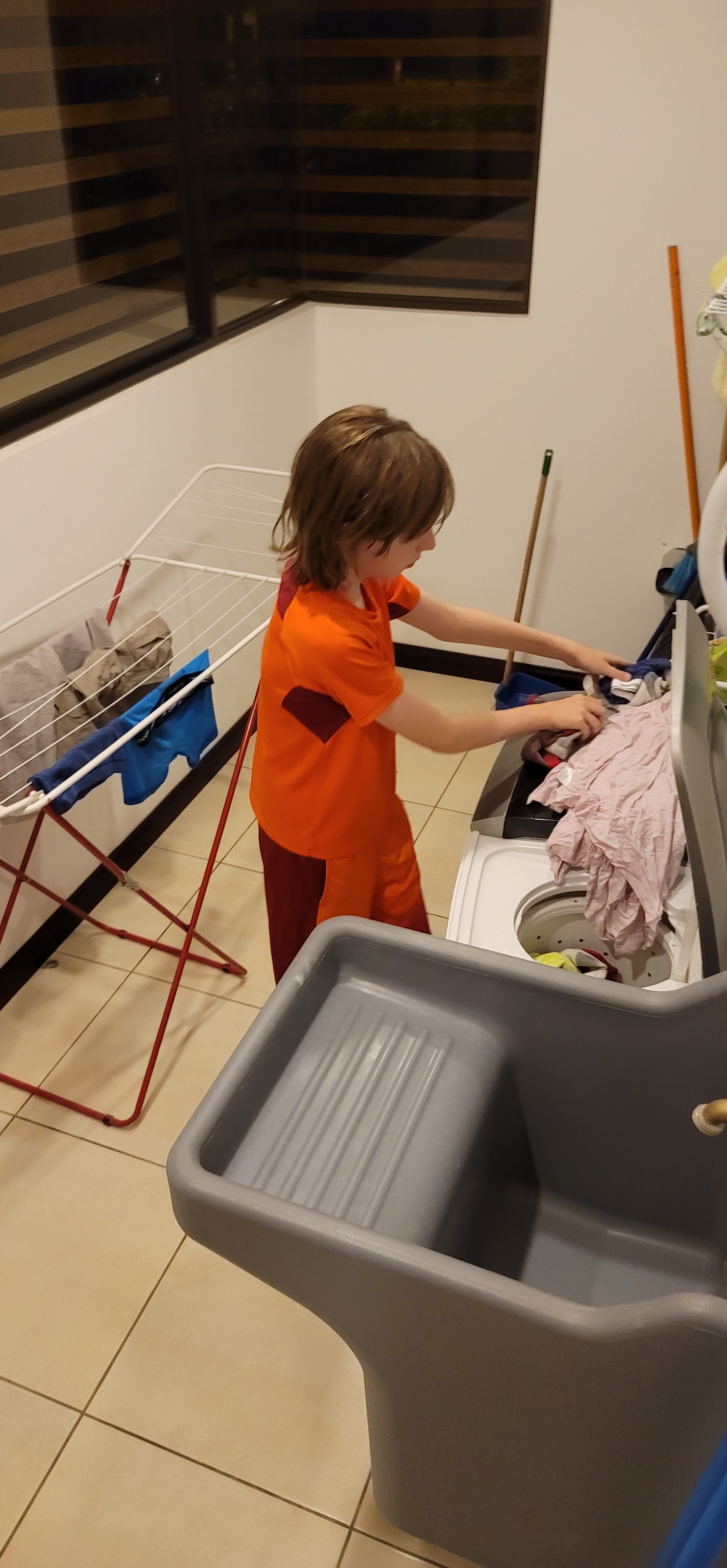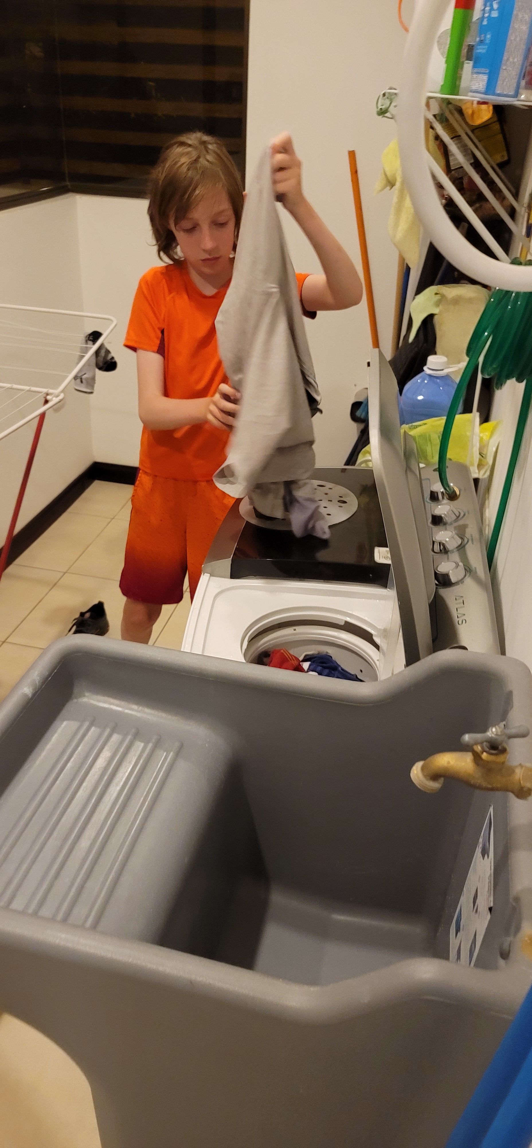 This kid also pulled duty at the dishes tonight while his siblings provided maximum support.