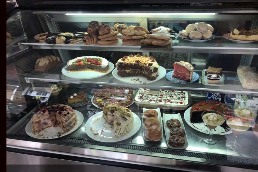 Yes, you read that right. The sushi station with the chef making rolls and sashimi is about 1 meter to the right of this glass case full of gorgeous cakes with a big espresso machine sitting behind. Not a combination we’ve ever seen before but both the sushi (last night) and the cake (tonight) were very good.
