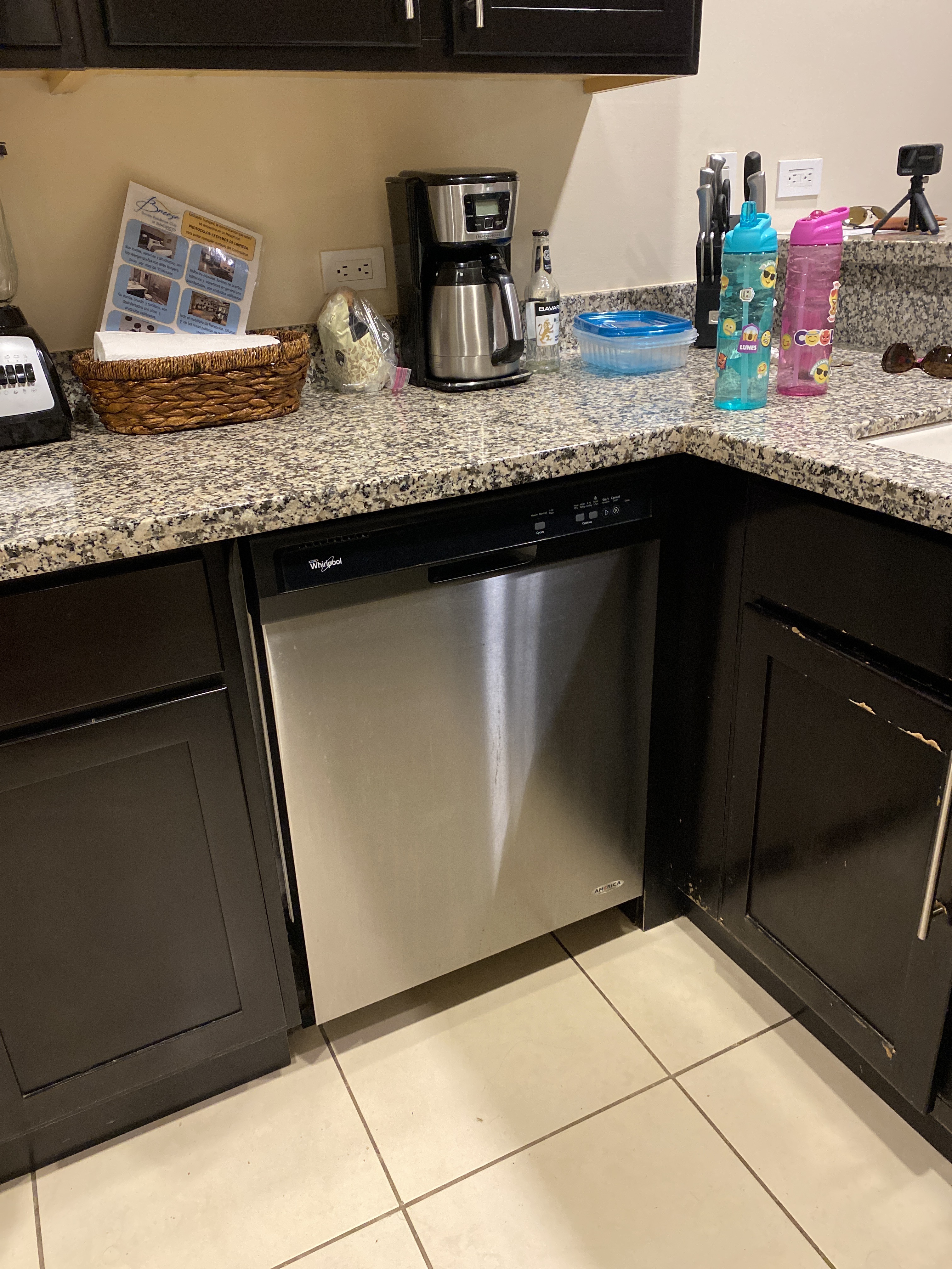 We all feel like we got a bit of an upgrade in accommodations. It’s a three bedroom condo rather than a stand alone house, but it’s in better shape, is better appointed and has all the luxuries we’d been missing. Dishwasher, fully automatic washer AND electric dryer, central air conditioning and even a garbage disposer. WOW! We’re going to be spoiled.