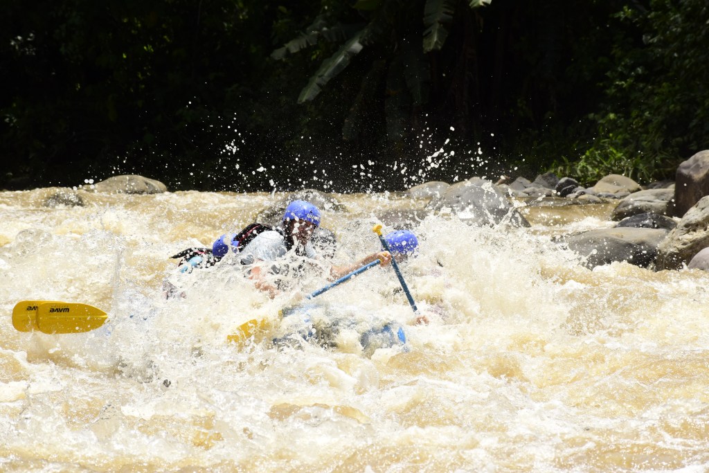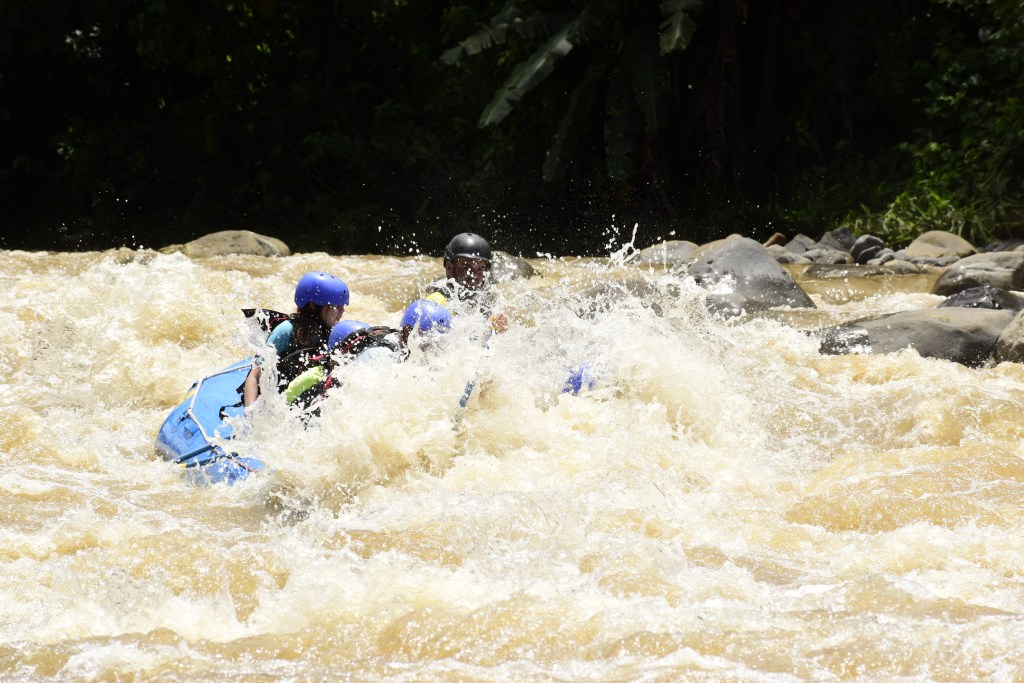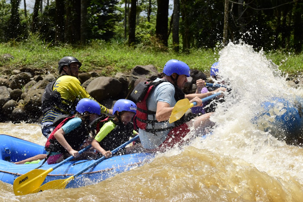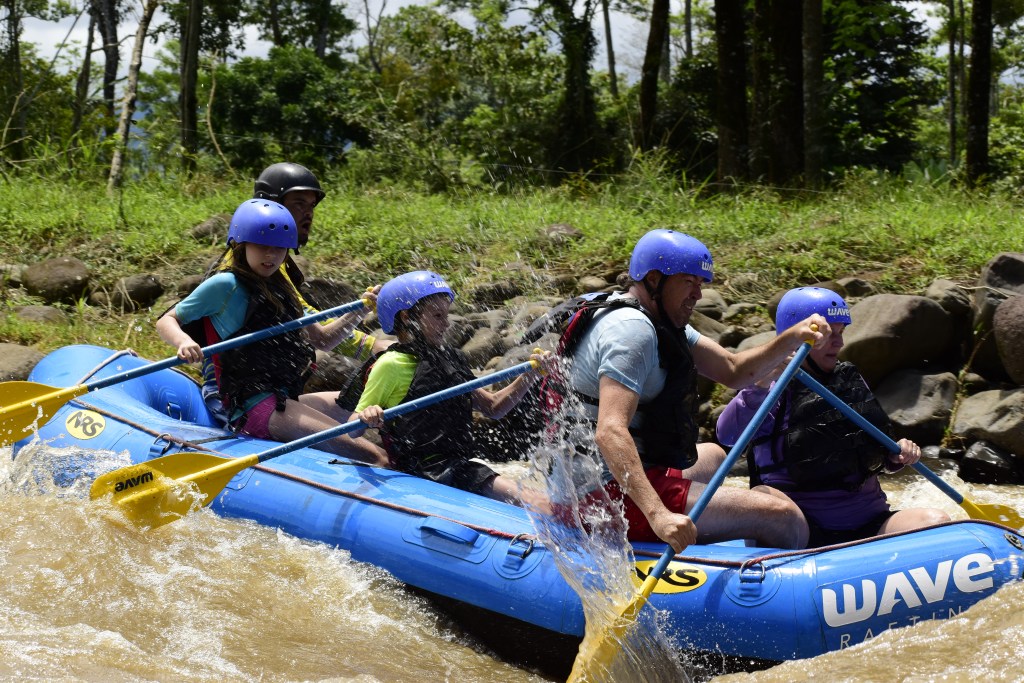 What a day! This is the first time visiting Costa Rica for the 5 Adventurers. It’s a popular destination because it’s natural ecology is appealing (volcanos, beaches, tropical forests, waterfalls) and also because it has built a reputation for outdoor adrenaline activities. Ziplines, horseback riding, rappelling, ATV riding tours, hiking, scuba and snorkeling etc etc etc are everywhere around the country. We’ve done some of those already and some the kids aren’t old enough for – but we found a good adrenaline rush for today. White water rafting!