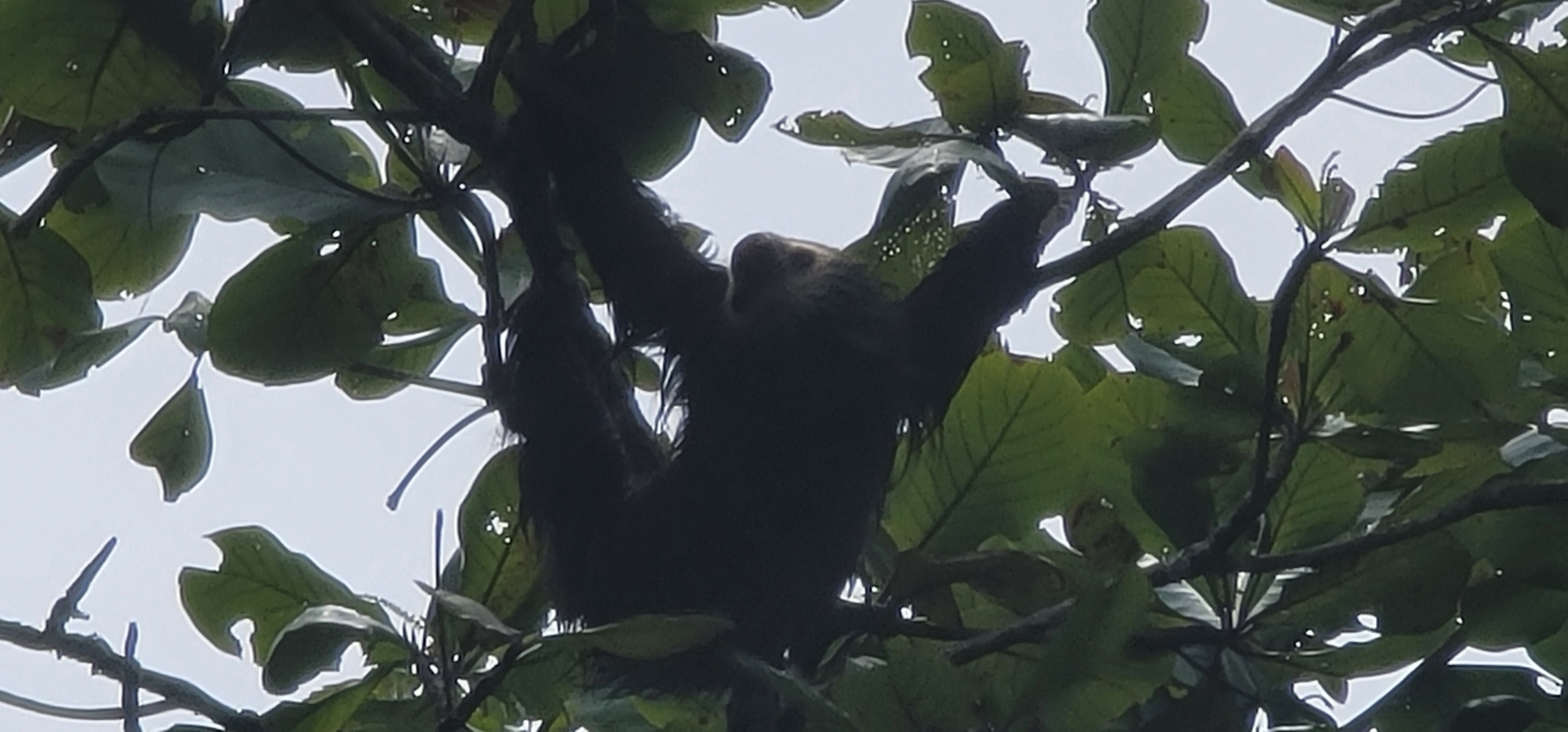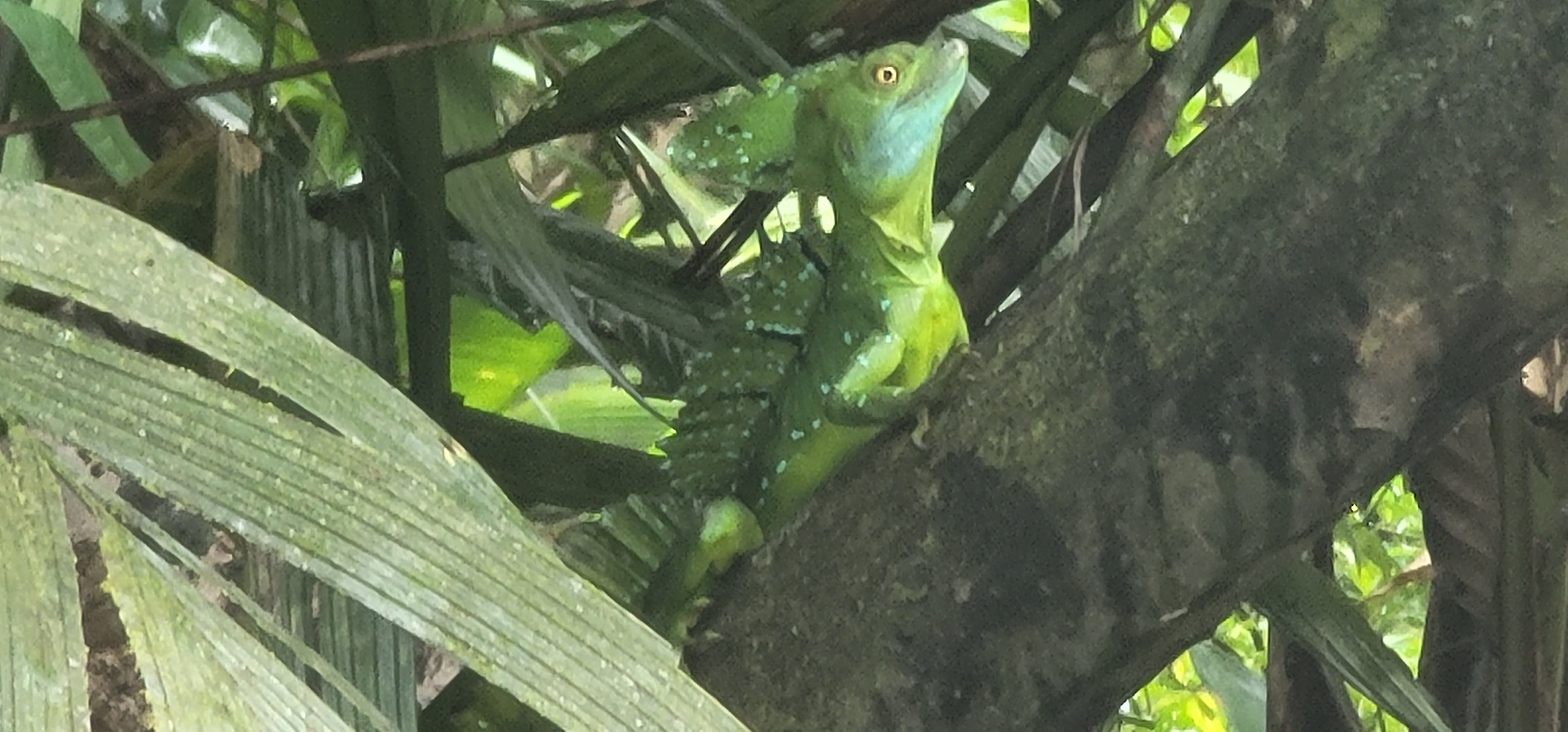 Today was a baby boa constrictor, beautiful herons, huge iguanas, some caiman (small alligators), a pair of basilisks, a pair of spider monkeys and one two-toed sloth having breakfast in the very top of the tree.