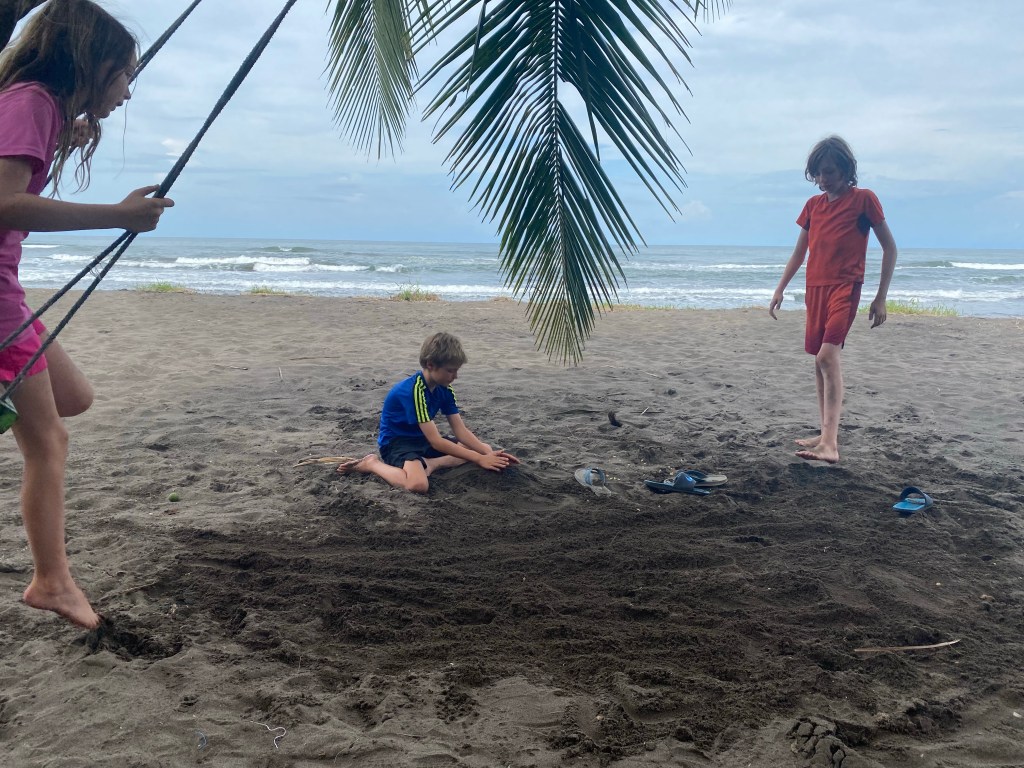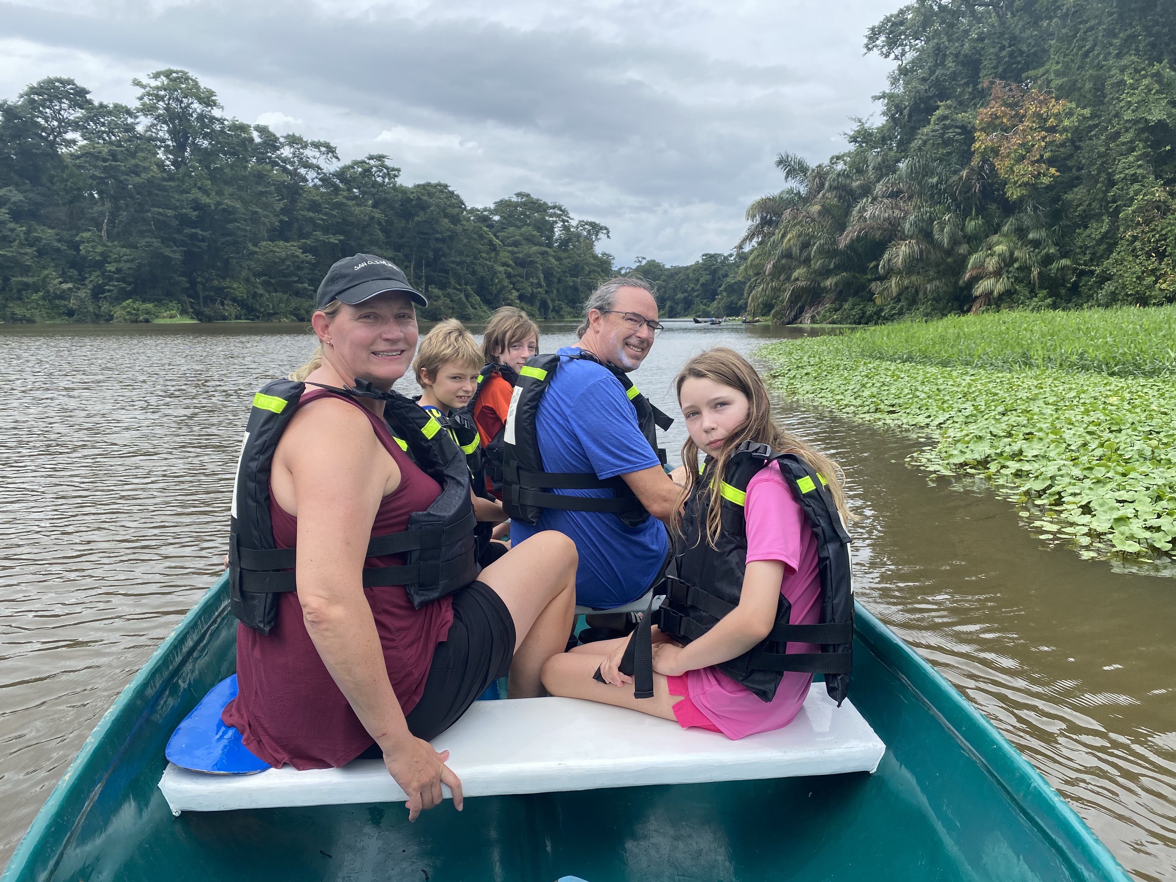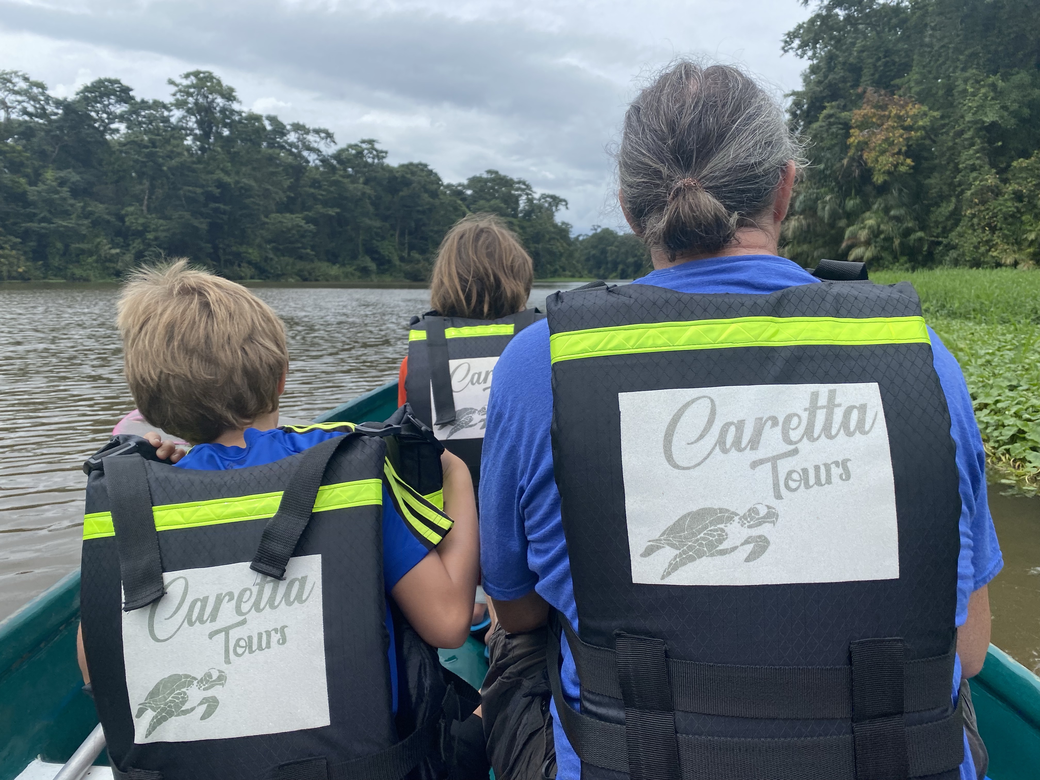 More rain is expected tomorrow so we moved tomorrow night’s activity to tonight after dinner. We did an adventure we all expected to enjoy and the main reason for coming to Tortuguero- looking for nesting turtles. The Park has strict rules on how the tours work so the turtles aren’t disturbed or deterred. Small groups, only with a licensed guide, dark clothes, no cameras on the beach. It’s in season for Green Turtle nesting so we had our fingers crossed. The 10 to midnight slot is usually better but that’s super late for the kids, especially after starting the day so early in the morning so we took the 8-10pm tour.