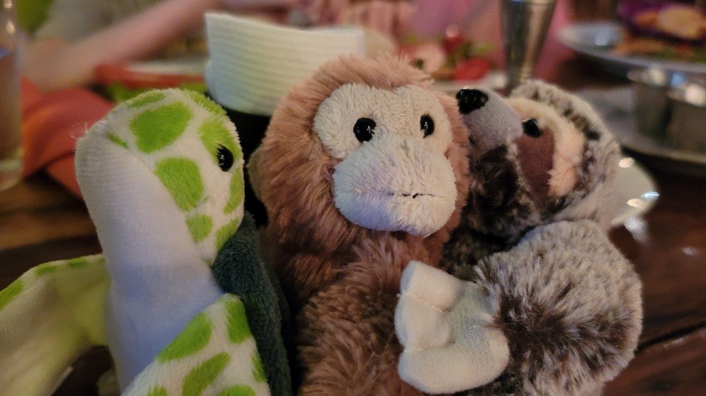We did a little shopping. It’s amazing how fast clothes tire out when you wear them on a three/four day rotation. We also did a little souvenir shopping and the kids decided to get…wait for the big surprise…more cuddles! To be fair, these guys are pretty cute and very small and they can hook around their wrist.