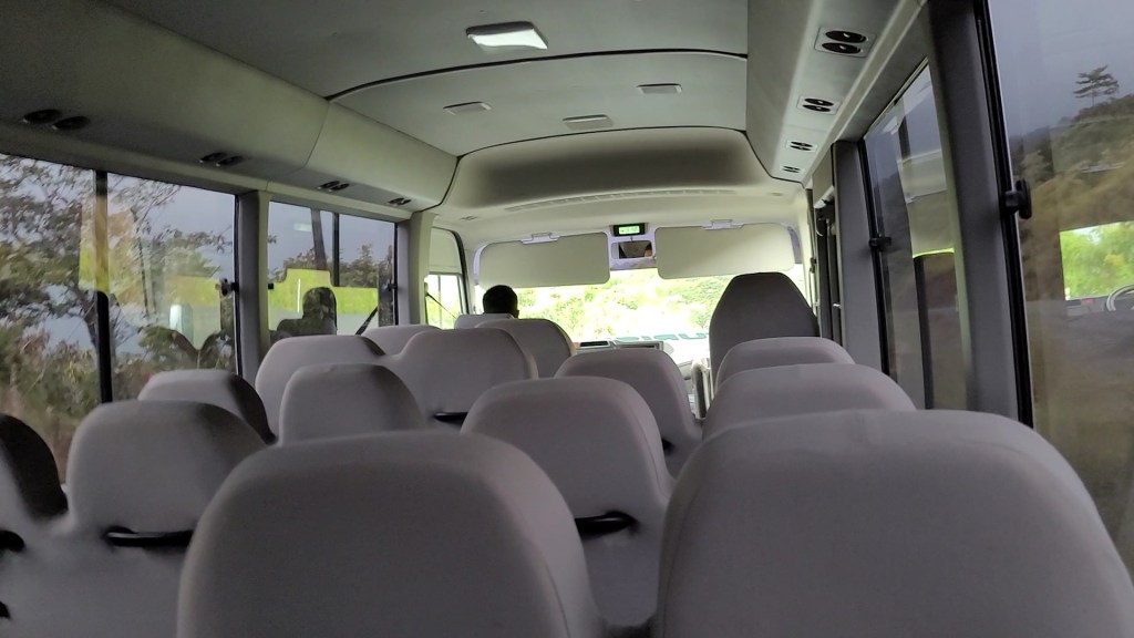 Luck was on our side – we had the whole thing to ourselves for the long 4 hour trip. This was particularly valuable since our house was off the official route and we feared we’d get dropped off 20 minutes from our destination looking for a bus or a taxi. As it turned out, our driver happily took us directly to the front gate of our AirBnB. It was such a relief, particularly since it was pouring rain at the time.
