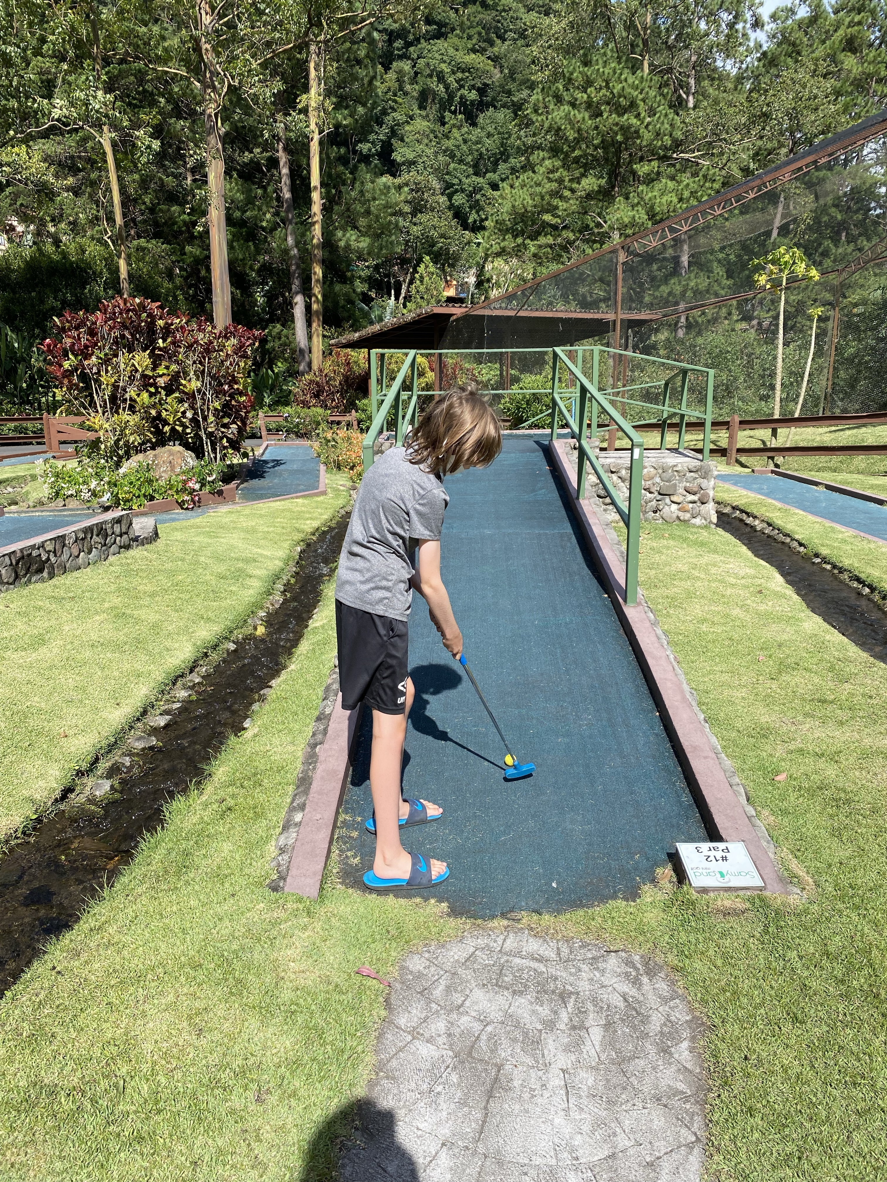 This afternoon was CreeperKitty and Mom’s turn for a date. They did one of his all time favorite activities – mini golf. This course was at a local resort and was designed by a nine year old boy named Samy and his 11 year old sister. It was an intense battle between mother and son and lots of fun was had by both.