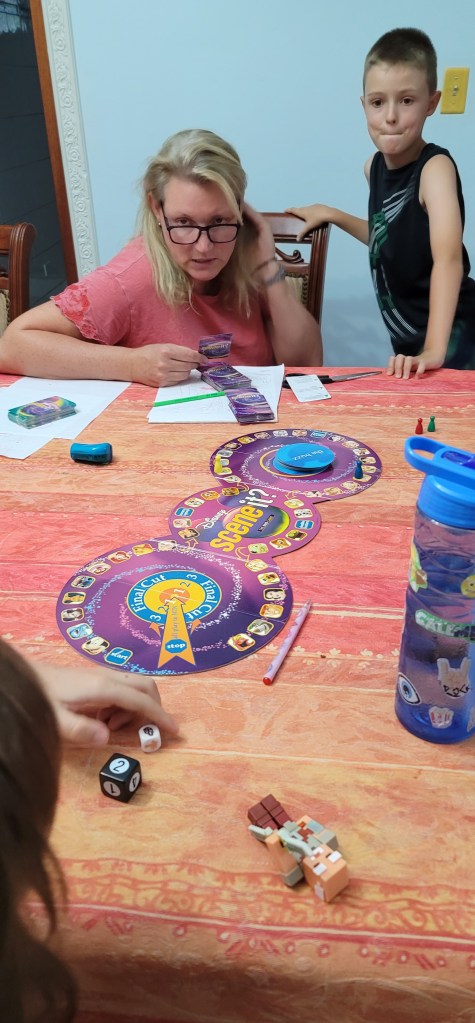 What they didn’t realize is the game was released in 2004 (before they were born) so some of their favorites weren’t covered and they aren’t quite as fluent in the older Disney catalogue. Mom steamed ahead at the end and won with 7 correct answers in a row. The kids were both impressed and distressed at her feat. What a day!