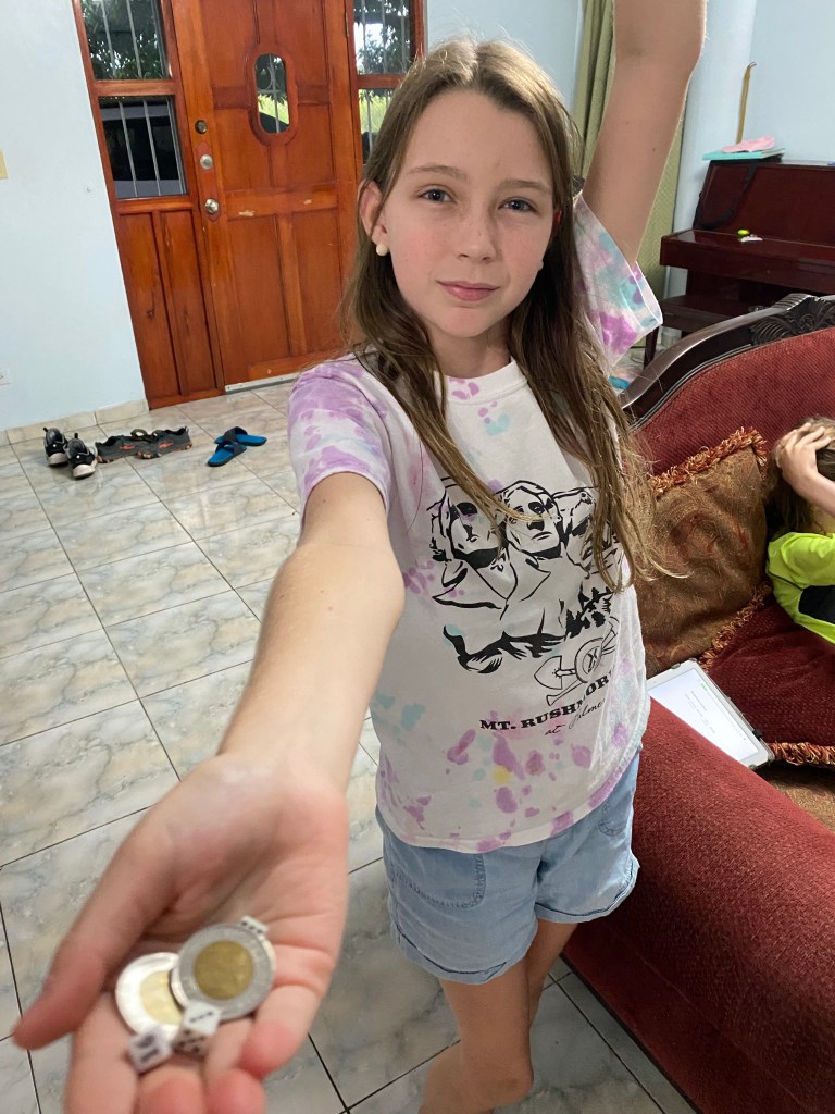 As a joke and convinced that it could never be found, Mom offered the kids a bounty of $1 if they found it. Dad quickly upped the ante to $2 and the search was on. Not 30 seconds later, Suaram triumphantly holds up the prize. Mom was both pleased at Suaram’s growing finding skills and was a little embarrassed that she was bested so quickly. But – the money was paid (in Panamanian Balboas) and the universe righted for at least one more day.