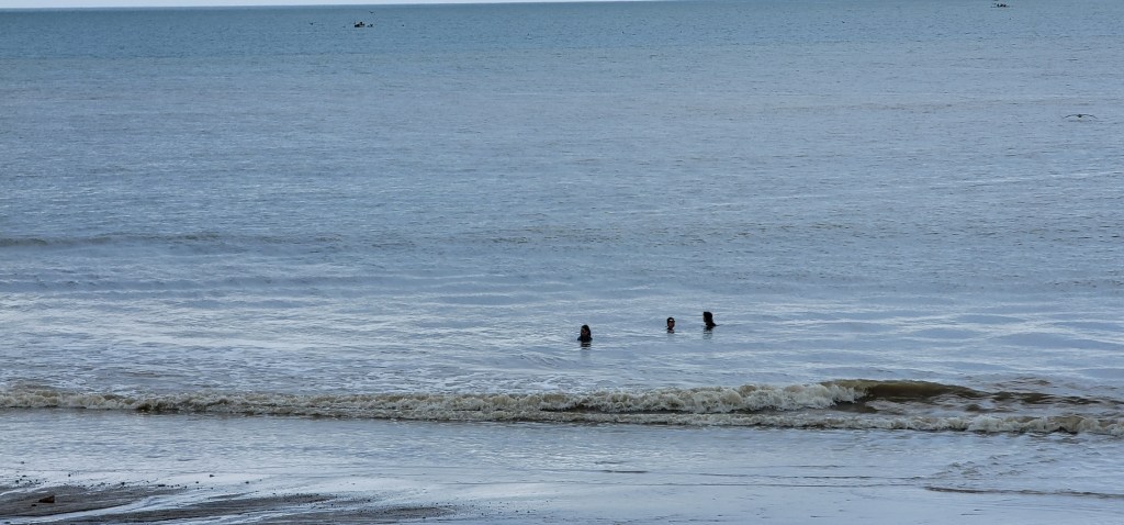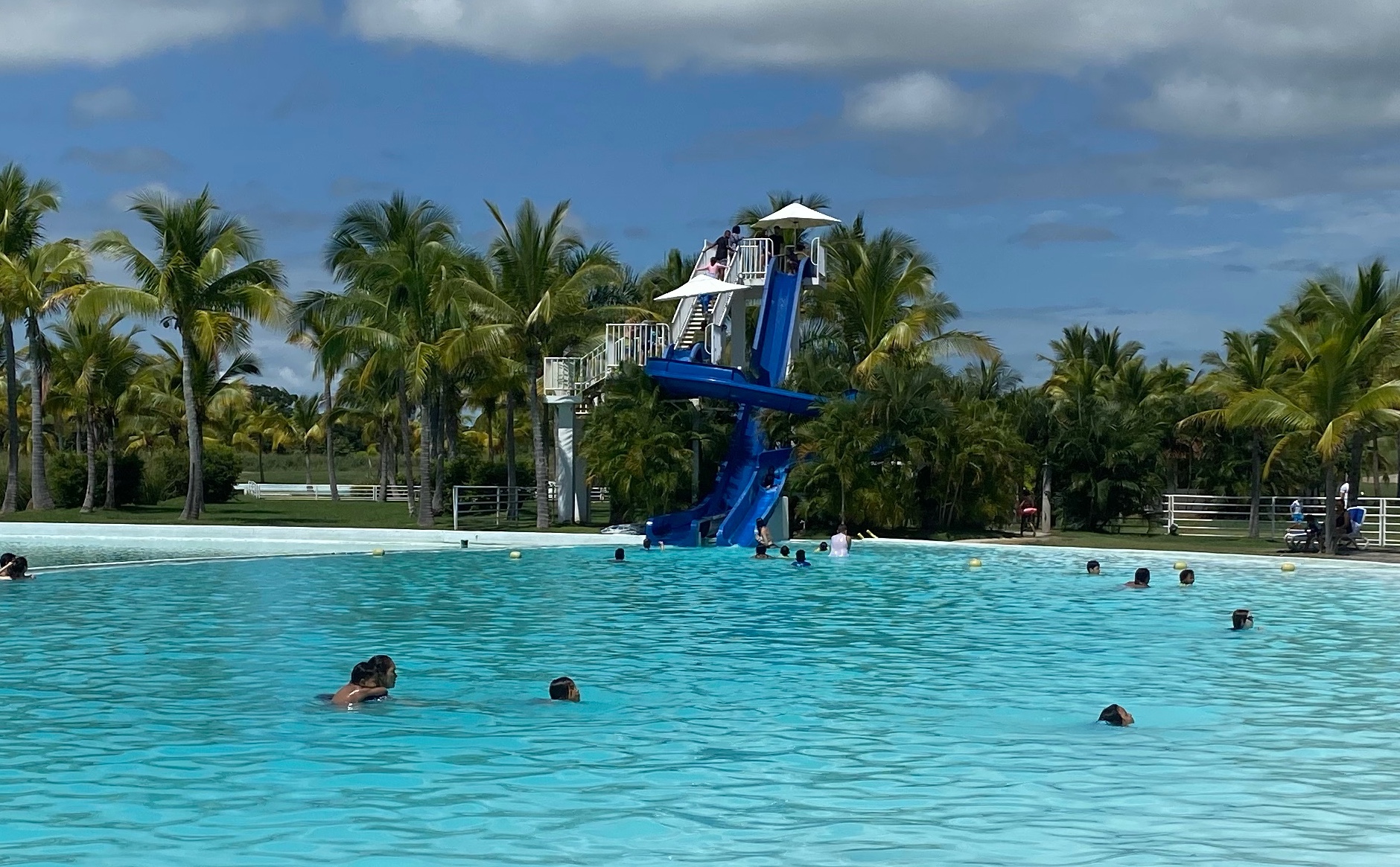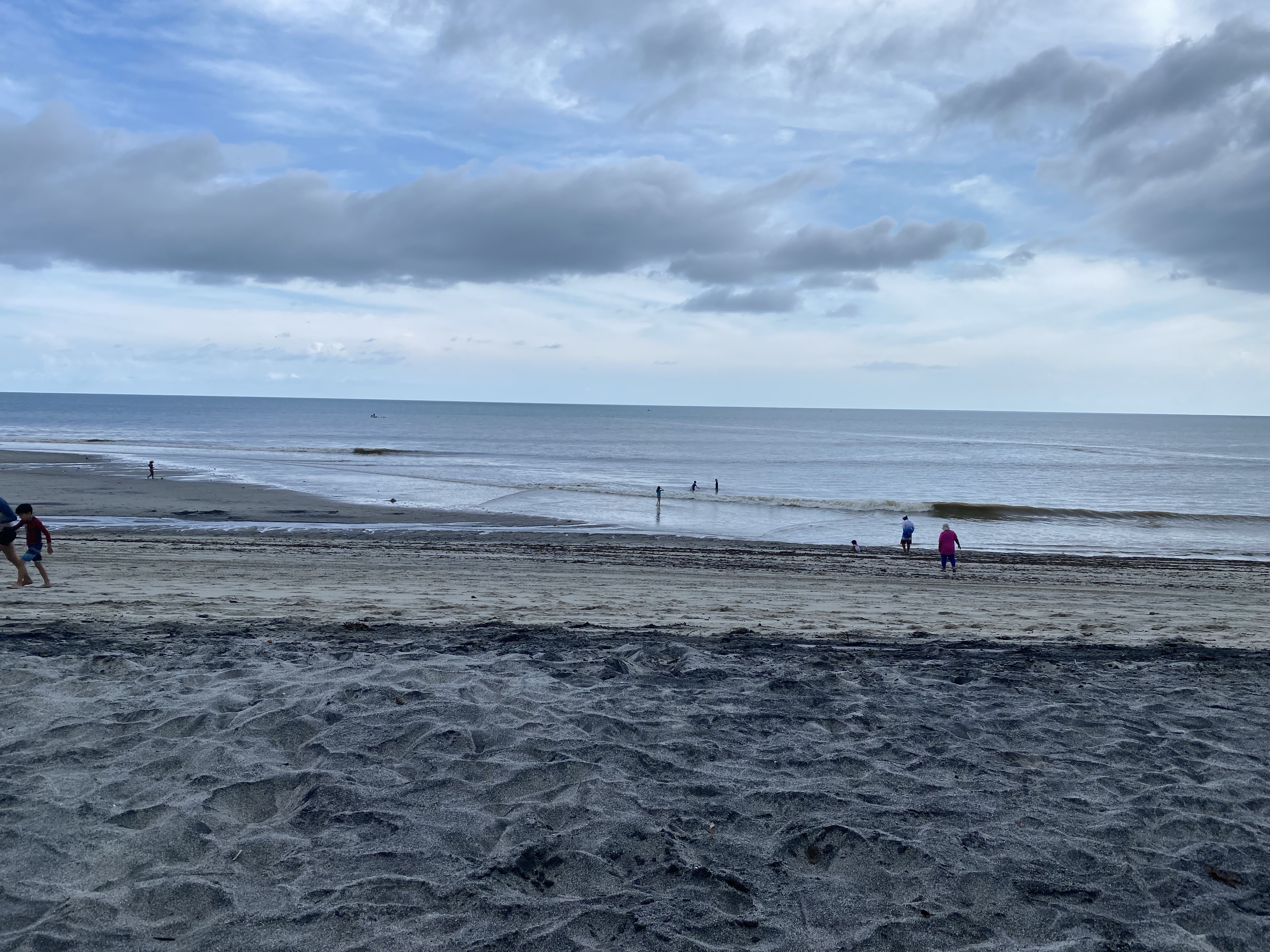 During lunch we could see the clouds threatening and hear thunder rolling in the distance. We headed down the path to the Pacific thinking we’d have about 20 minutes before we got poured on but it never rained. Instead we spent some time at the beach and then headed back to the lagoon for one last round on the water slides. The kids organized a great day.