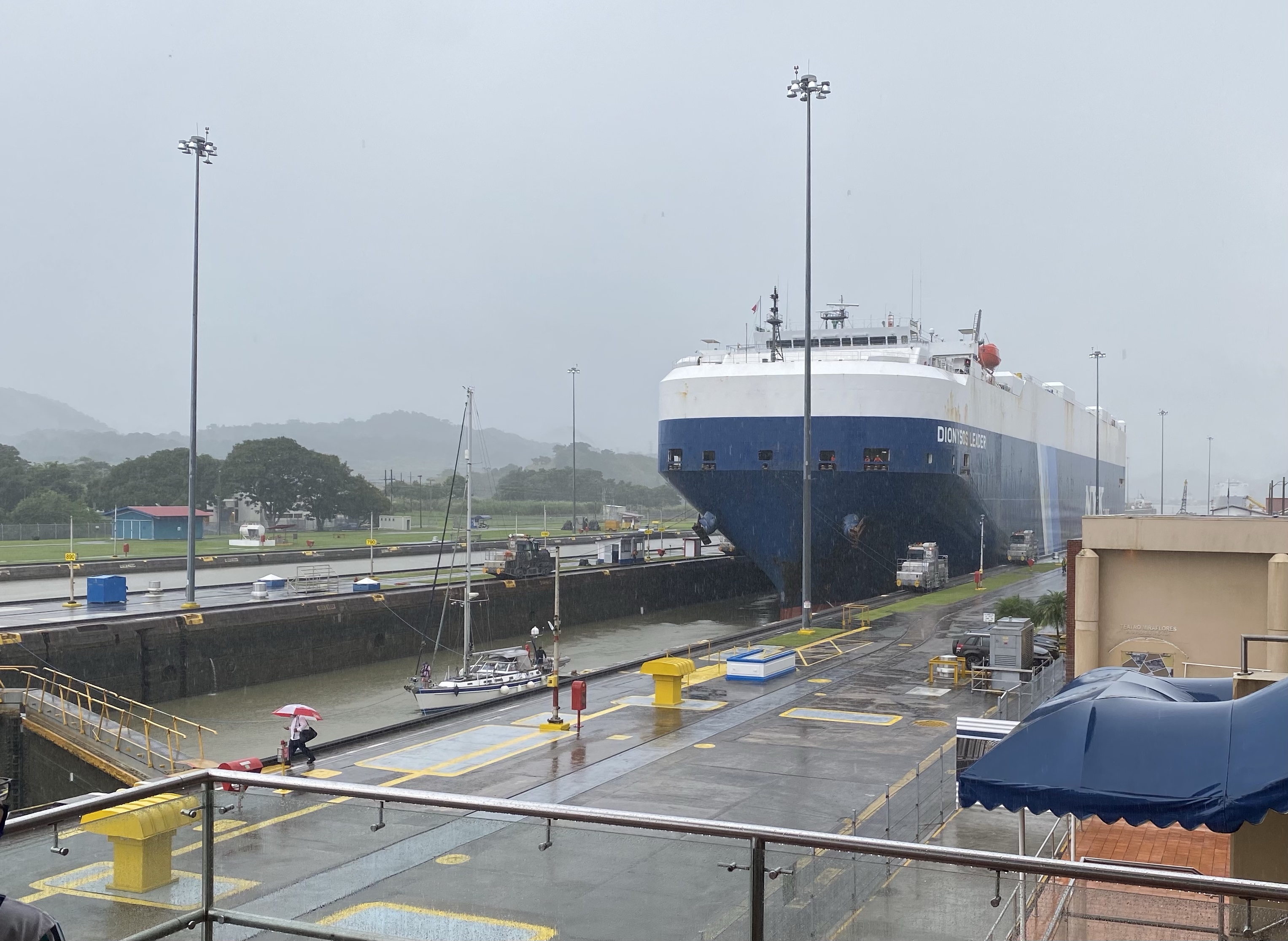 Then we spotted a gigantic ship coming from Gatún Lake headed toward us. The guide said it was about 90 minutes away and would be passing through the 107 year old locks right in front of us. That’s a long time for the kids to wait, but they muscled through (perhaps because they had no choice) and we got to see a sailboat and that huge ship pass through the lock.
