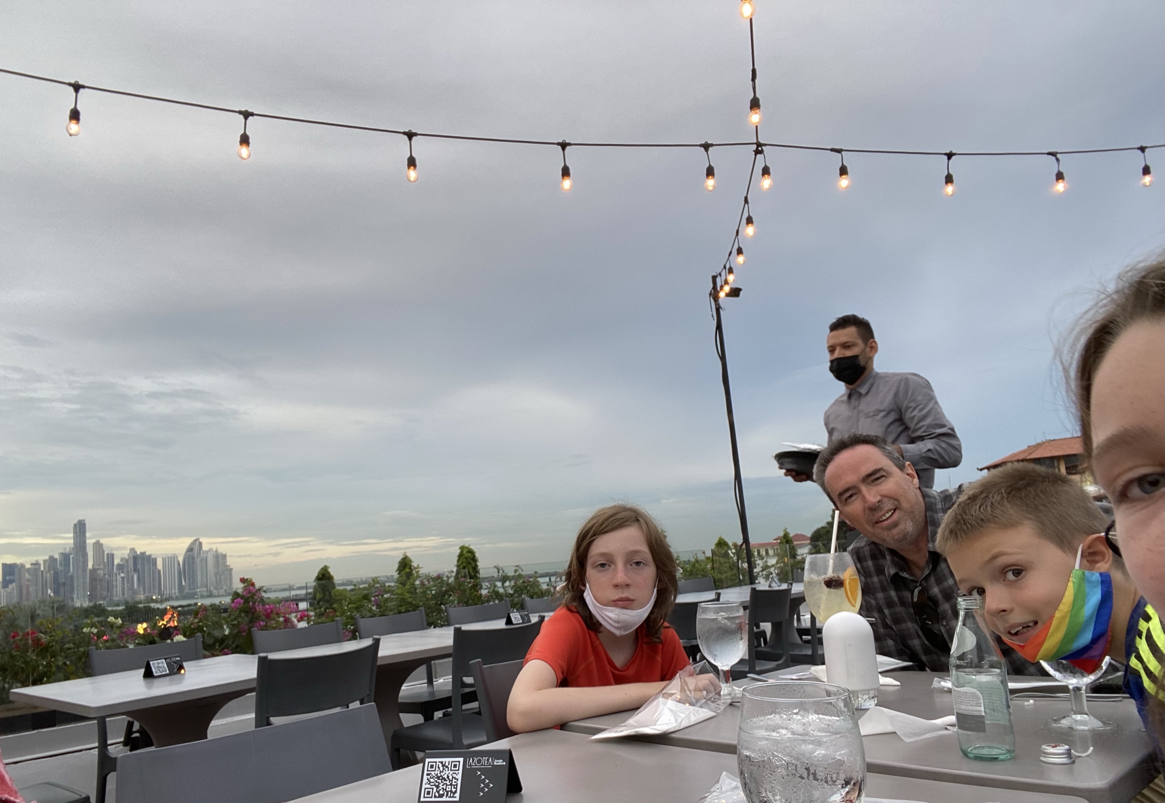 We celebrated by finding a rooftop restaurant near our neighborhood and enjoying some good food, good drinks and a great view of downtown Panama City. It was the kids’ first rooftop dining experience and a pool in the restaurant was a first for us all.