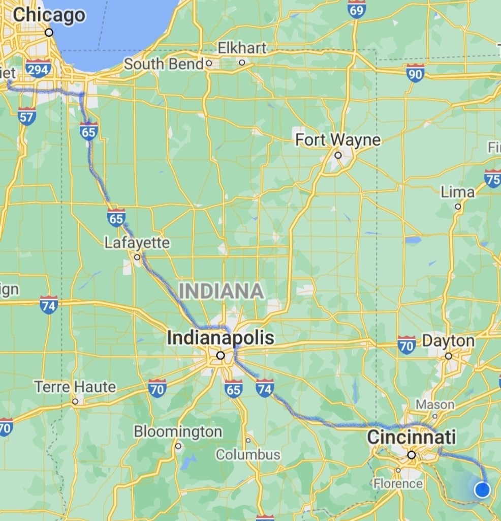 Today was a driving day spent mostly in Indiana as we traveled from the Greater Chicago area to the Greater Cincinnati area.
