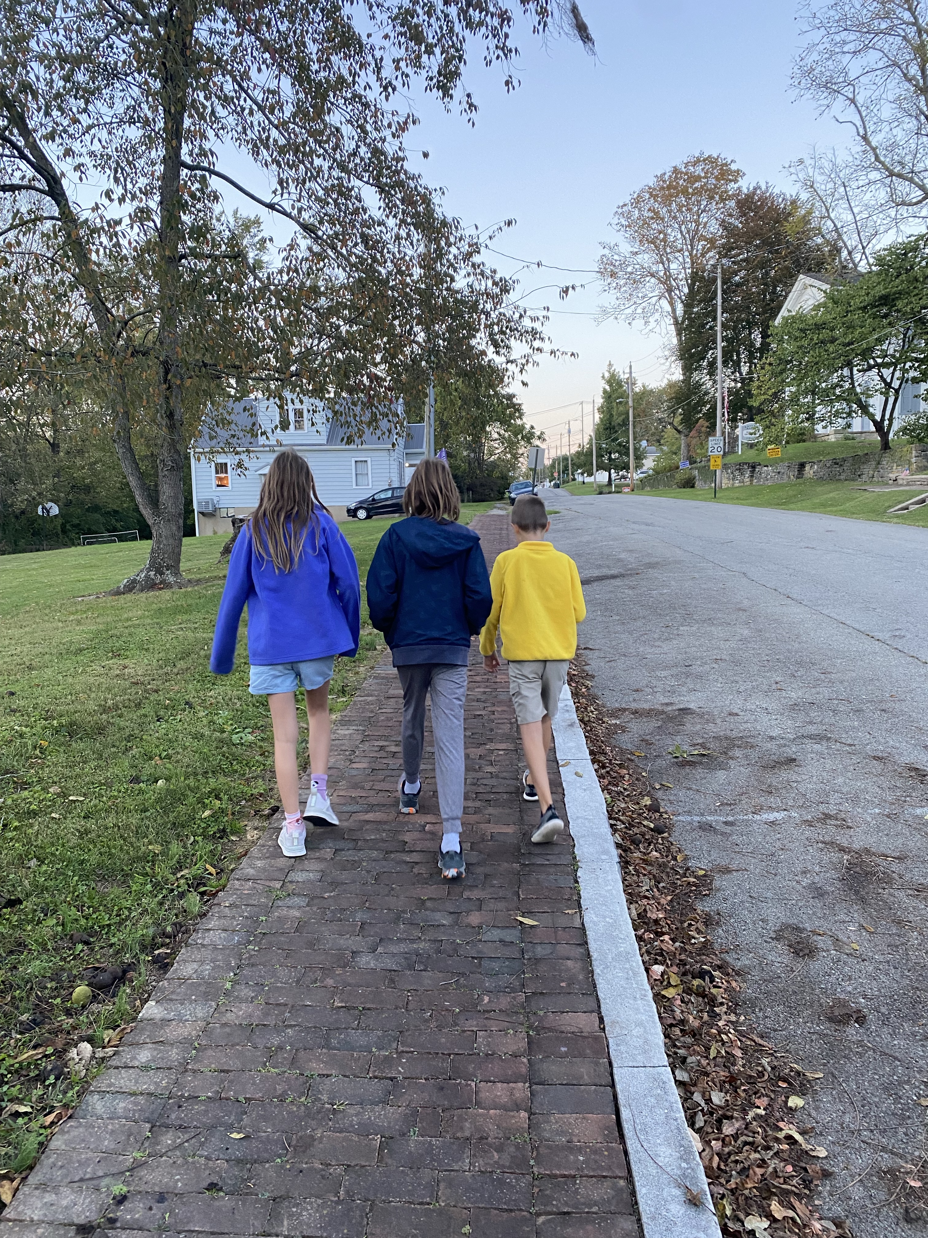Dinner was Grandma’s chili and cornbread muffins and then a walk through a beautiful fall evening to Georgetown’s statue of Ulysses S. Grant.