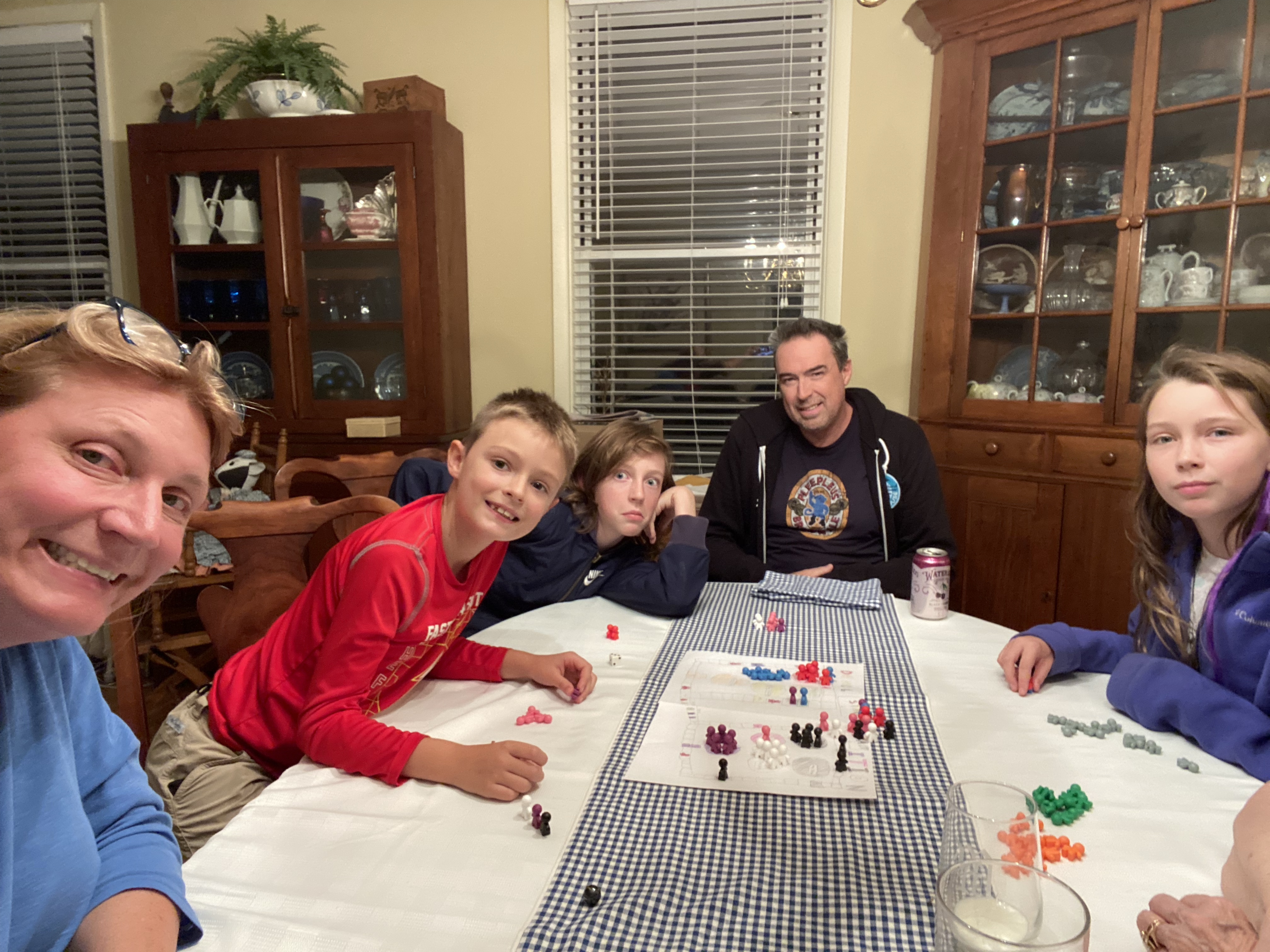 We all (including Mamoh not shown) got to test out the game which is called Demolition. It has territories, regeneration spaces and a ‘peeples pass’ to transport pieces from one part of the board to the other. It was really creative, very cool and – based on our experience- fun for ages 8-80. We still don’t know who won, we paused the epic battle when bedtime came around and will pick it up tomorrow. CreeperKitty and Mamoh have been battling all game for the lead but we’ll have to see what happens.