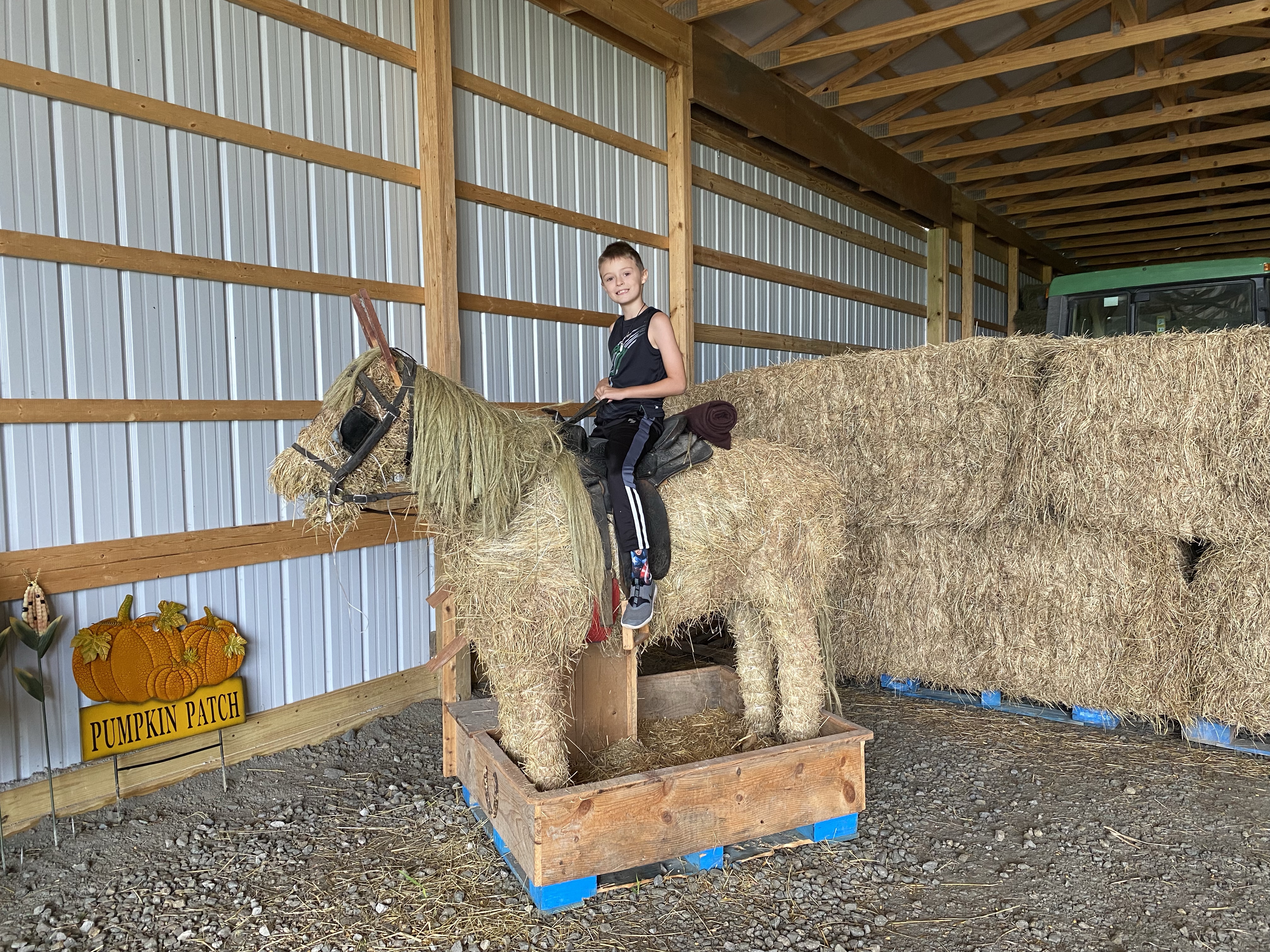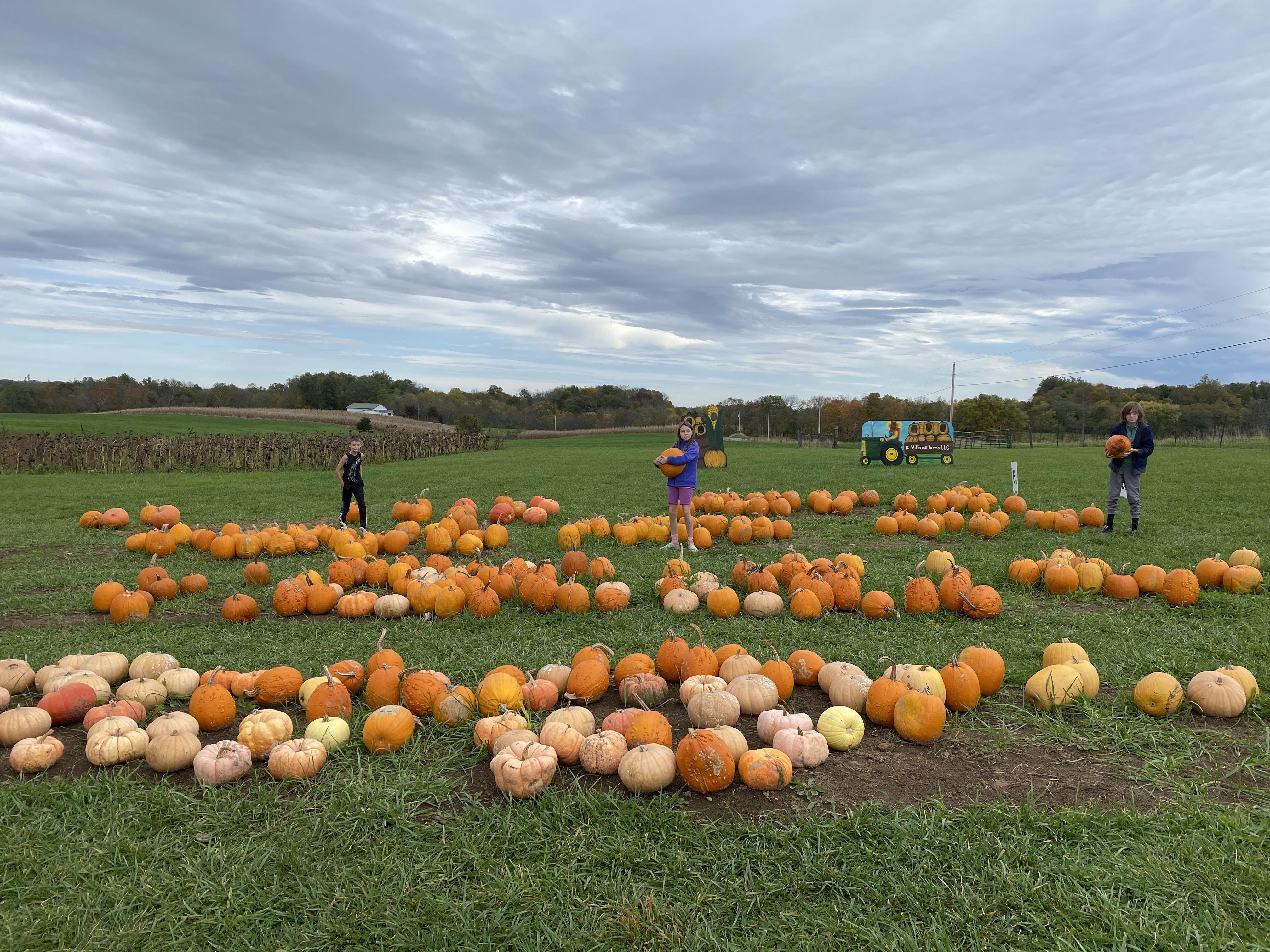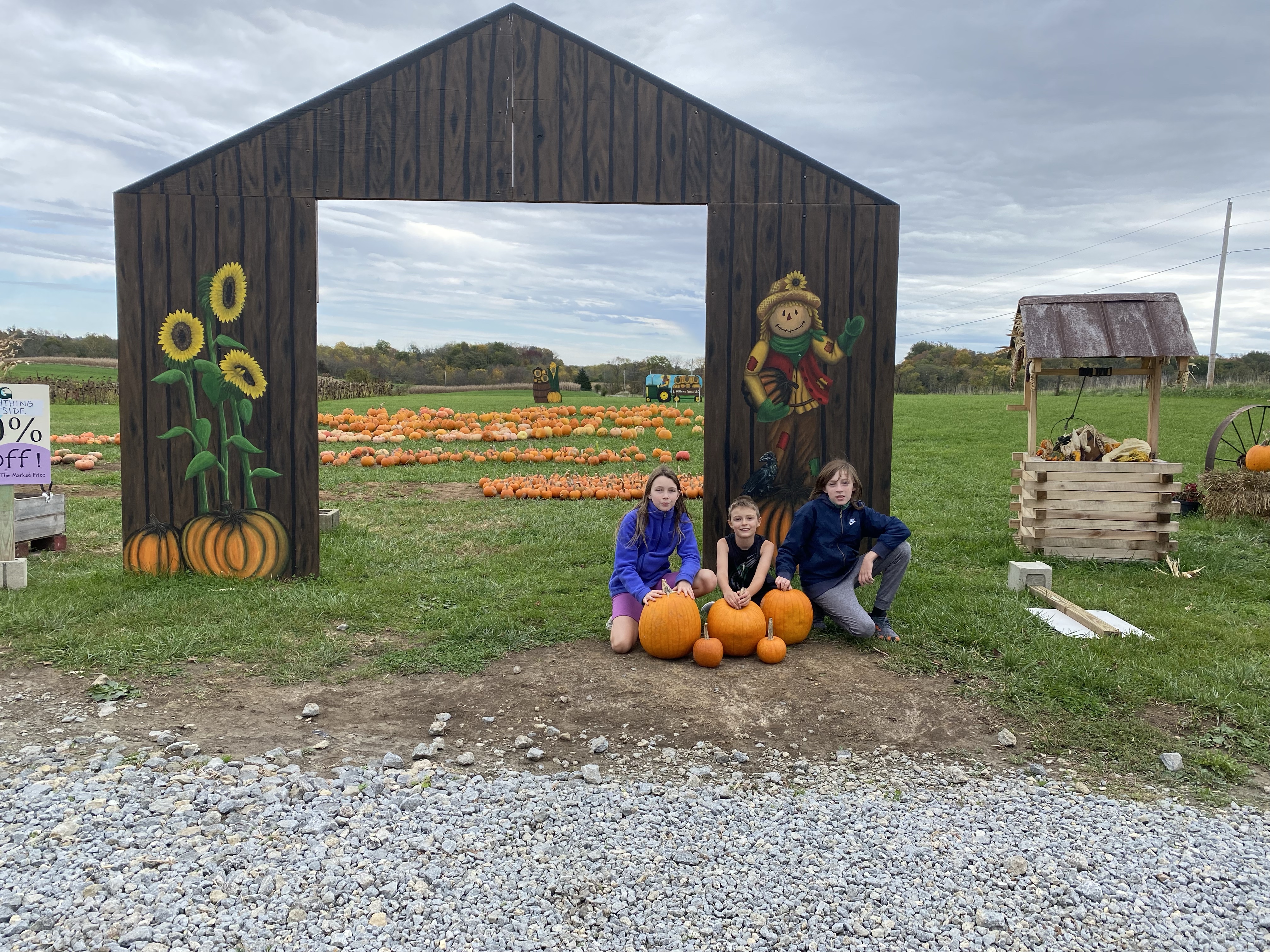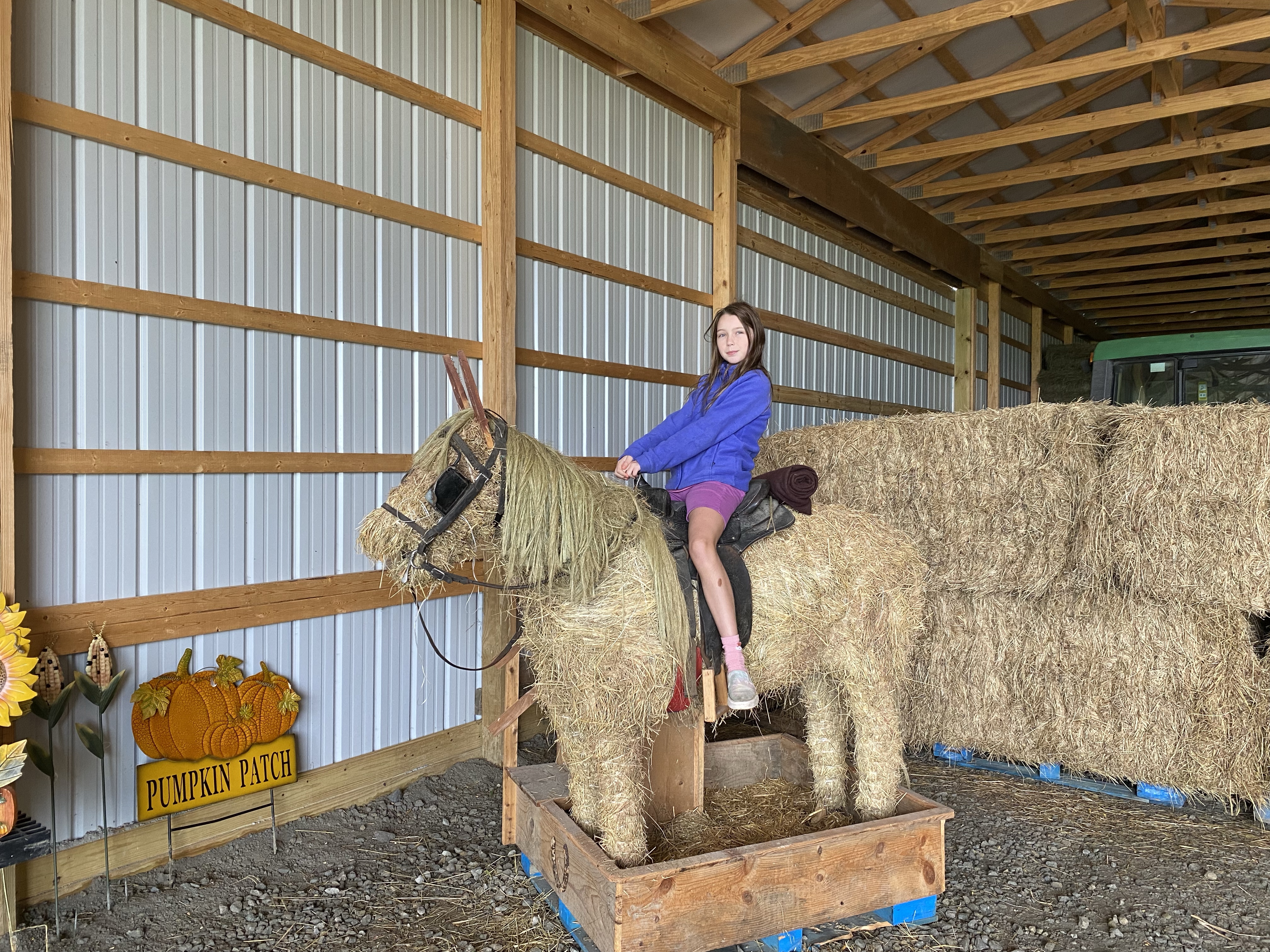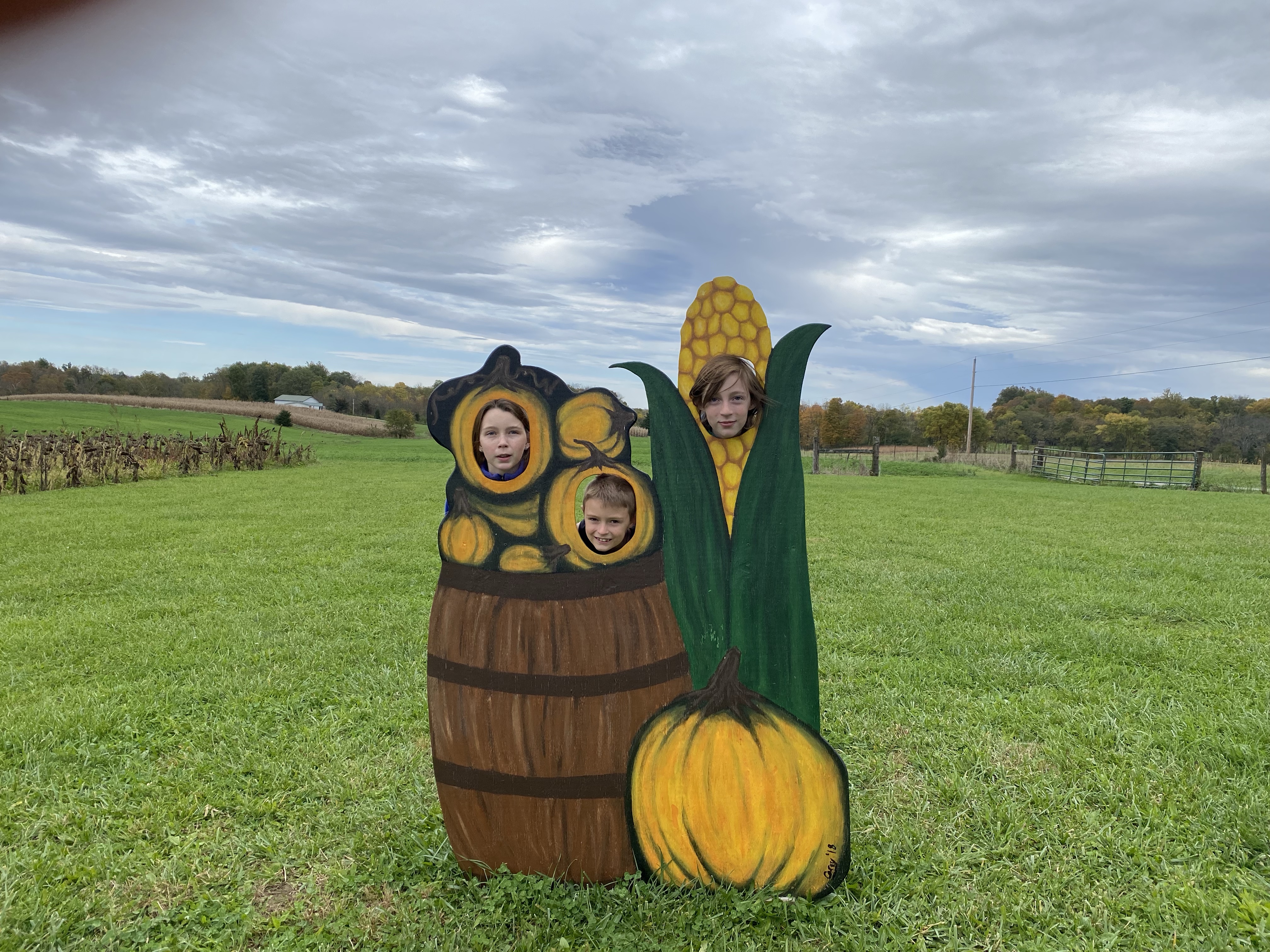 We jumped into the Halloween adventures with gusto today. Rain was in the forecast so we took an extended break during school and headed over to the local pumpkin patch. The kids picked out some good carving pumpkins and a couple small ones and had a great time checking out the other activities the farm had created. It was Thursday early afternoon so we had the place to ourselves.