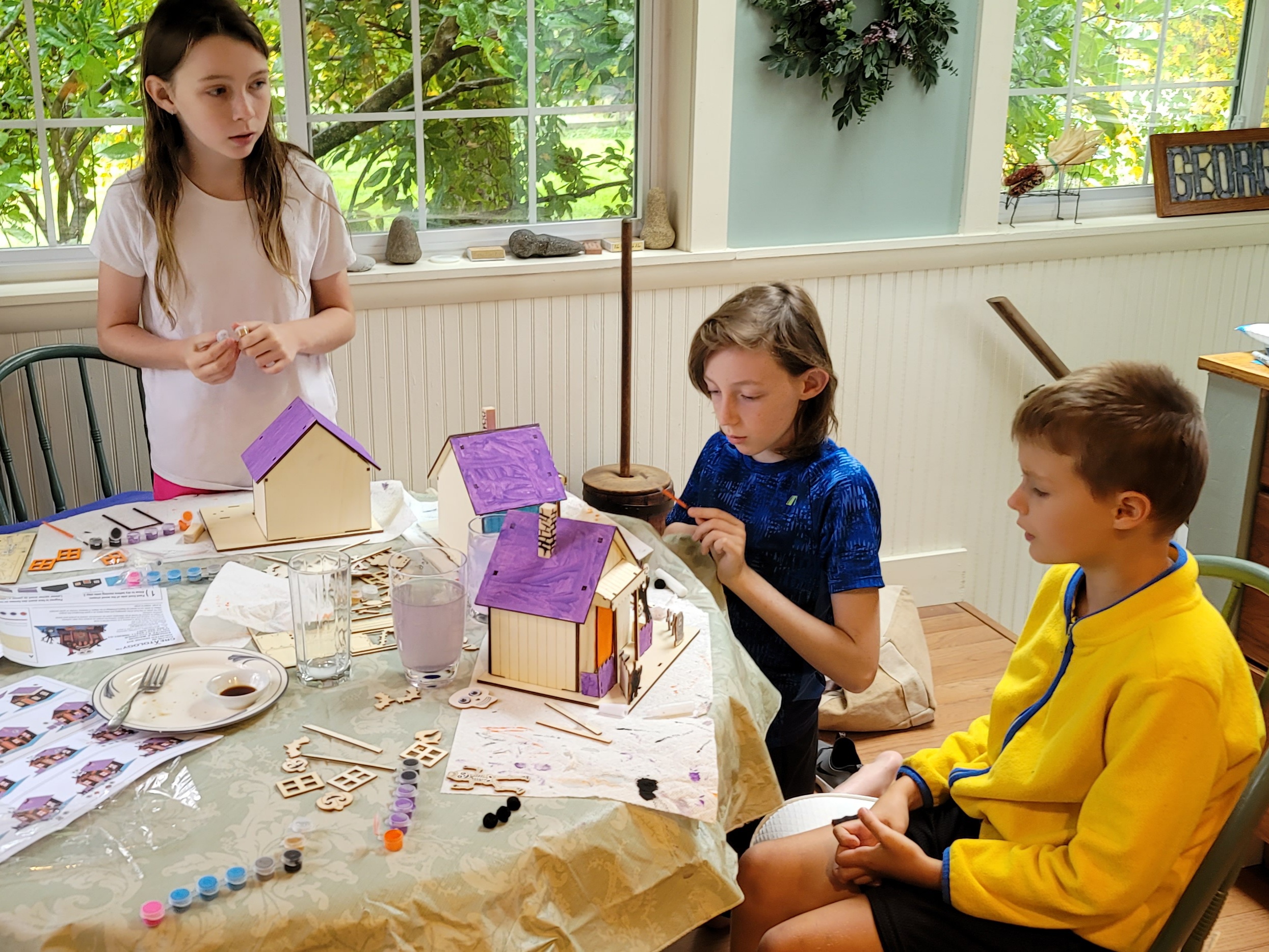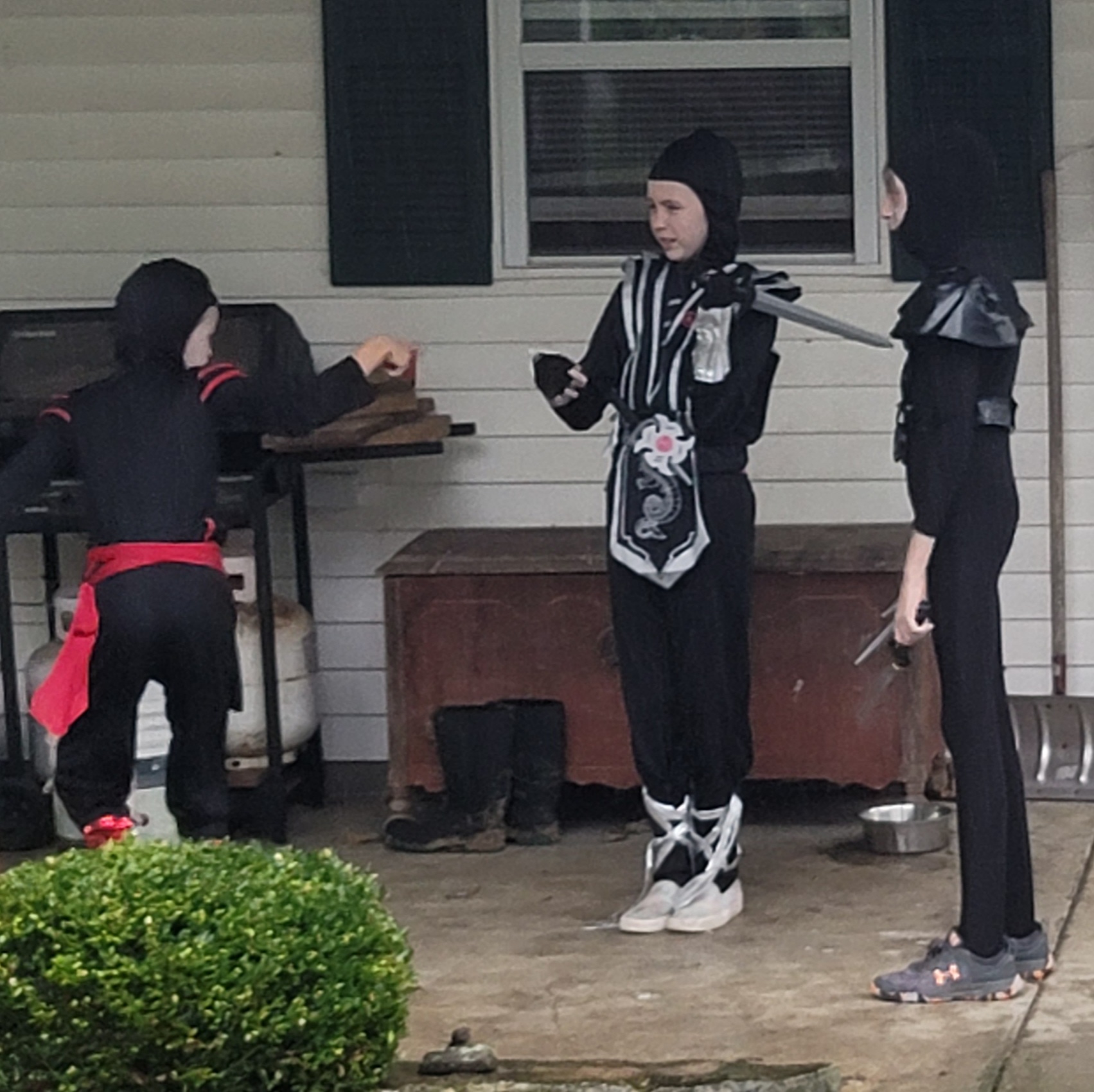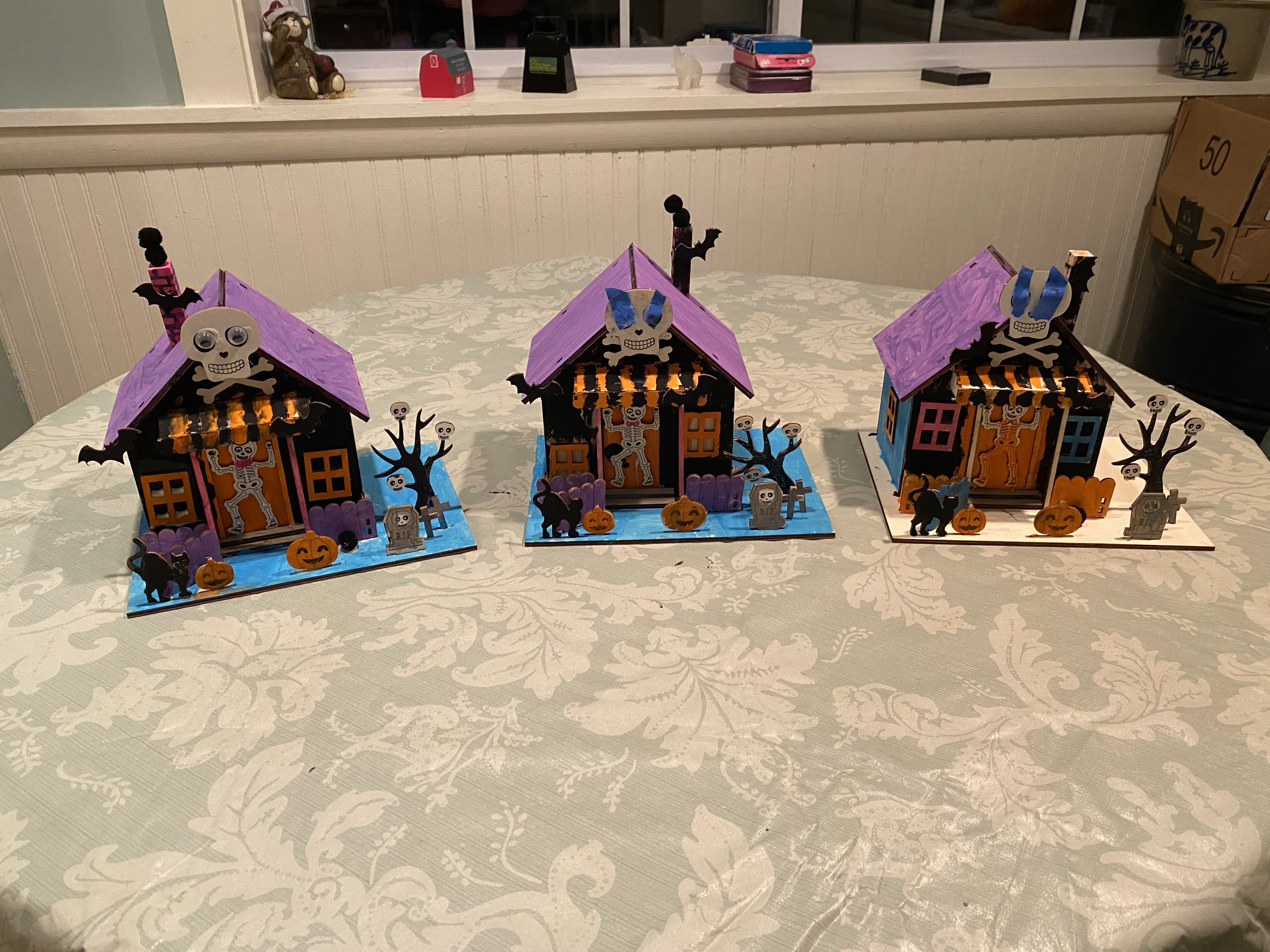 Today’s Halloween activity was some arts and craft kits supplied by Tiffany’s sister Tara. The kids loved making these houses and spent a lot of the day building and painting them. Suaram’s costume arrived so they also spent time playing Ninjas despite the cool temperatures and rain.