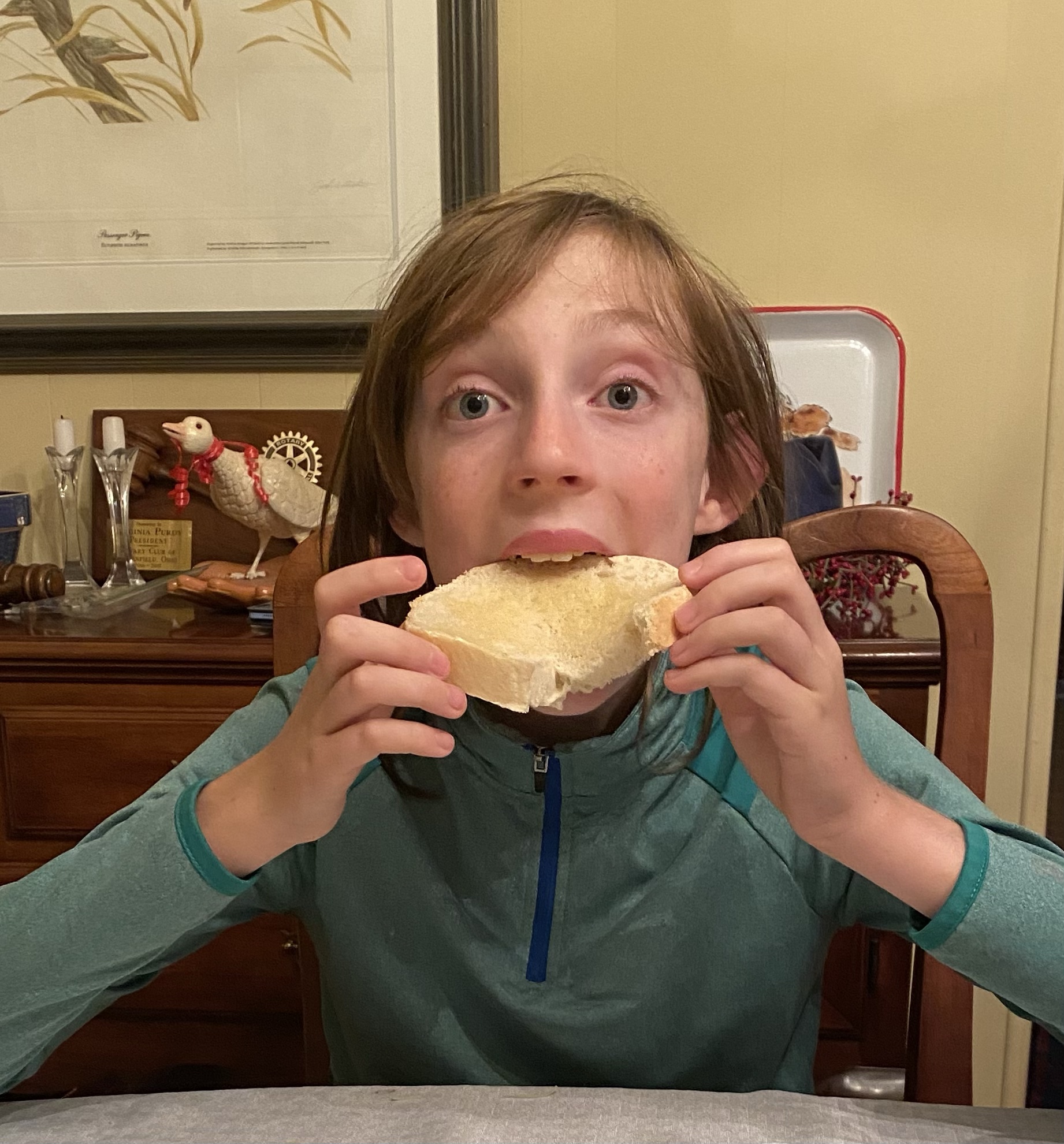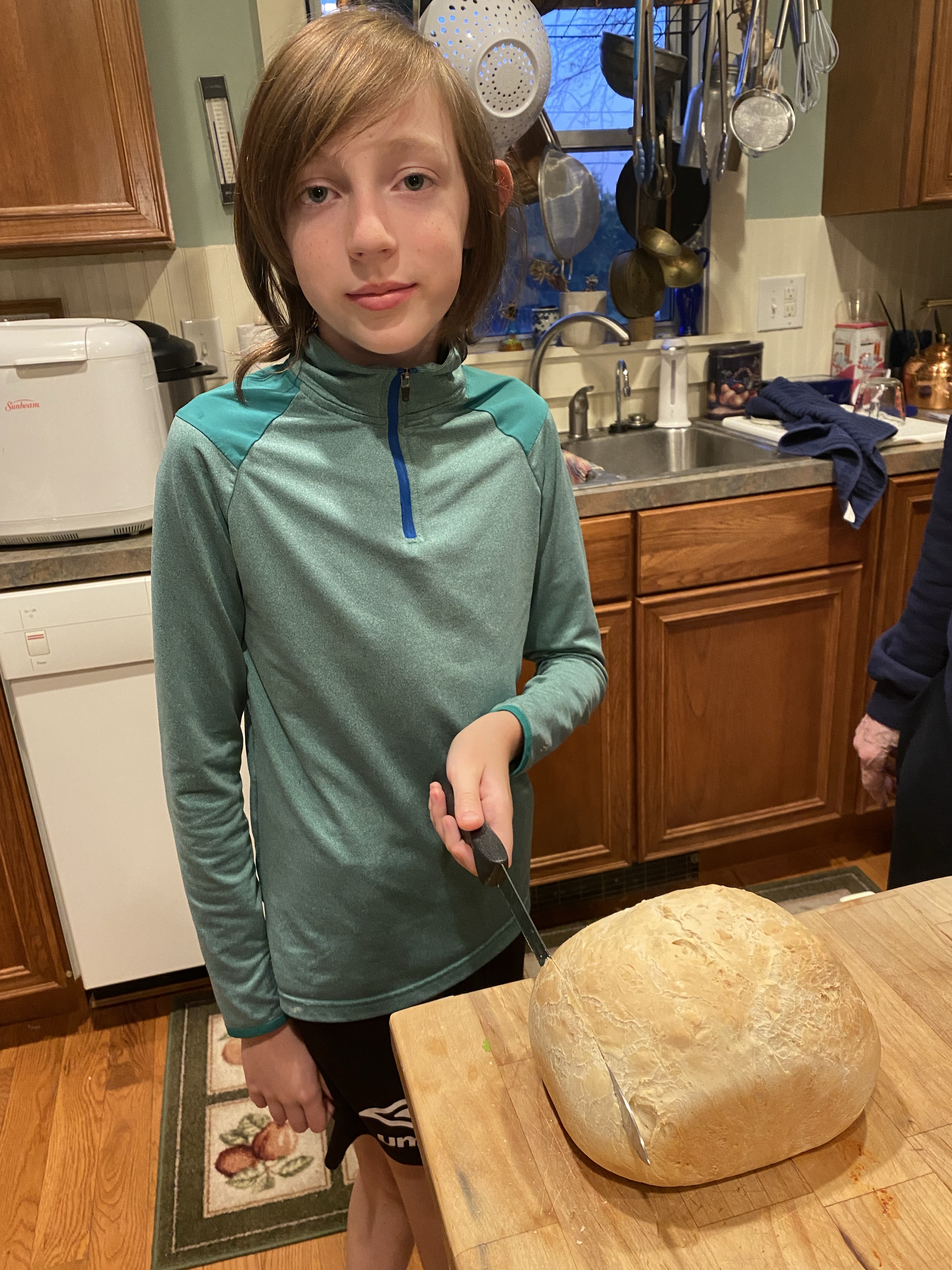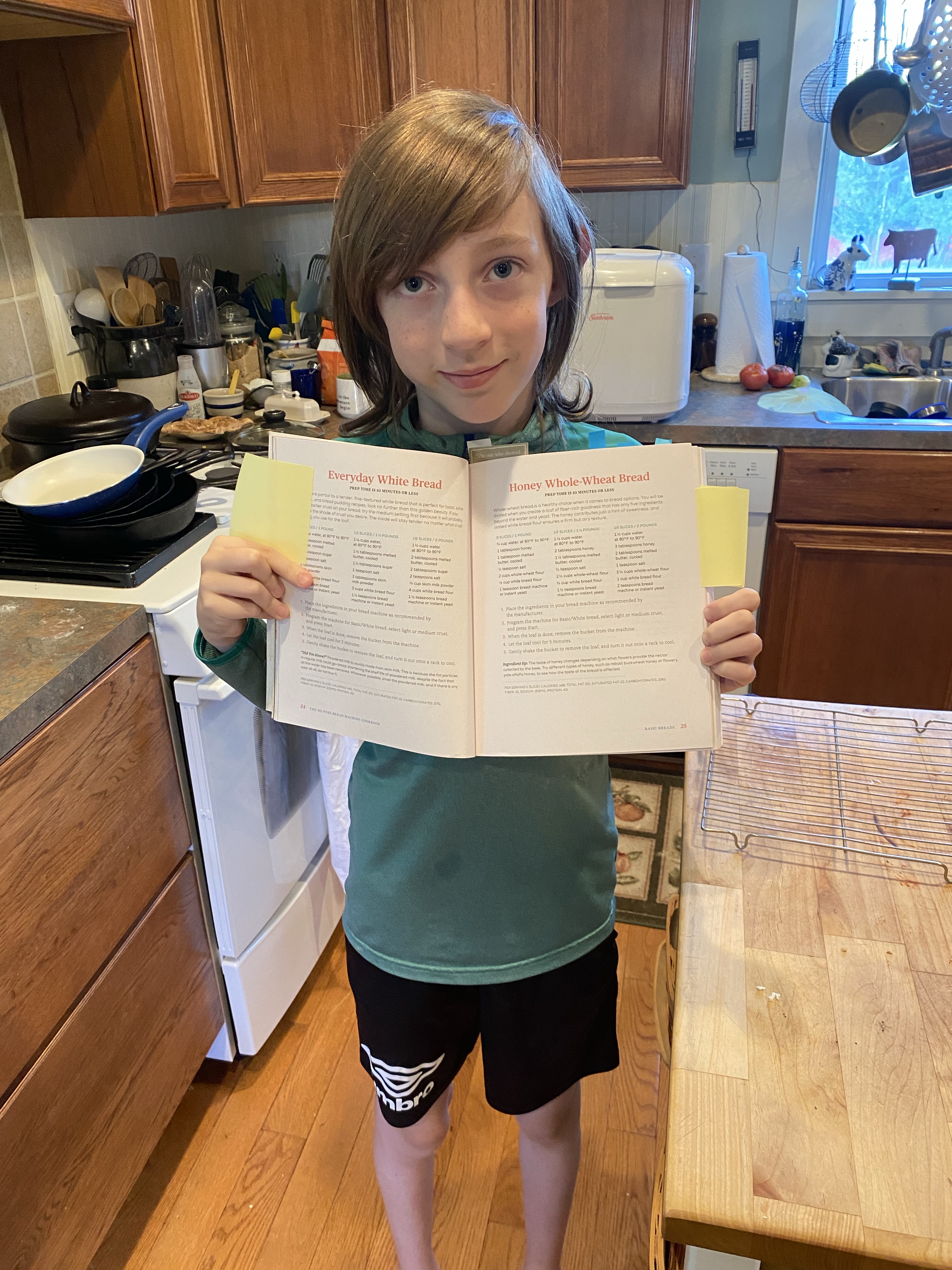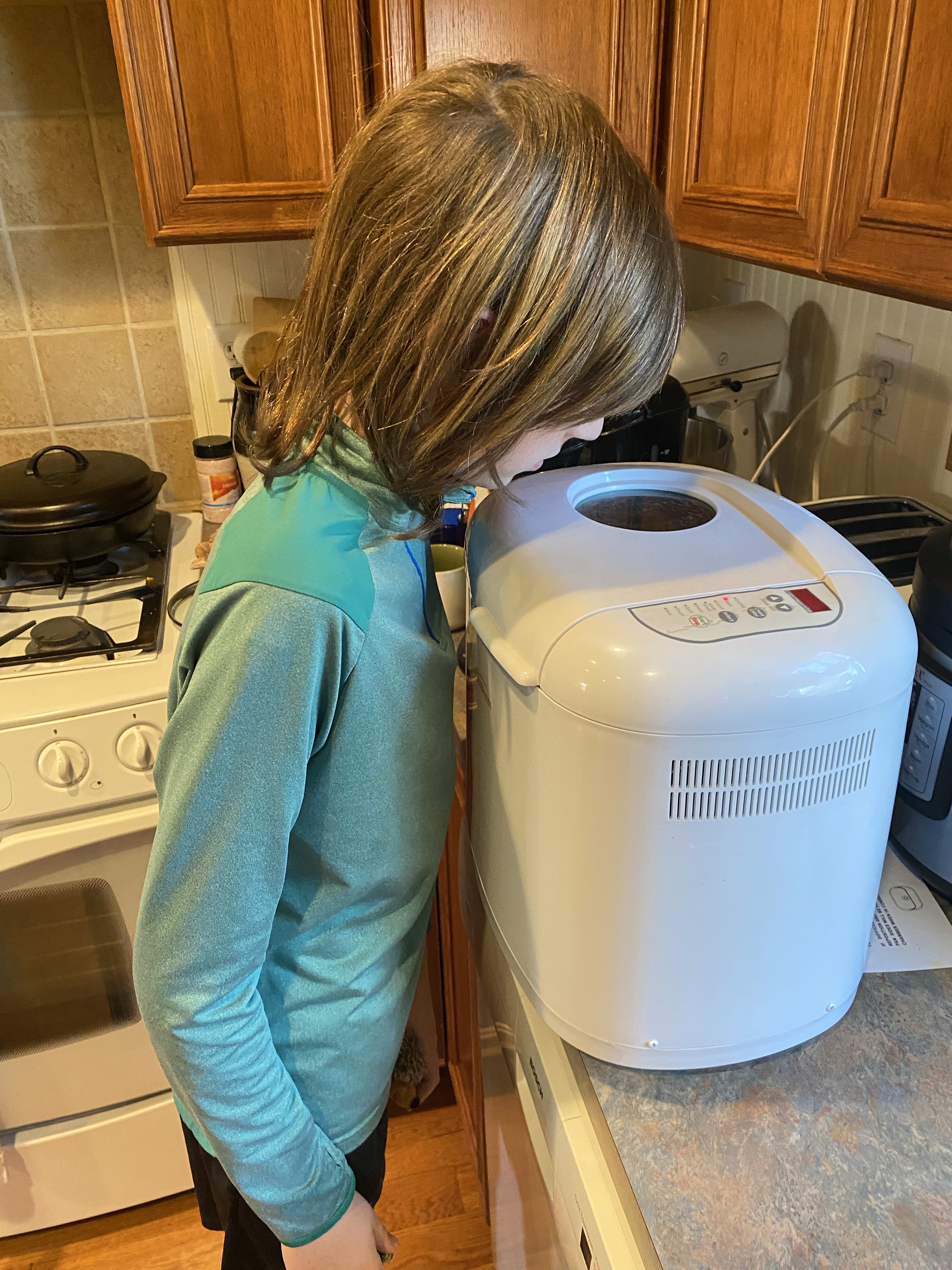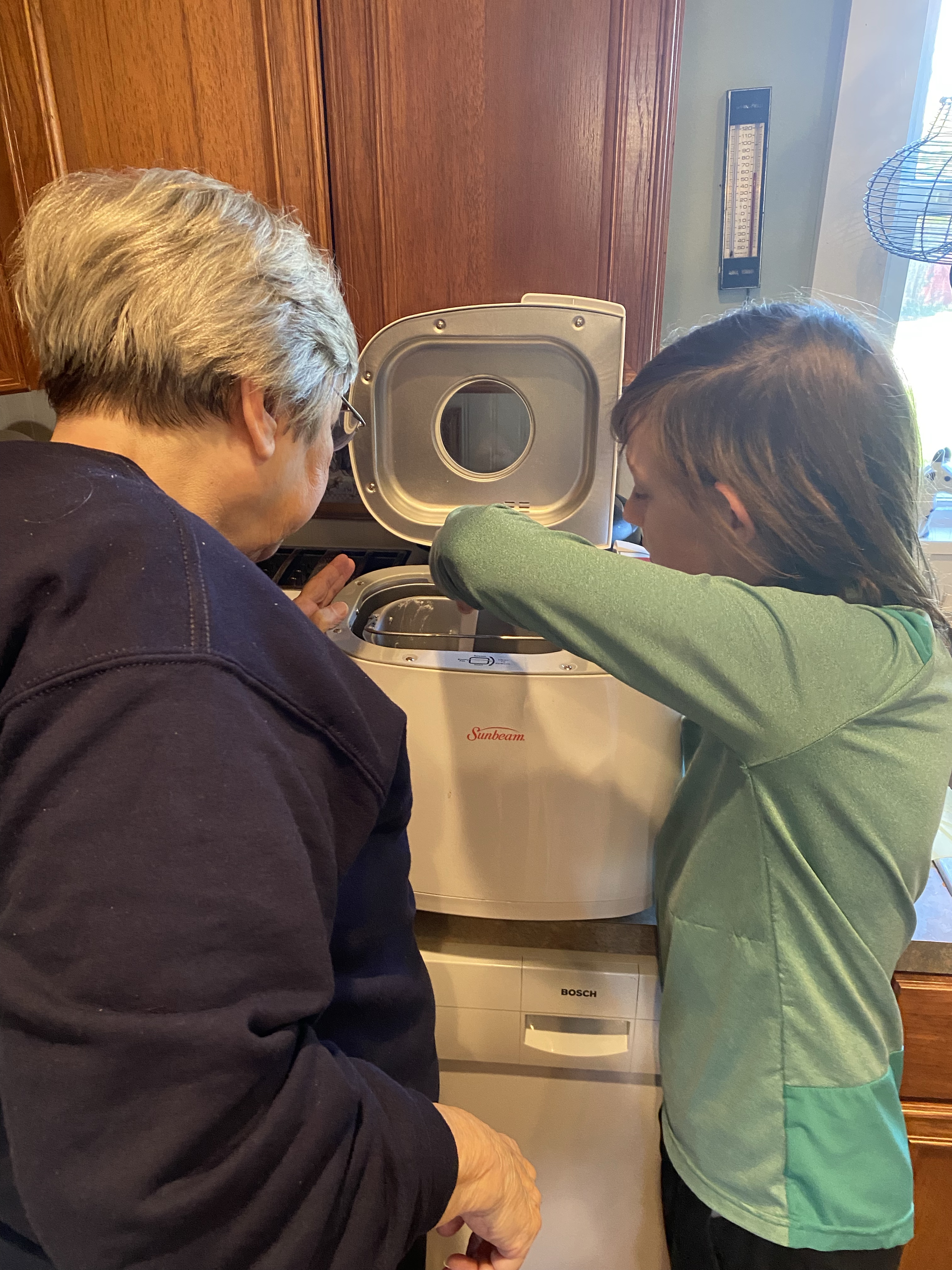 Together they read the recipe, measured, poured and programmed the settings on the machine. Once it was mixing they retired to the living room to relax and talk about how yeast works. A few hours later we all got to try their handiwork. It was really good and he seemed pretty proud of his accomplishment.