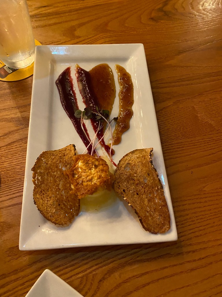 It’s a cool cafe in an interesting part of town. It’s filled with tasteful dog decor and the motto is ‘Sit. Stay. Savor.’ The menu included a number of interesting items so it was difficult choosing between them. This is an almond- crusted brie appetizer which both looked and tasted amazing.