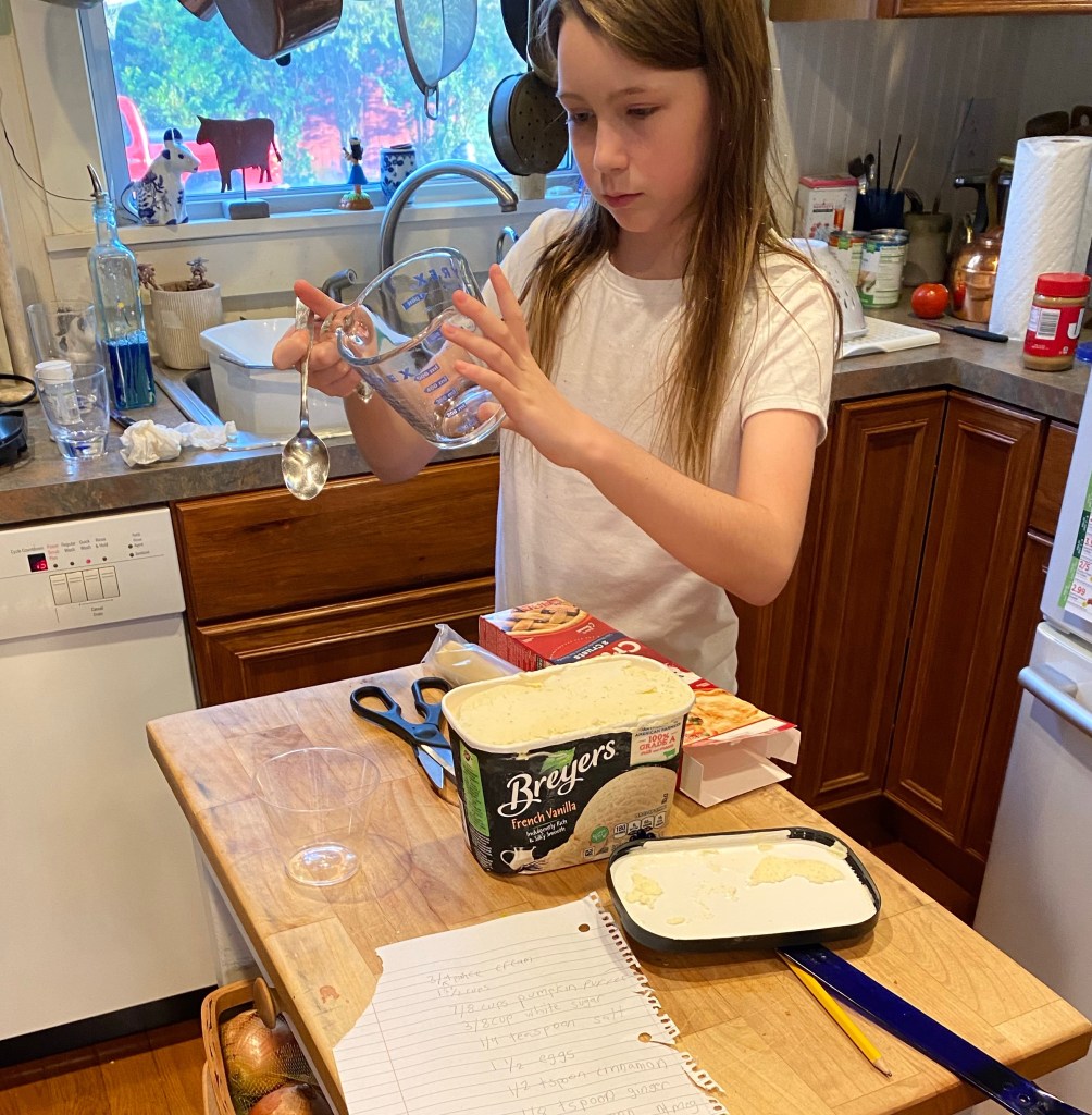 Suaram made her famous pumpkin pie for the second year in a row. This recipe uses melted ice cream instead of condensed milk so licking the spoon is extra good for the chef.
