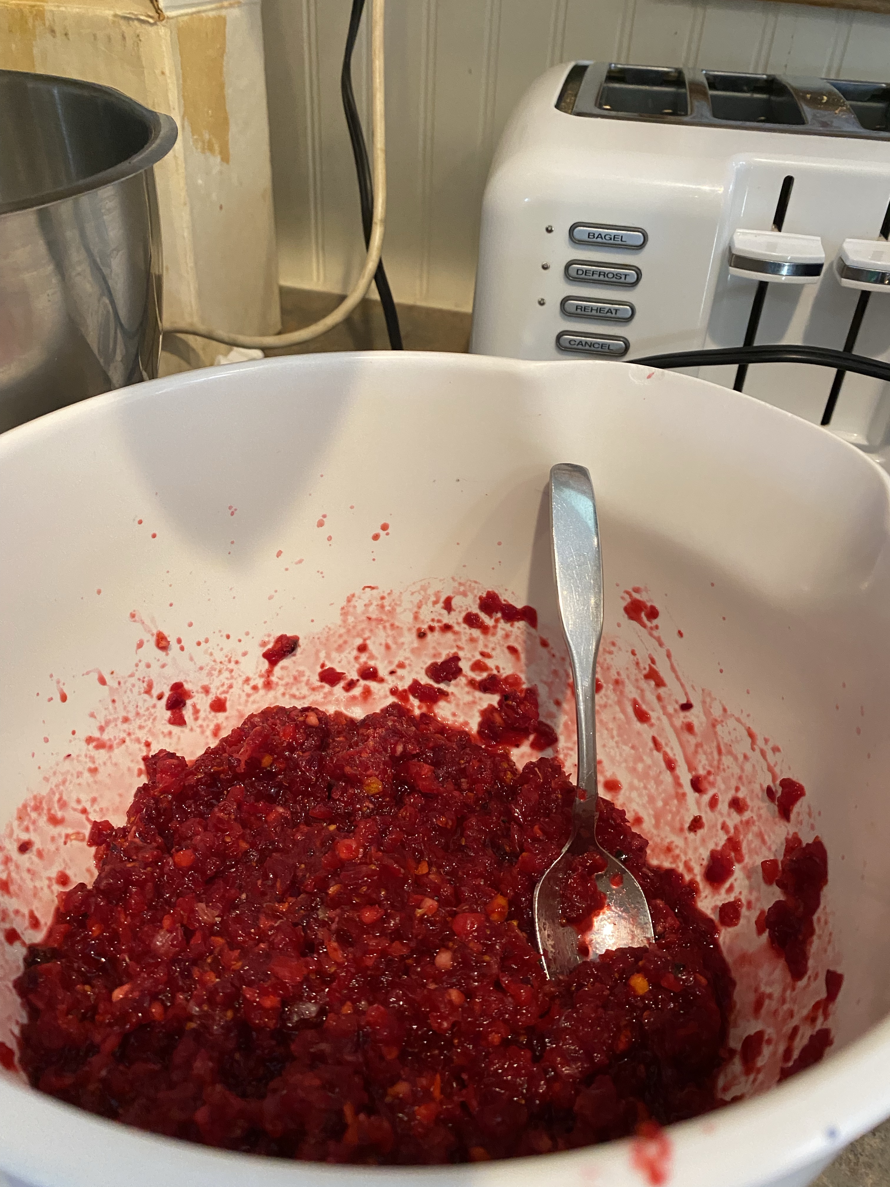 The first activity was grinding cranberries, apples and oranges for Mamoh’s cranberry relish. It’s always fun for the kids to use kitchen machinery and the Kitchen Aid grinder attachment was no exception.