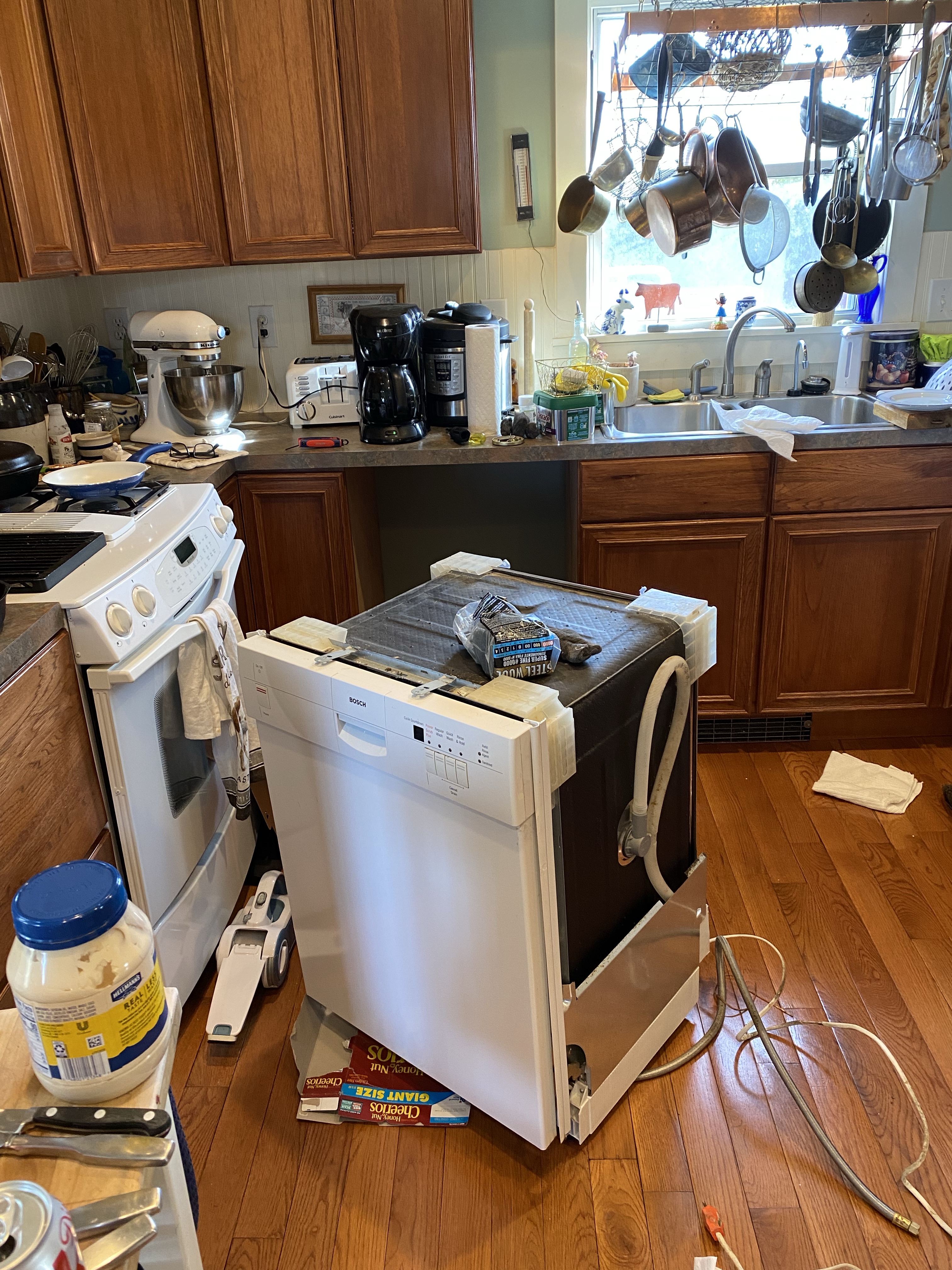 As a break from the food preparation, Brian and Tiffany decided to disassemble Mamoh’s dishwasher. It’s been draining a little slowly and a clogged hose was suspected. So we took it apart to clean the hose. Usually these home repair projects are Brian’s gig, but his no bending/twisting/lifting after back surgery meant he had to troubleshoot and advise while apprentice Tiffany turned the screwdriver. He did get a trip to Lowe’s which he thought was a treat.
