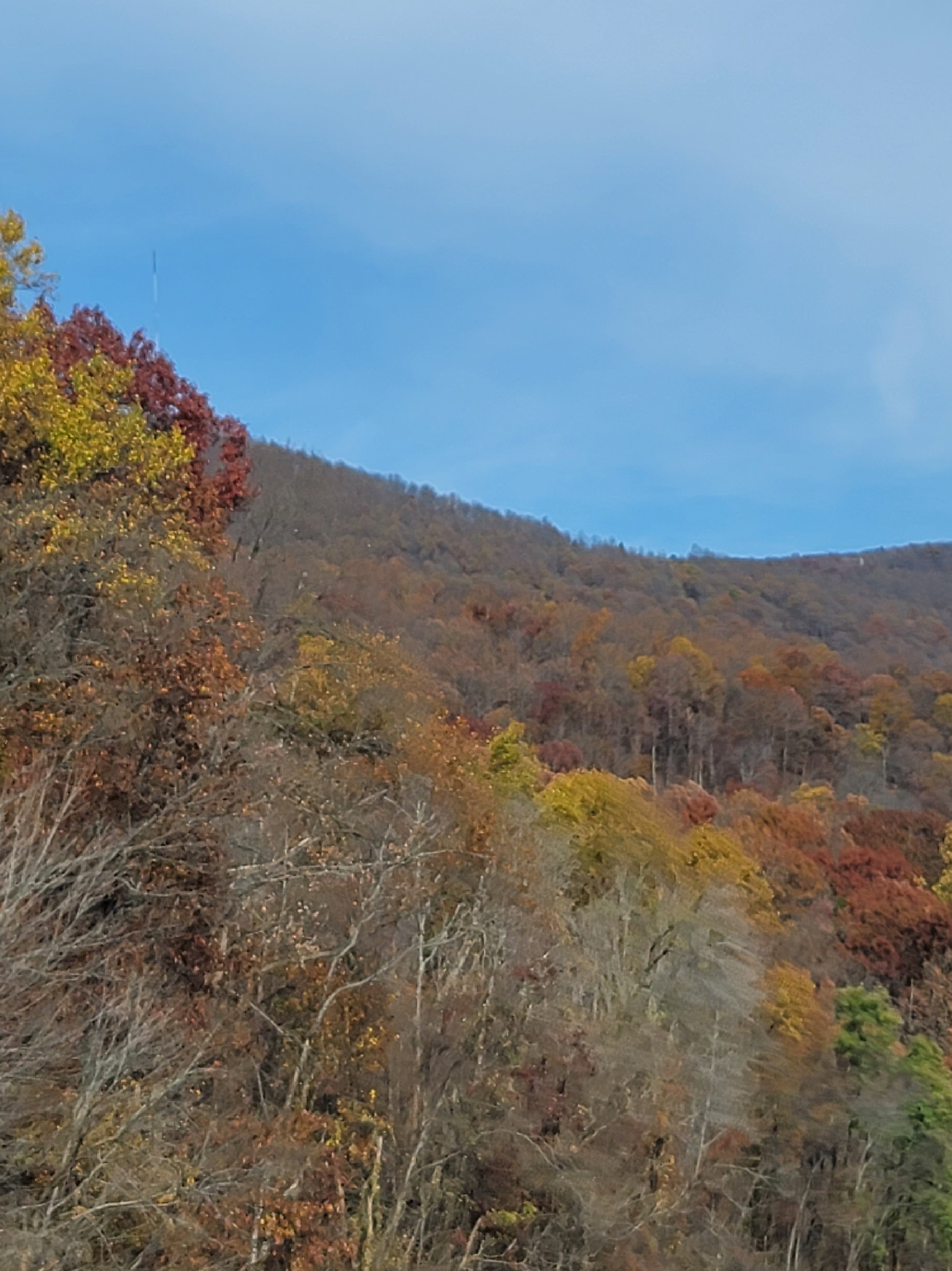 We had a few reasons for doing a southern road trip this week. One was to get to warmer weather. Our drive through the Tennessee, North Carolina and South Carolina mountains today was sunny and 60°s and still showing some autumn color.