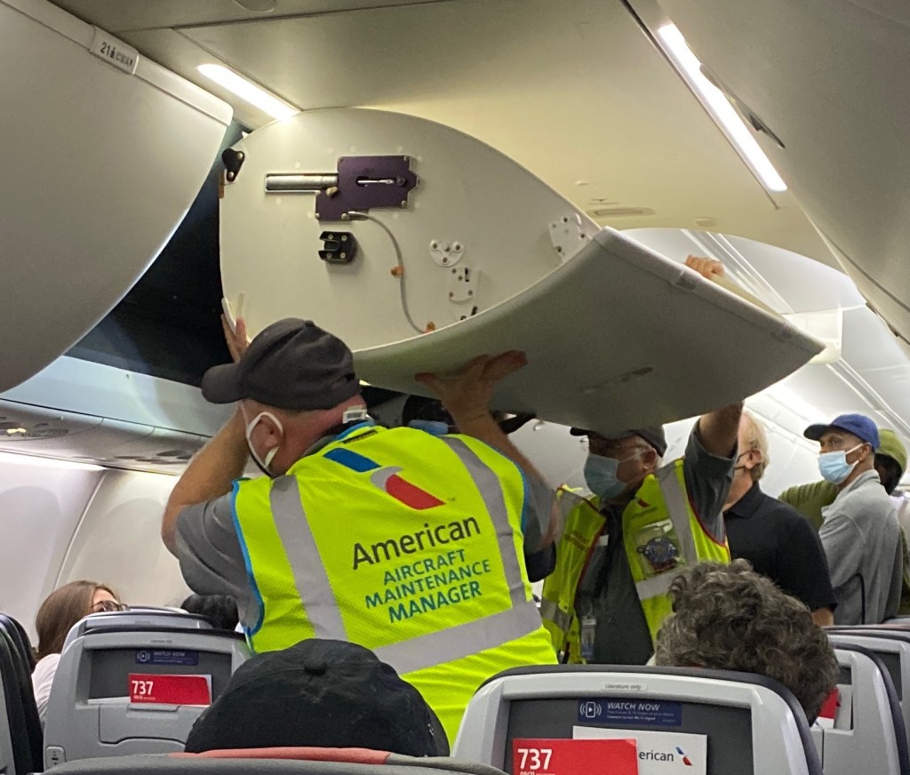 - 9: Spend an hour watching several American Airlines employees attempt and fail to latch an overhead bin.