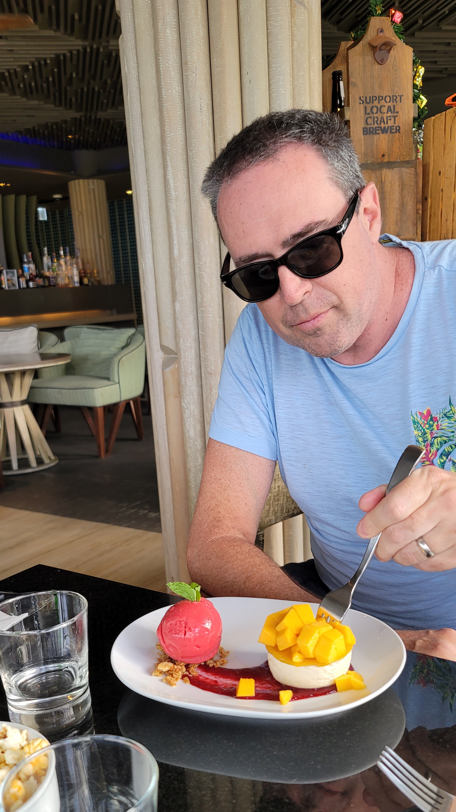 Brian had a mango cheesecake with a dollop of raspberry sorbet. Tiffany had a walnut tart with a flaky pastry crust. Both were surprisingly delicious and vexed us that we had not tried other dessert options before our last day (sigh).