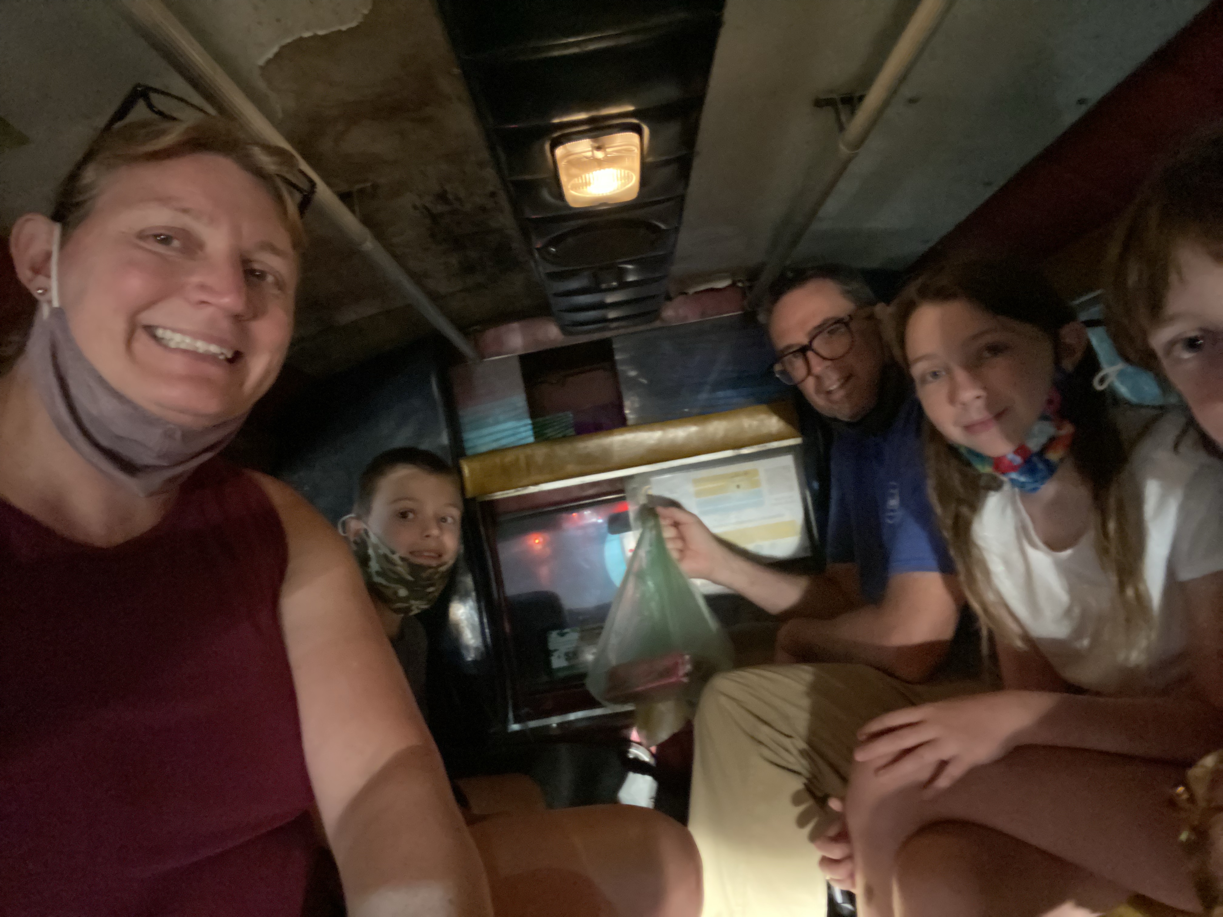 The kids were a bit scandalized that the back door was open and there were no seat belts but they quickly adjusted and spent the ride looking out the window at the busy neighborhood passing by.