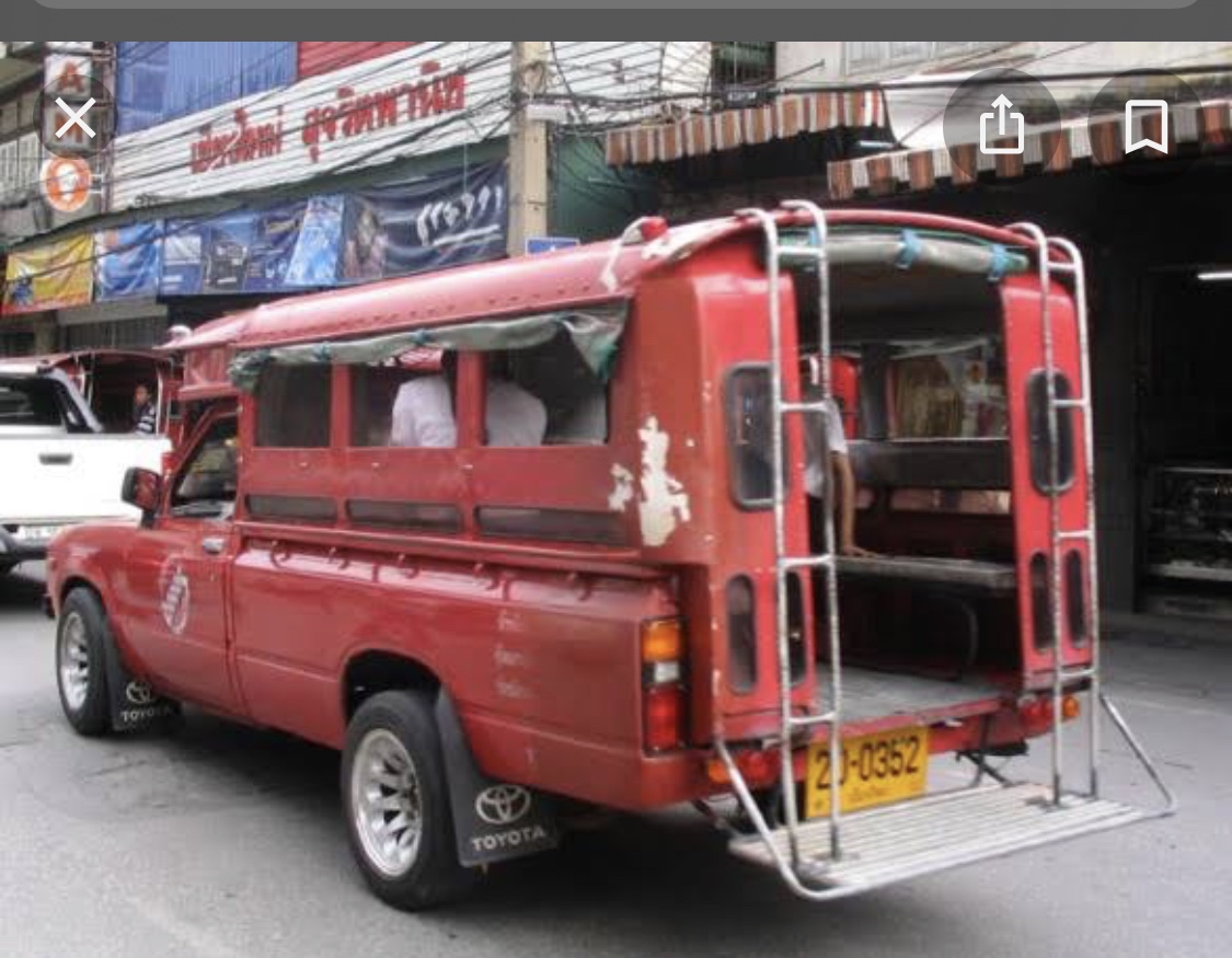 Rather than walk back in the dark we had our first adventure in a songthaew which translates as ‘two rows’. It’s a red truck with two rows of seats in the back that operates as a shared taxi. They are ubiquitous in Chiang Mai and found all over Thailand.