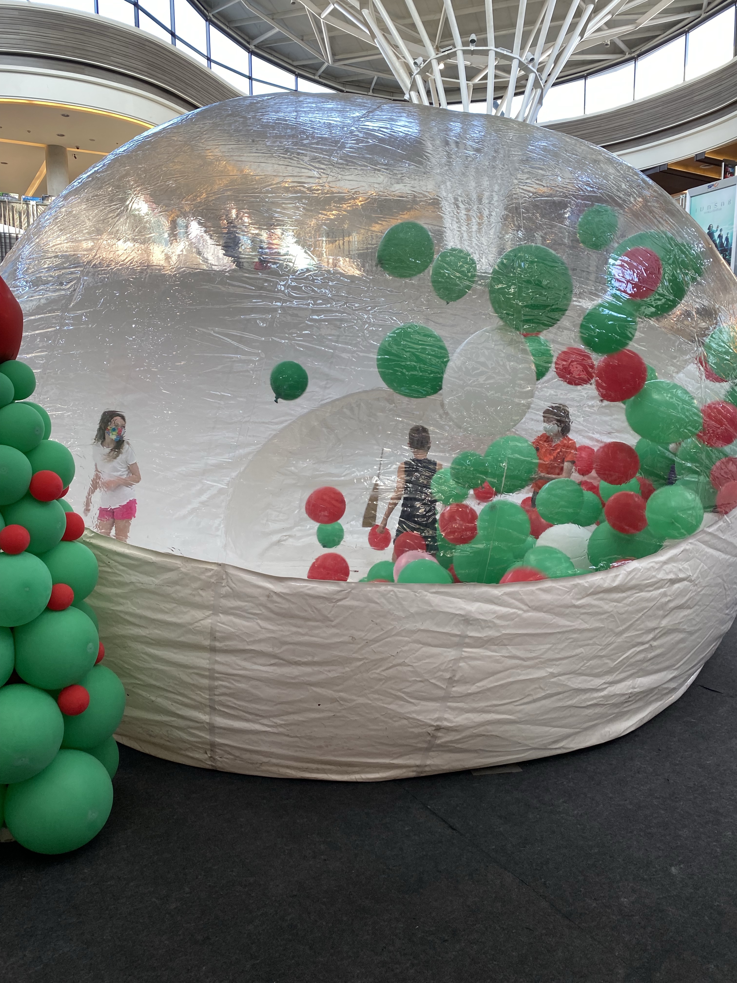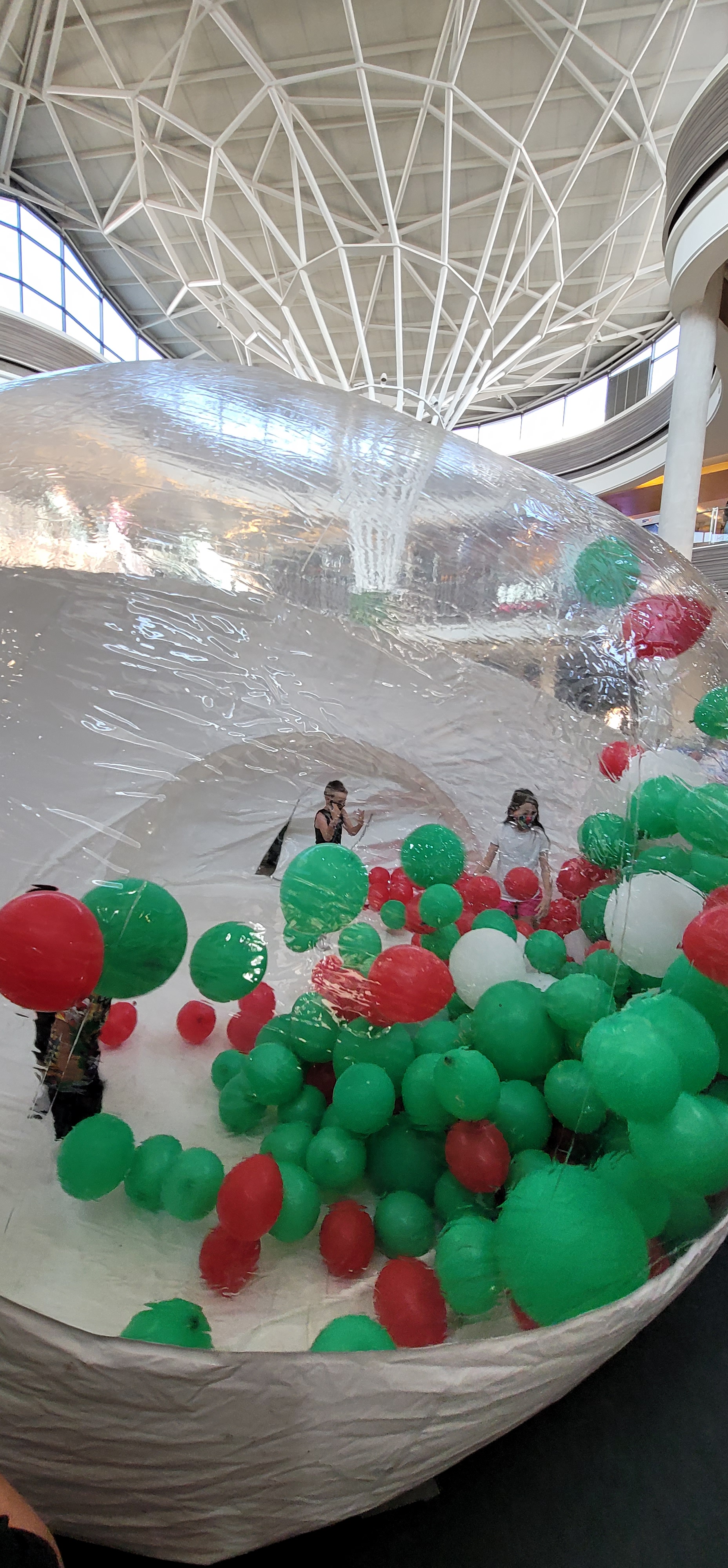 They all got new sets to augment what Santa had brought. Then they headed straight for a giant Christmas ornament/snow globe for a little fun.