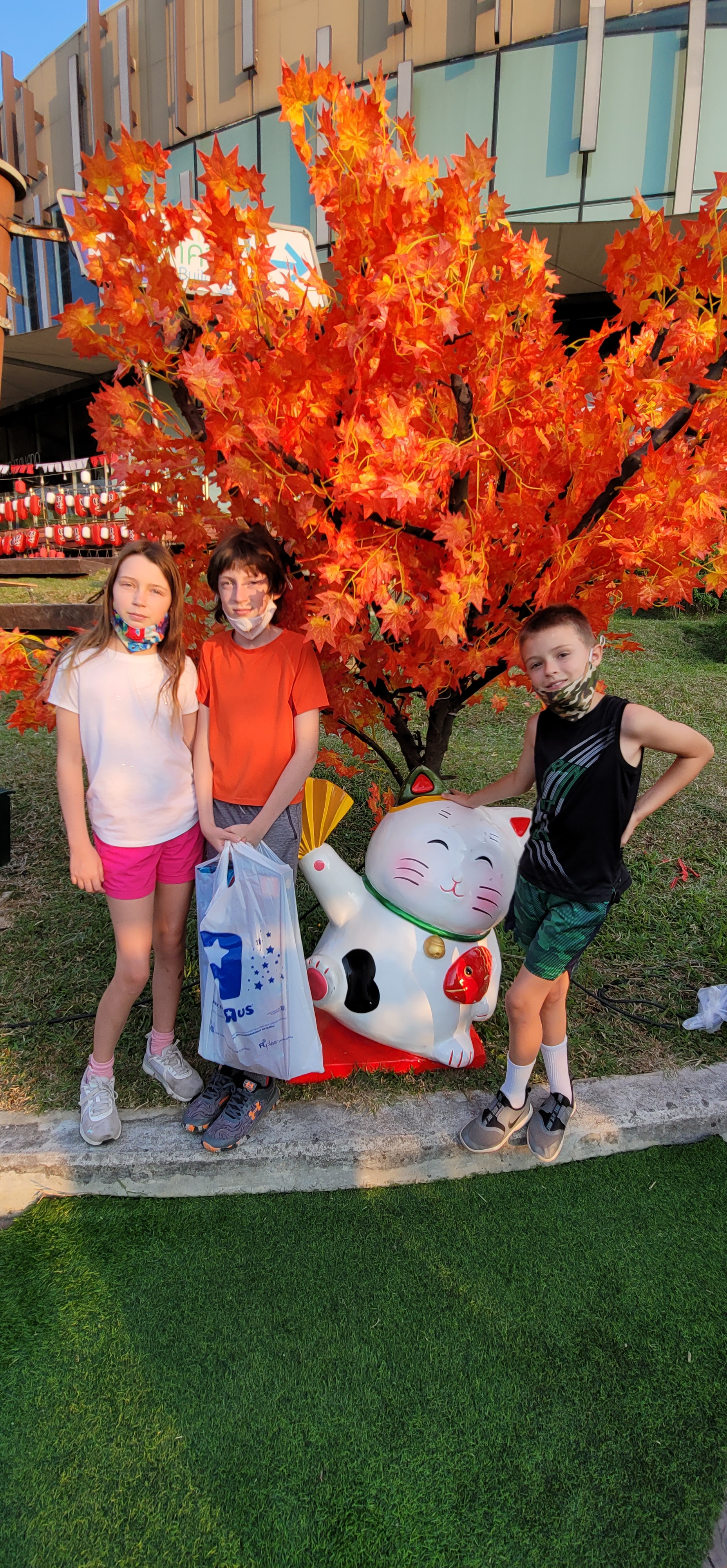 Today had a relaxing start and then a flurry of activity. The kids got some cash for Christmas yesterday and were itching to spend it. We’d heard a rumor there was a ToysRUs on the other side of town and this week at that mall is a joint Japanese/Thai festival (which is why the parents were willing to go). In search of a ‘festiv-mall’ adventure we headed over there this afternoon.