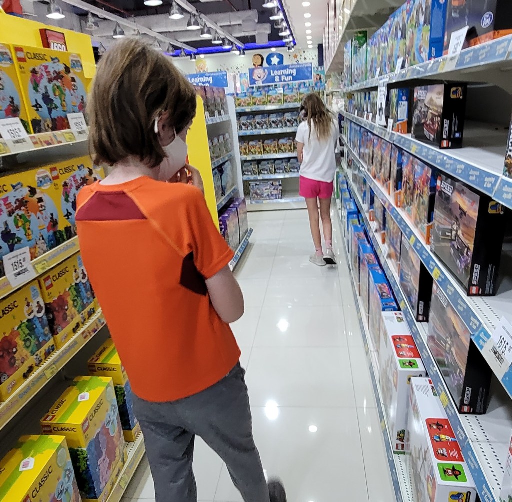 Once we arrived it was pretty much a bee line to the Lego section. They didn’t have any interest in the huge display of knockoffs outside the store despite the much lower prices. (How many trademark infringements can you count there?)