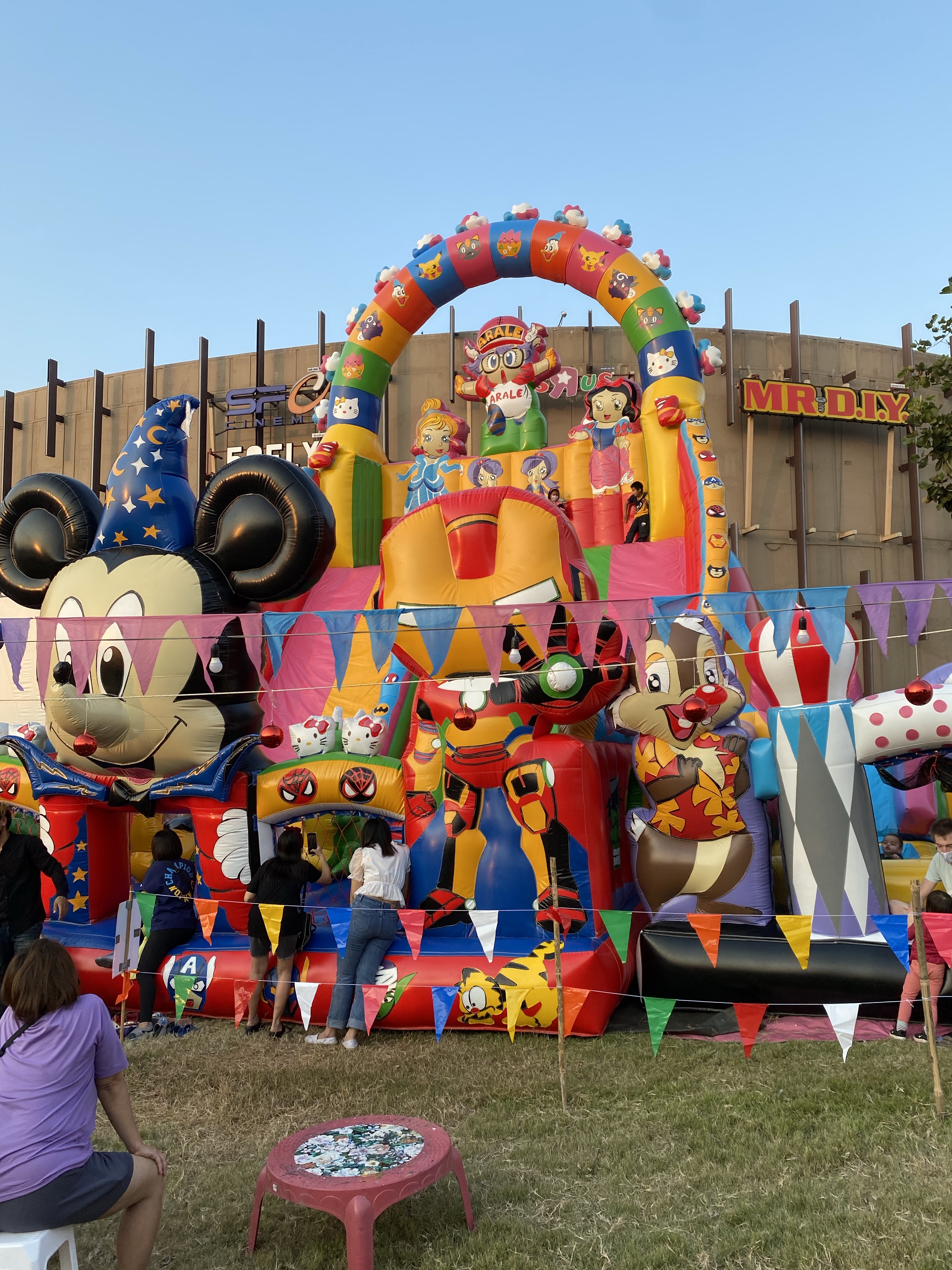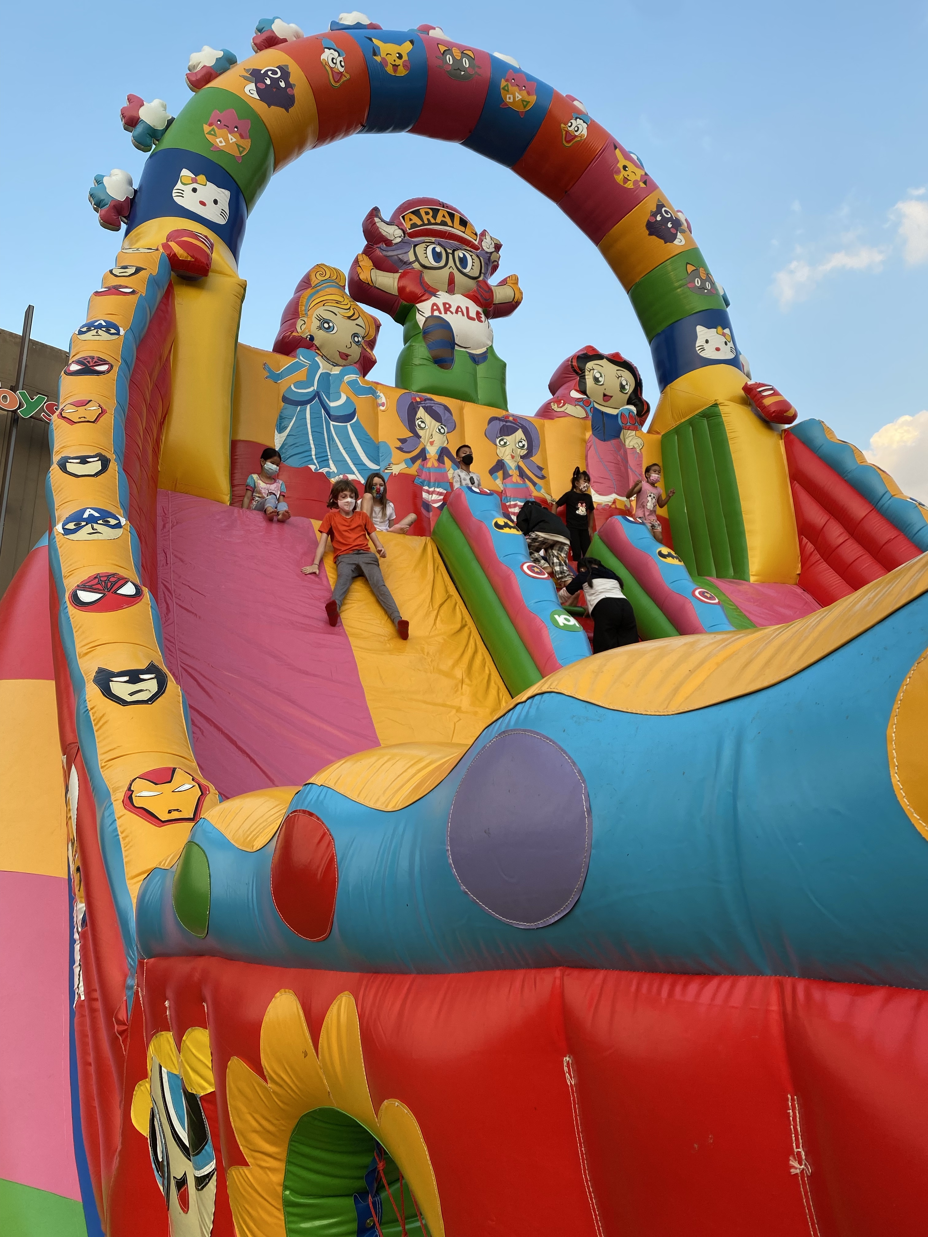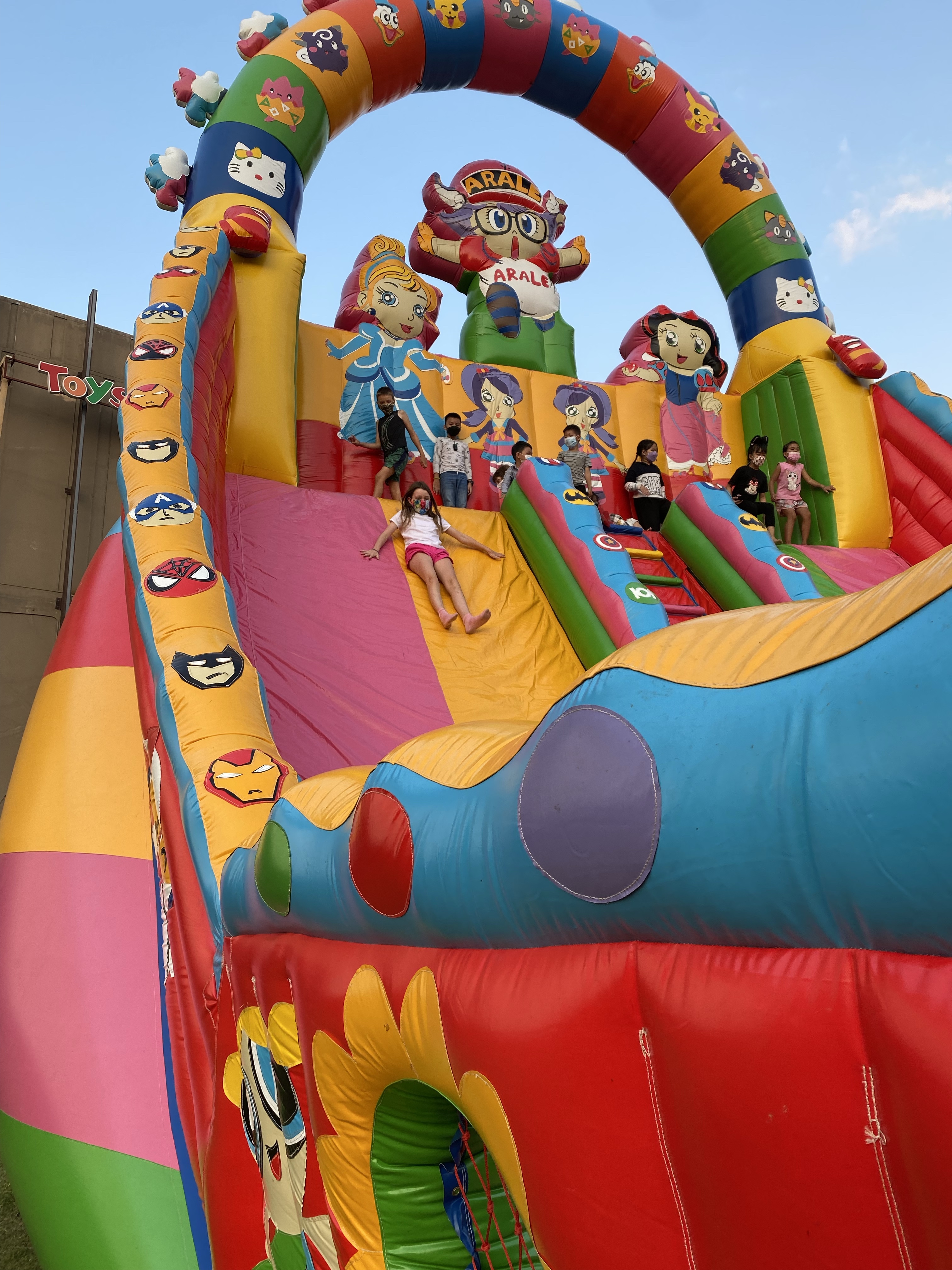 Next was a giant inflatable slide which our kids (all kids?) LOVE. We think one day the kids will feel like they are too old for these things, but today was not that day. They weren’t the only big kids on the slides, but it was close.