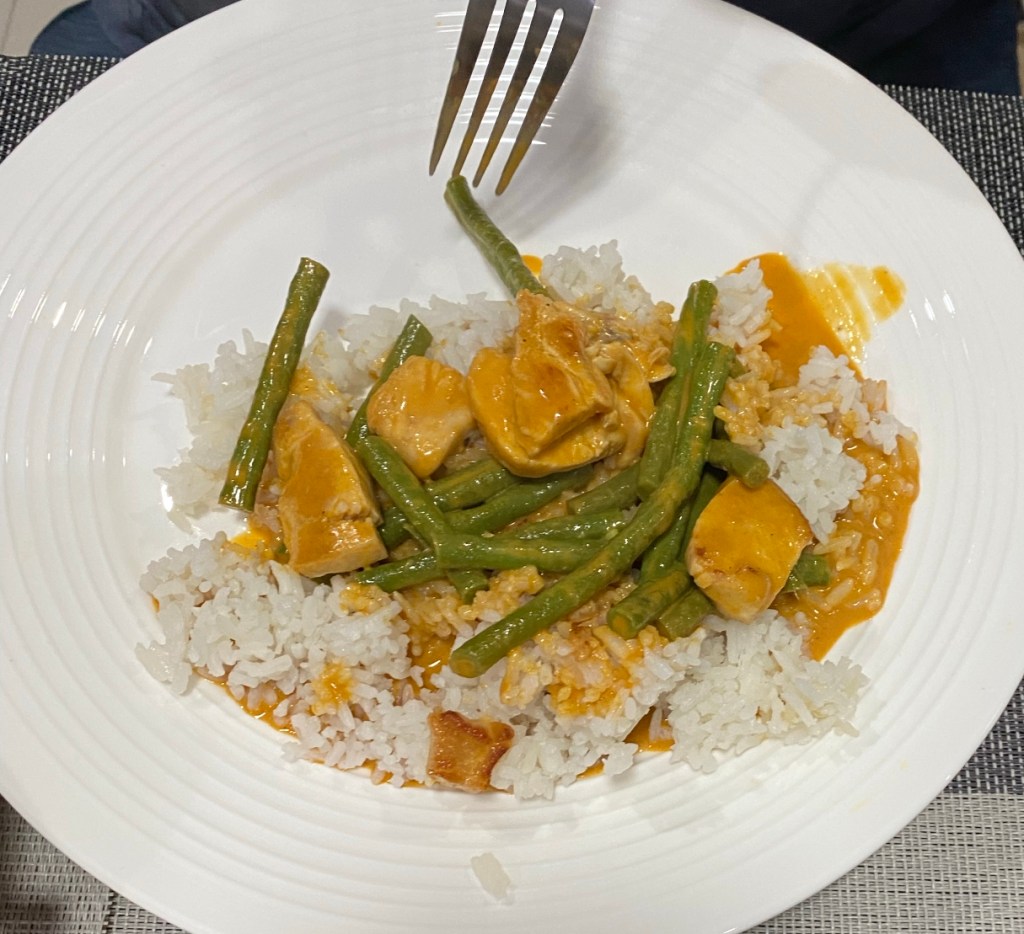 After a return visit by the driver and some apologies we were set to cook dinner. Brian prepared a basic Massaman Curry dish with chicken. It was a little bit on the spicy side but the adults loved it. It was the first time he’d made a curry and was really pleased.