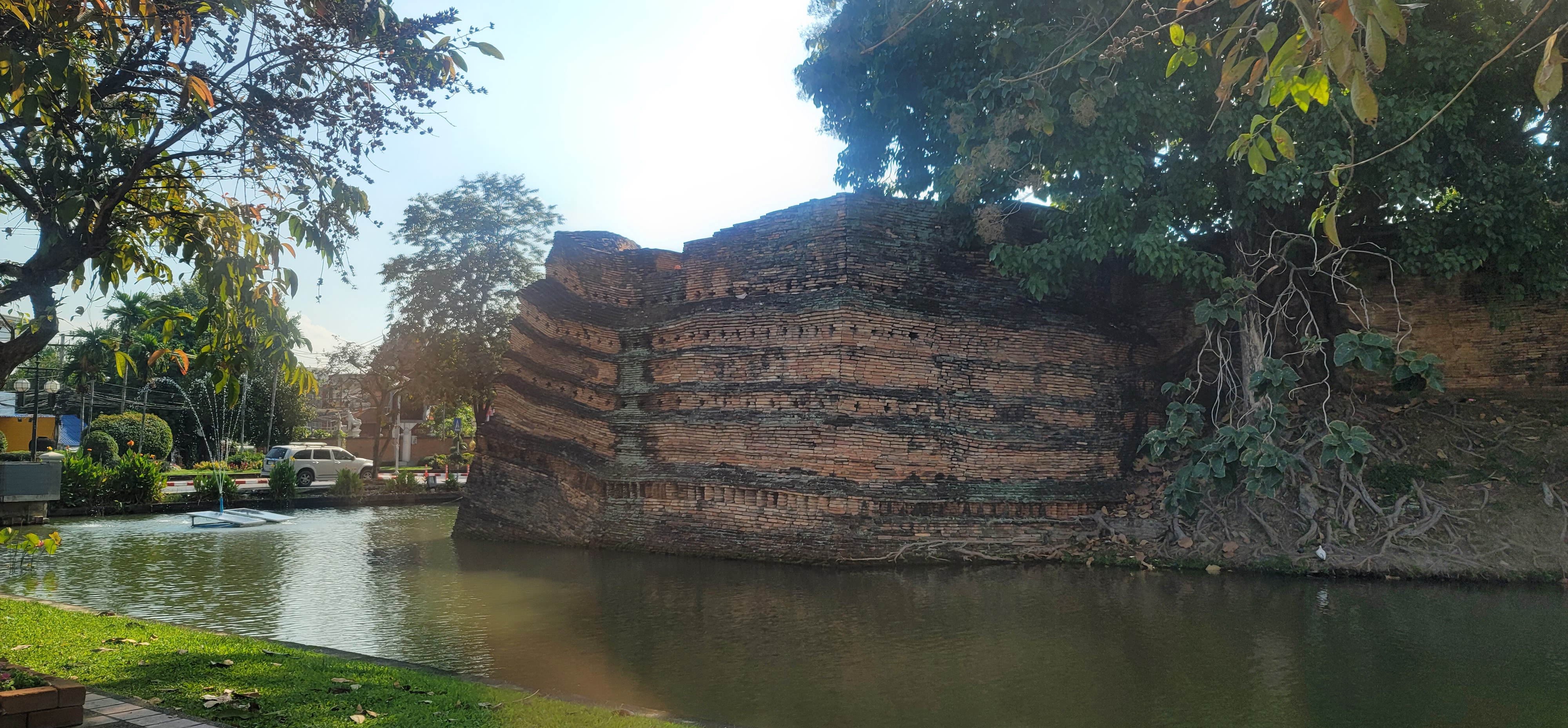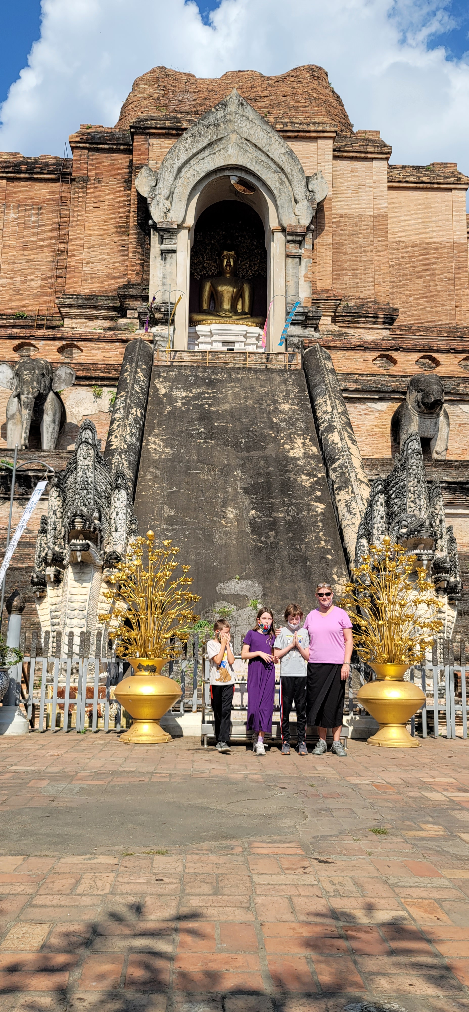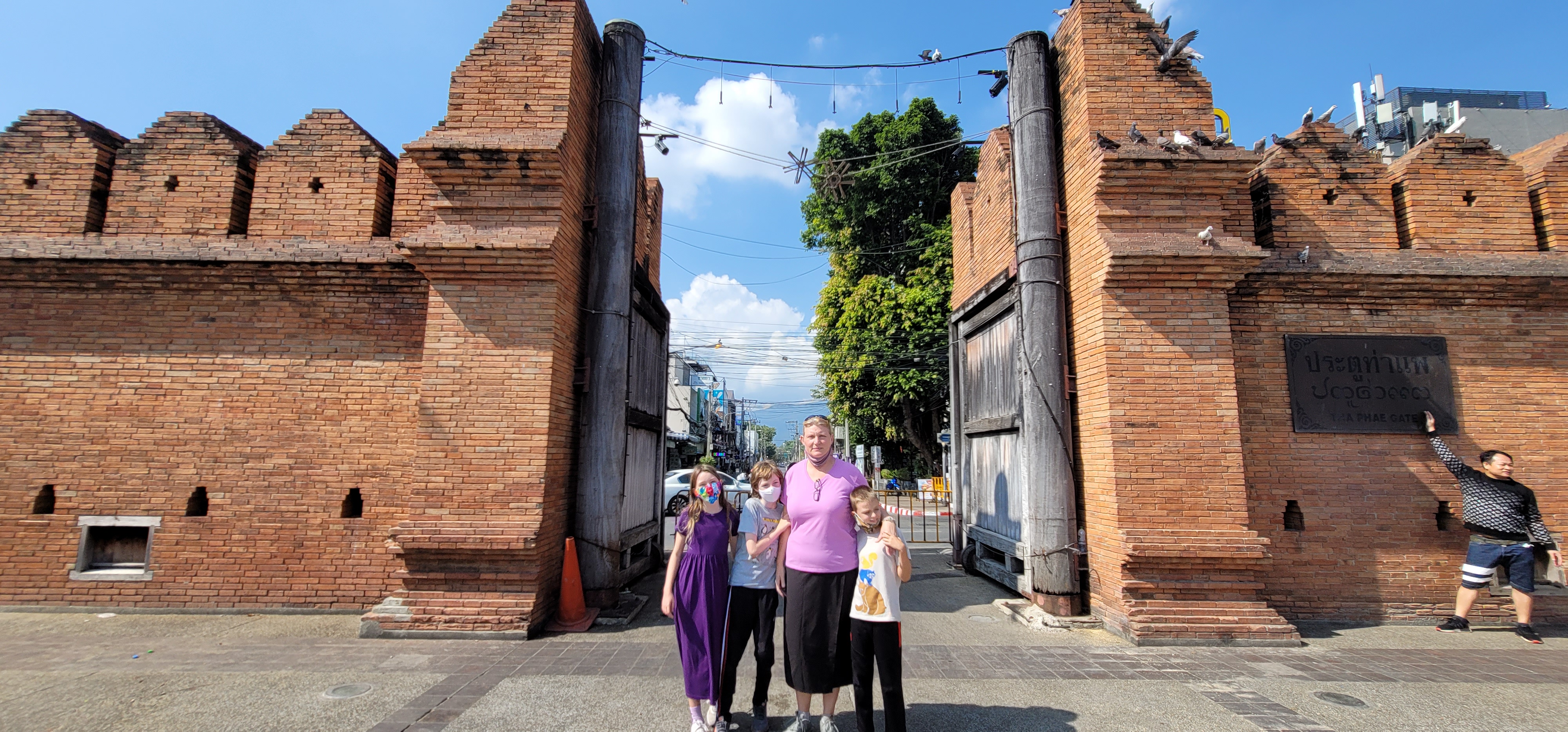 Today we took school on the road (finally!) We all like field trip days better than online curriculum days. After brunch out we headed to the historic and cultural center of Chiang Mai – the Old City. Built in the late 13th century, it is a 2¼ km square area in the center of current Chiang Mai. It is still mostly surrounded by walls and a moat built centuries ago to defend it from nearby enemies. We entered on the eastern side’s Tha Phae Gate which is well preserved.