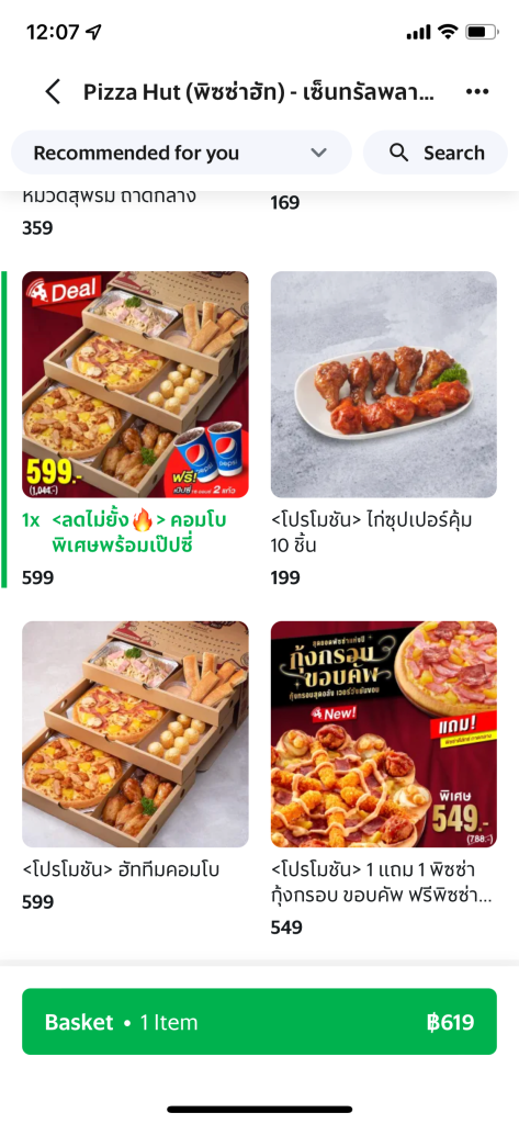 Much to the kids’ disappointment, the Box didn’t come with cinnamon rolls but had spaghetti instead (weird). Along with the 2 Pepsis promised in the TV ad the lunch arrived at our place for halftime and cost around $20 (635 baht) with delivery.