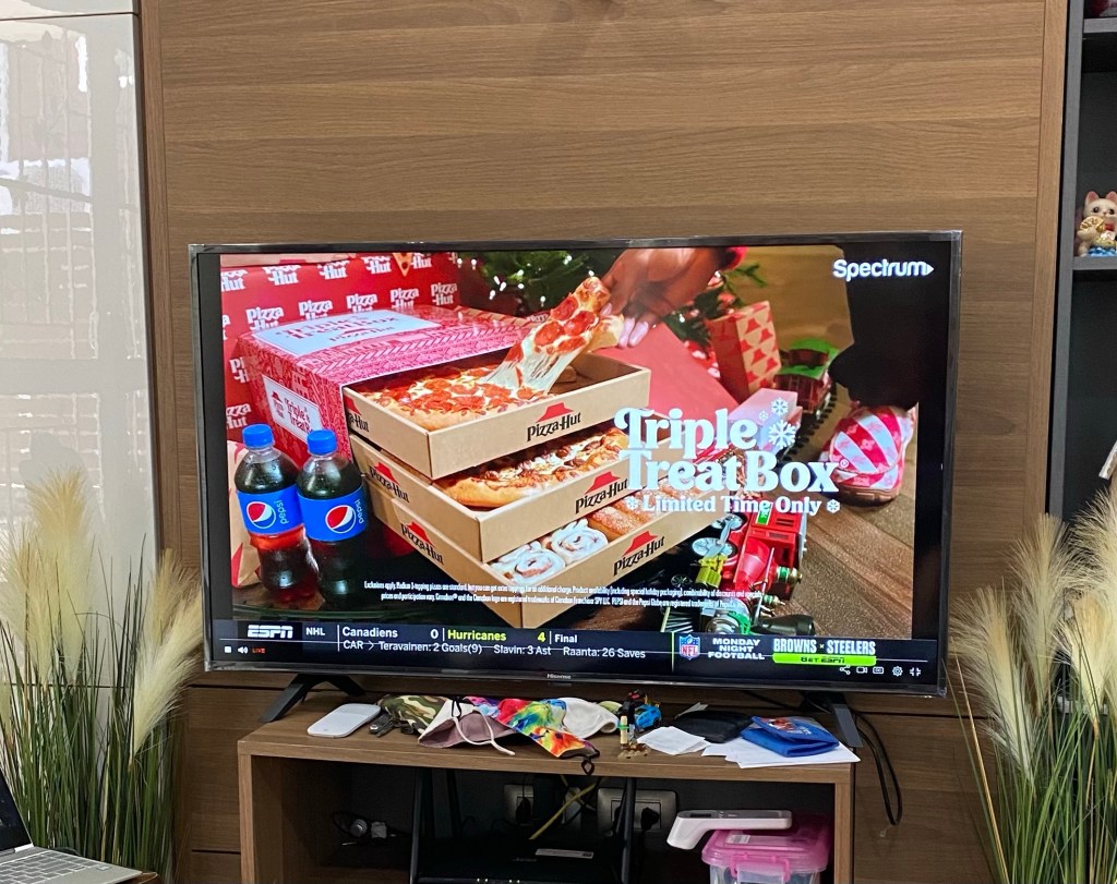 Today we indulged our American traditions and began with some college football. We watched two Big Ten teams win their bowl games (MSU in the Peach Bowl and Wisconsin in the Las Vegas Bowl). We watched the ESPN feed for both and watched them live. This meant that we watched this ad. Perhaps you’ve seen it.