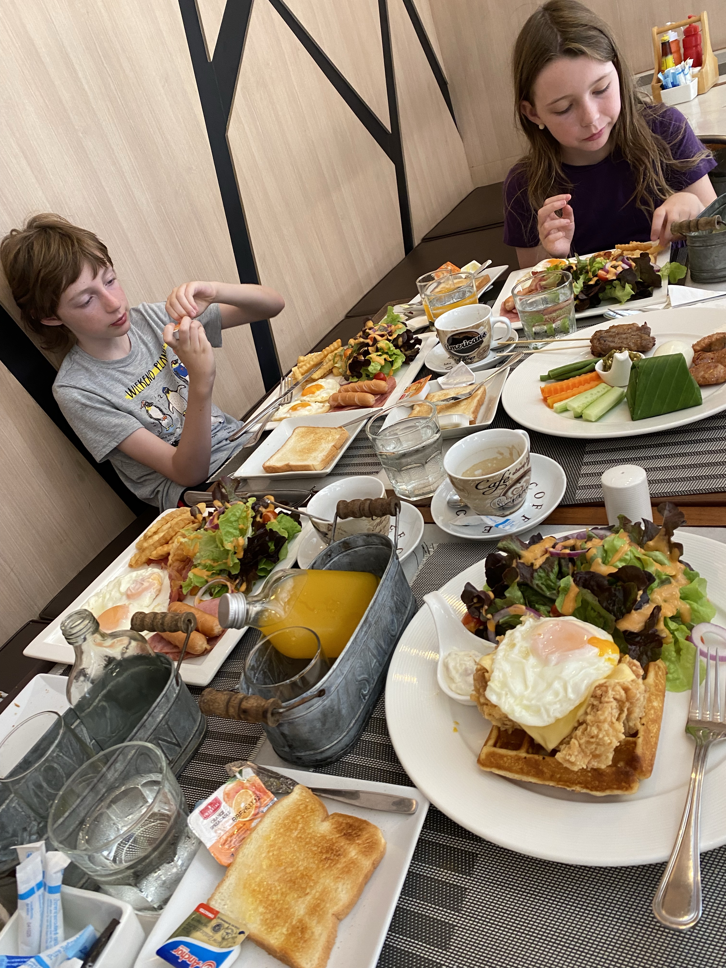We starting by eating one meal out a day while we explored the city. We eat western food sometimes, the kids still prefer it, but the Thai places we’ve found that cater to locals have fantastic food that’s super cheap.