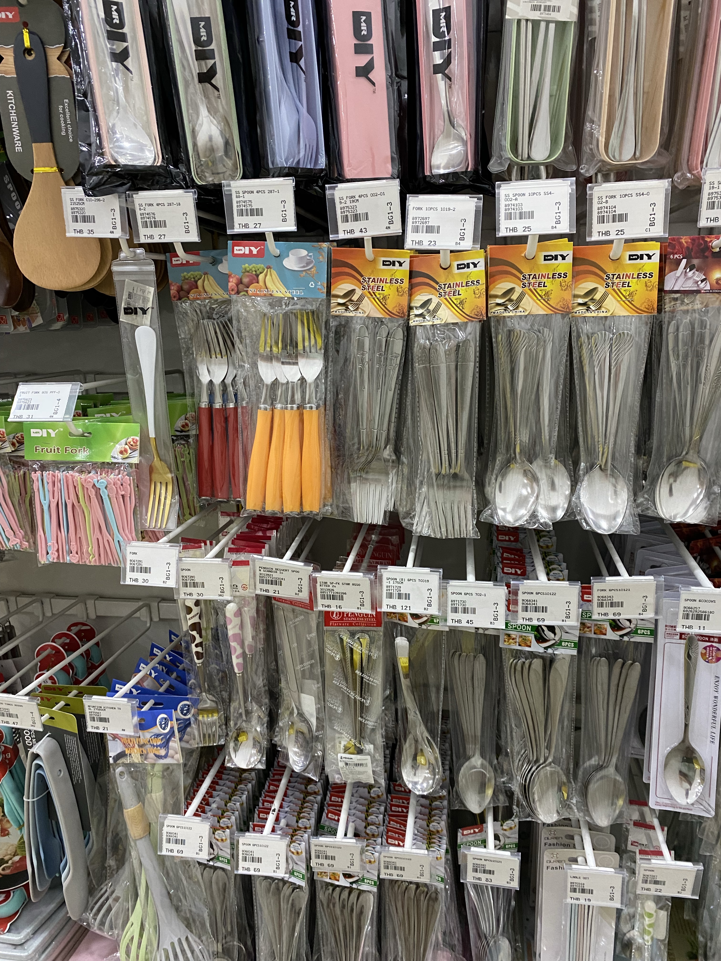 Besides the coffee maker and no oven, the other unusual things is there are no table knives. We thought it was weird we didn’t have any in our house (folks, spoons and chopsticks) but it turns out we can’t find any to buy either. Not a one. We managed to buy a small fish knife and use it for spreading butter, cream cheese, peanut butter, you name it.