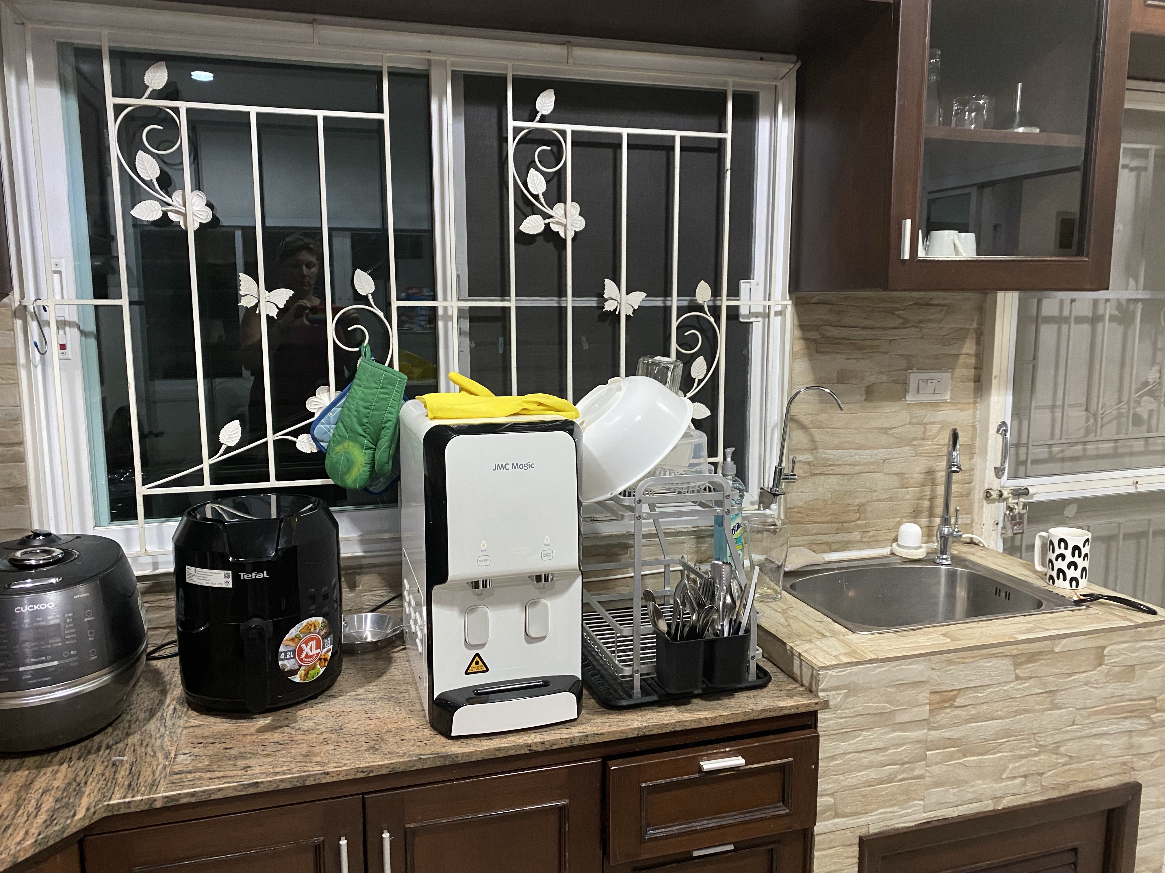 First we took inventory of the kitchen to see if we needed any essentials. Frying pans – check. Knifes – check. Rice cooker, microwave, air fryer – check. Water purifier- thank goodness. Coffee making capability – nope. Oven – nope?!? Guess we forgot to read that part closely in the rental description.