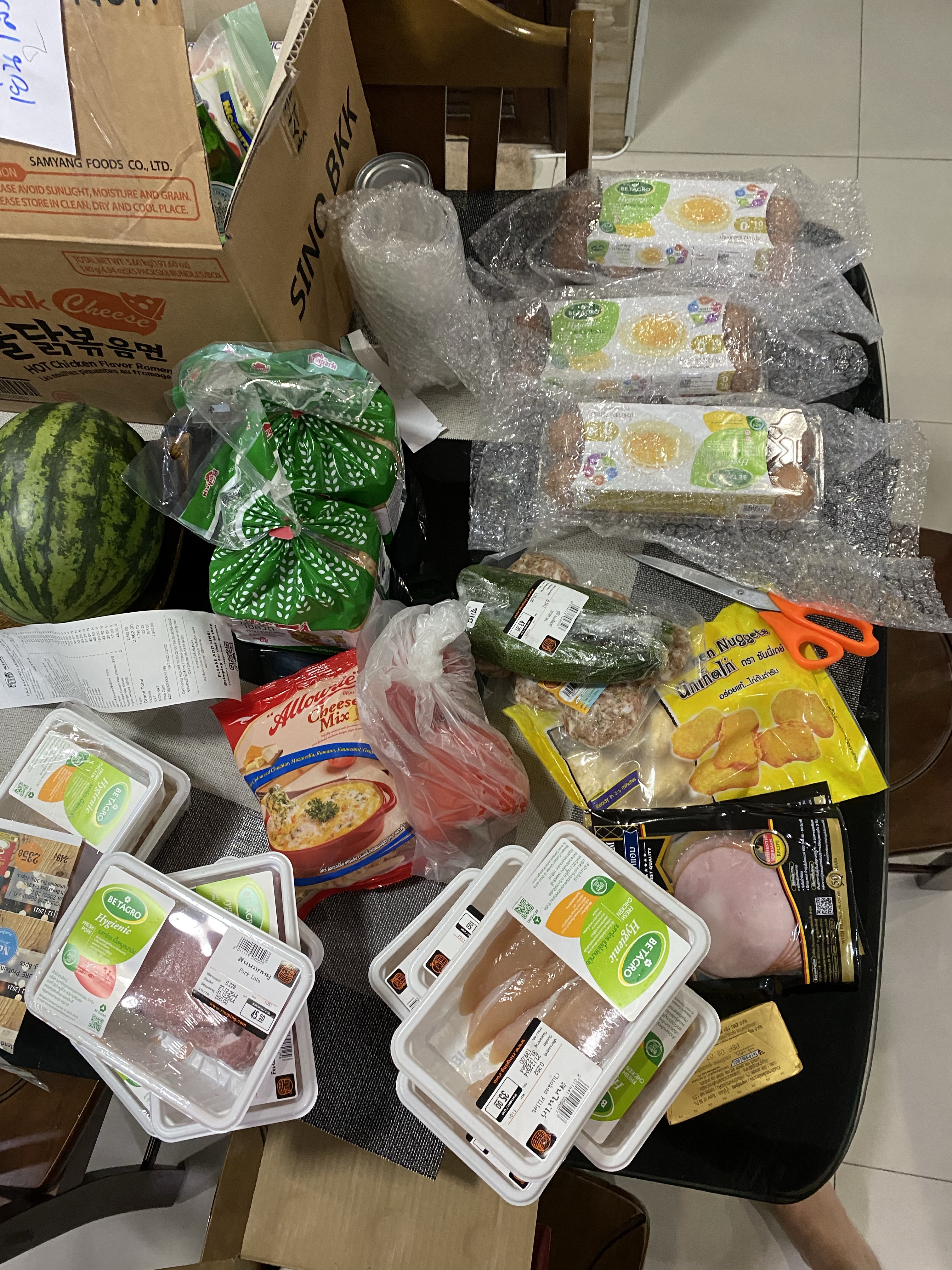We also got the standard supply of lunch meat, cheese, condiments, peanut butter and jelly for lunch. Dinner supplies were chicken, pork, rice, pasta and seasonings and oils etc to make it interesting. Plus vegetables and fruit to either eat fresh or cook.