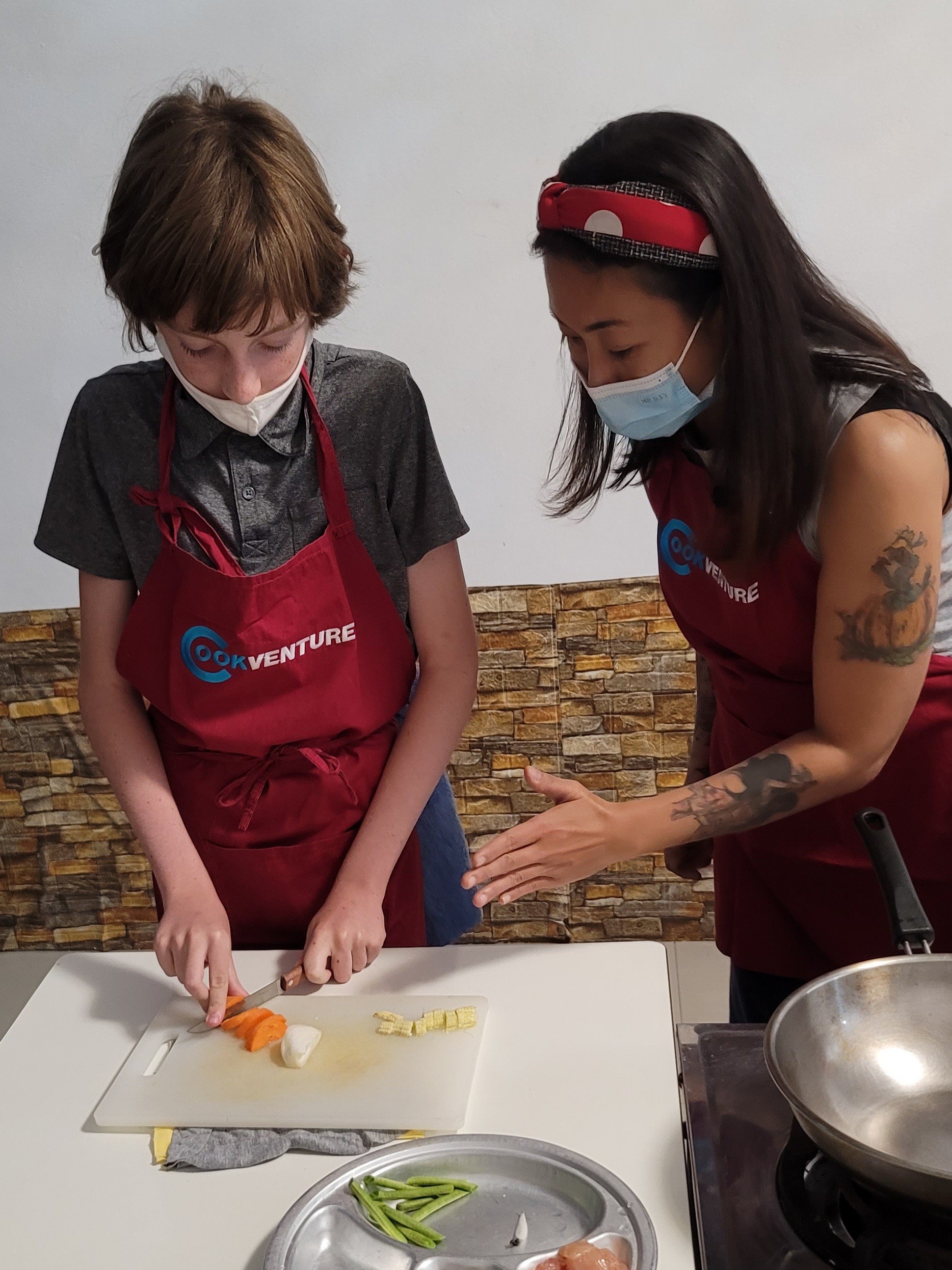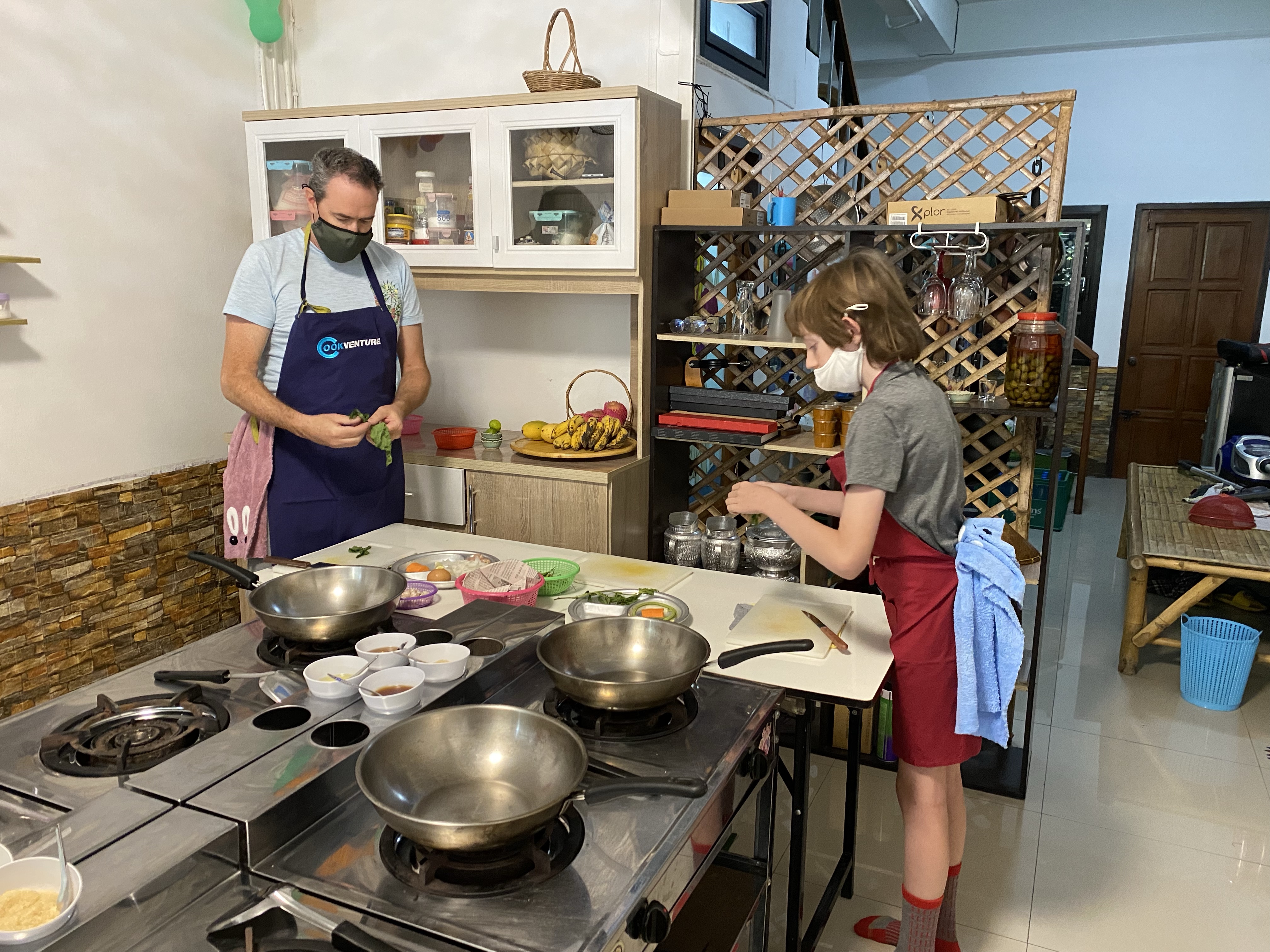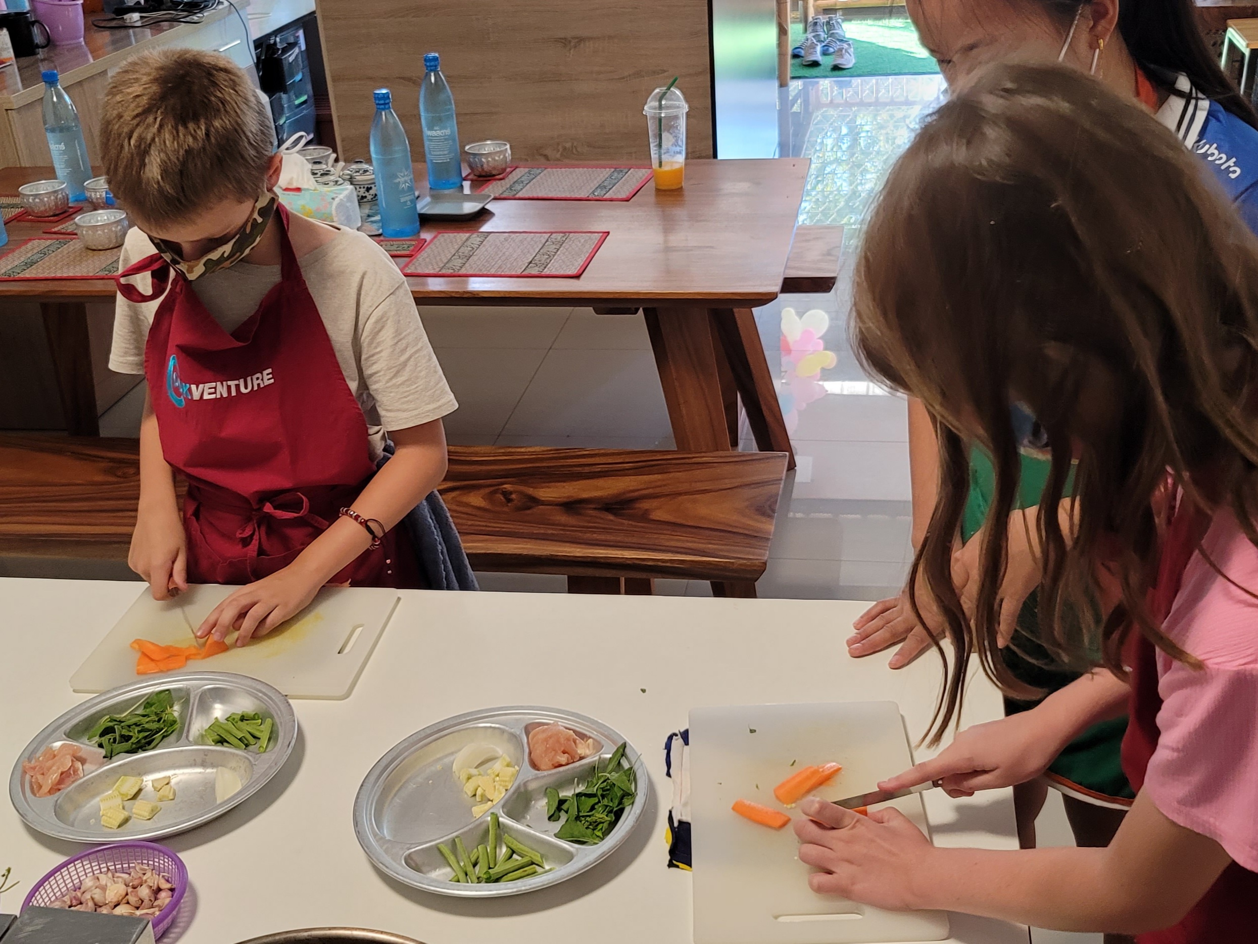 The CookVenture operation is run by a woman named Praphasri and the student kitchen is the front part of her house. It was incredibly well organized, fun for all of us and engaging for the kids for 4 hours.