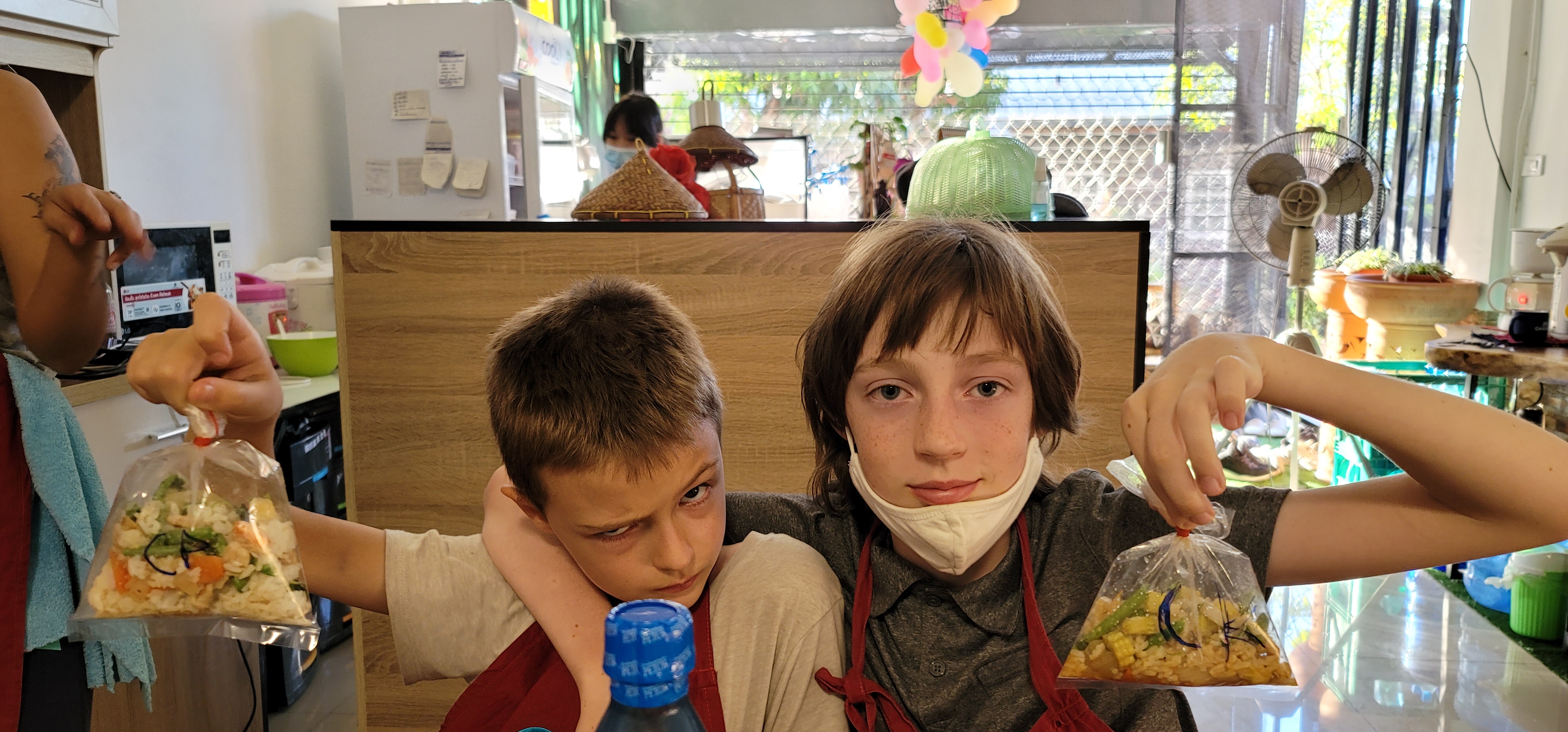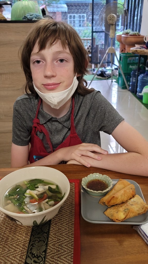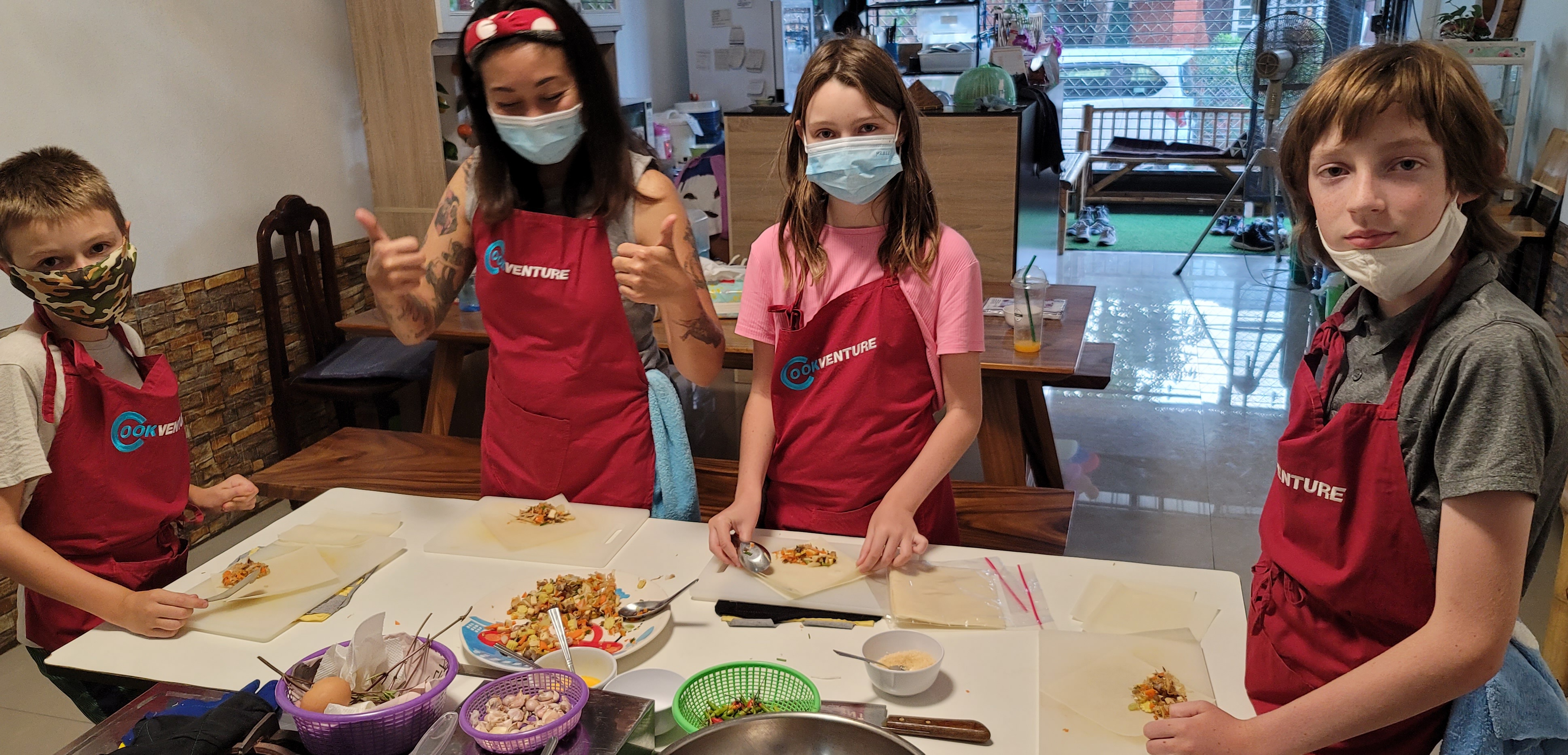 The CookVenture operation is run by a woman named Praphasri and the student kitchen is the front part of her house. It was incredibly well organized, fun for all of us and engaging for the kids for 4 hours.