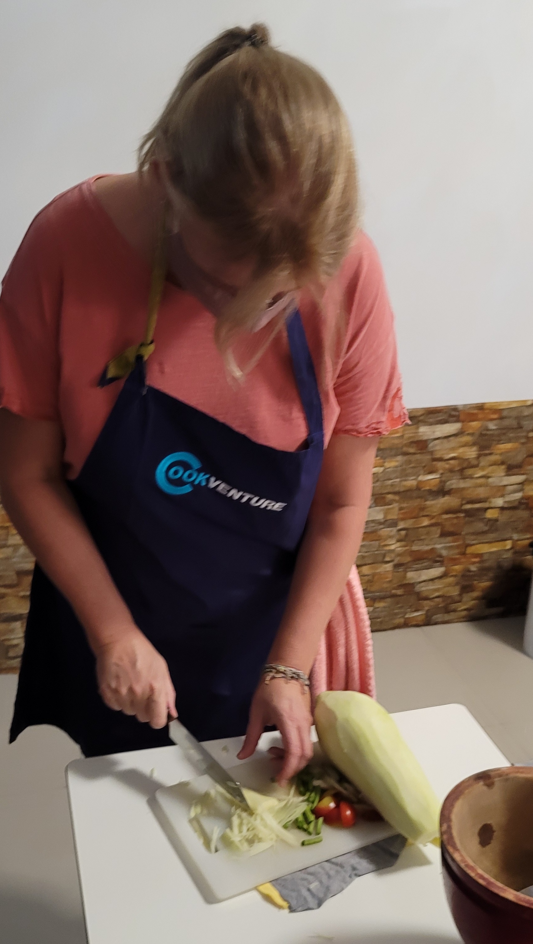 Before we arrived she had sent us a menu of choices to pick the dishes that we wanted to prepare and eat. Once we arrived at her kitchen, we had a quick refreshment, donned our aprons and got to work.