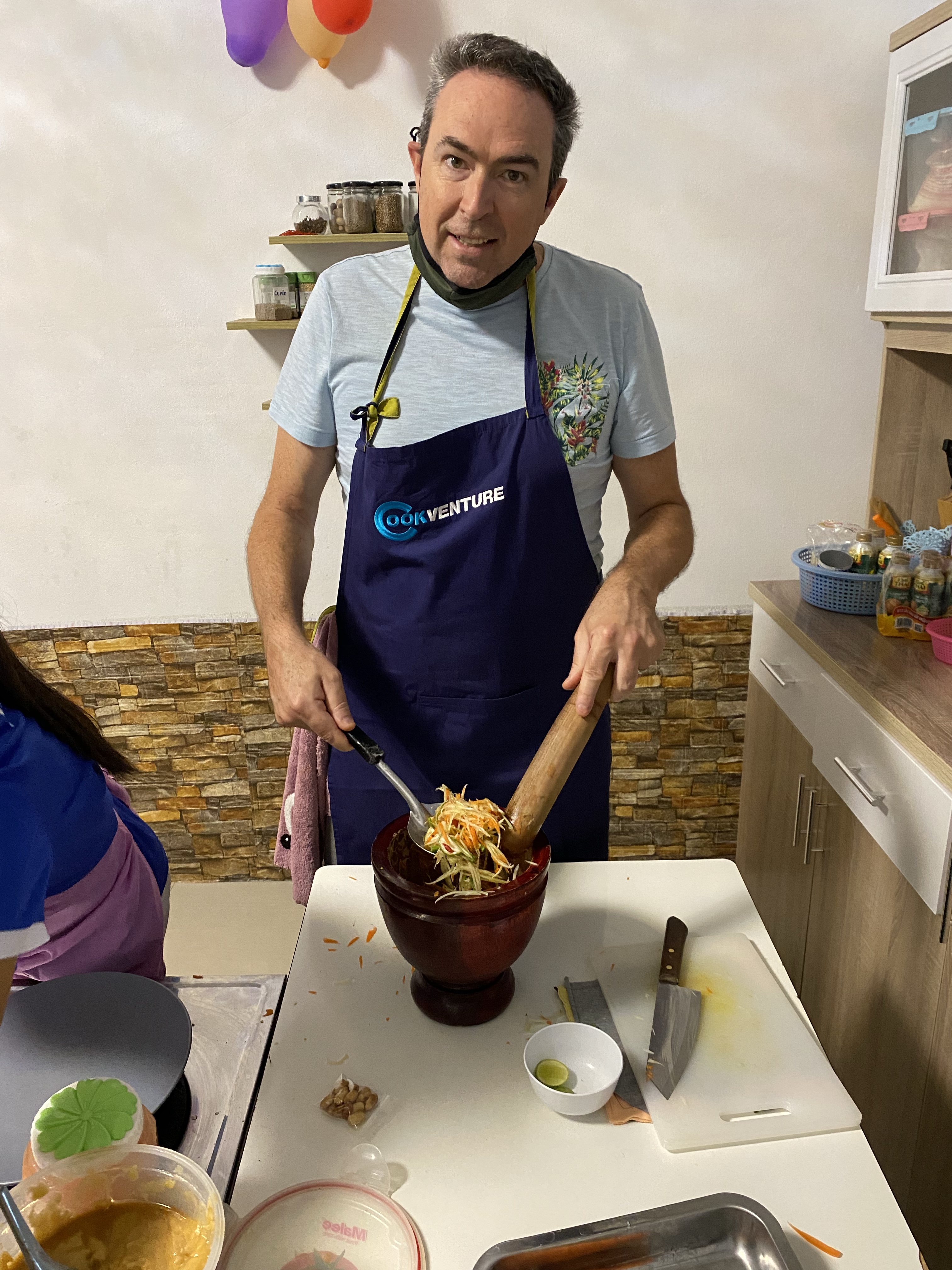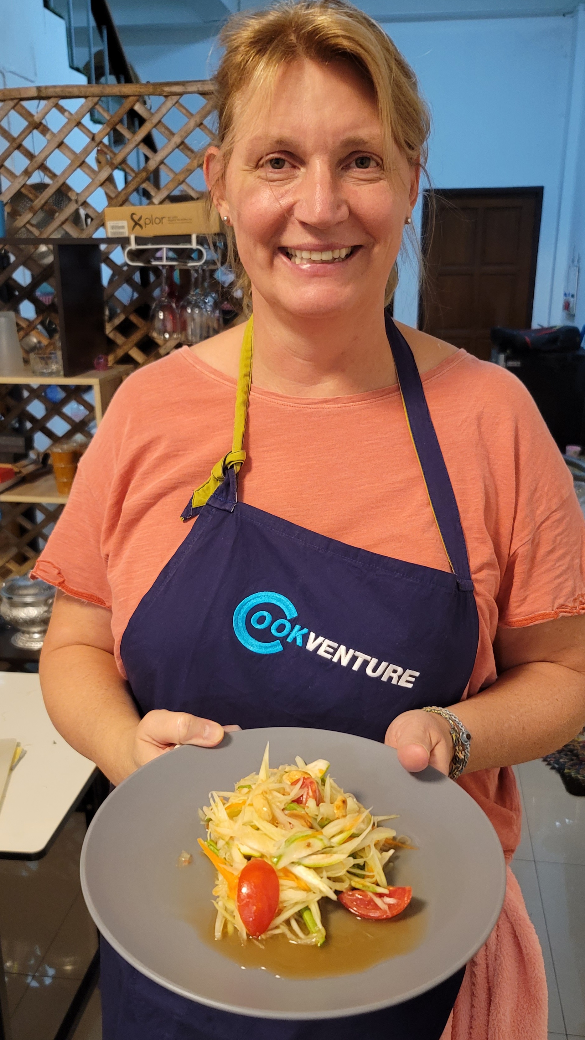 This afternoon we were under the excellent care of the CookVenture Home Cooking Studio. They teach how to cook delicious Thai food. It was a fantastic experience. We highly recommend cooking classes where you travel and this school if youโre ever in Chiang Mai.