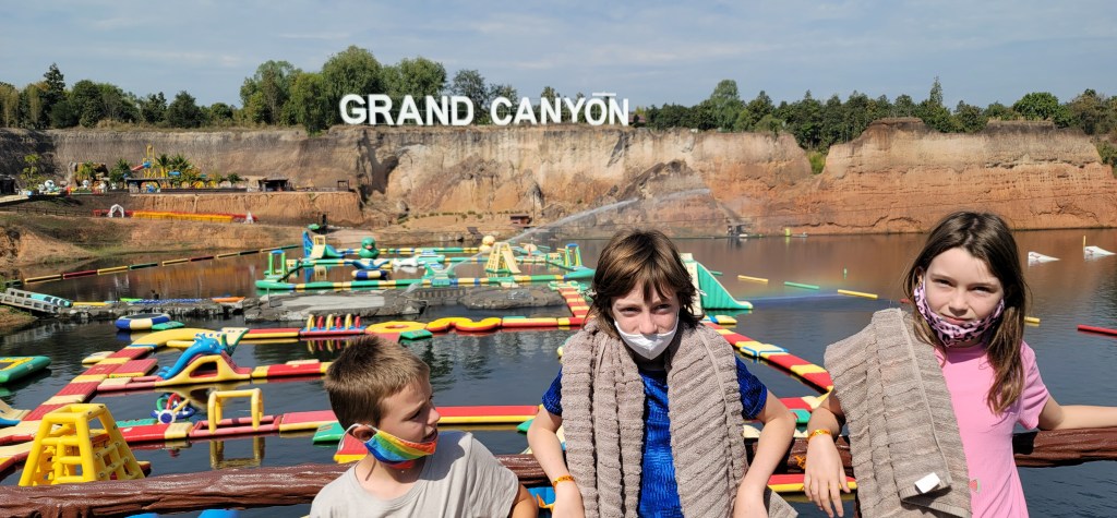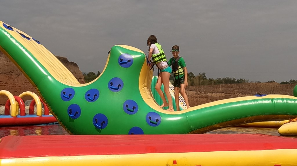 One of the first things that the kids wanted to try was the monster slides which dripped them directly into the quarry. This was about a 10 foot drop from the end of the slide.
