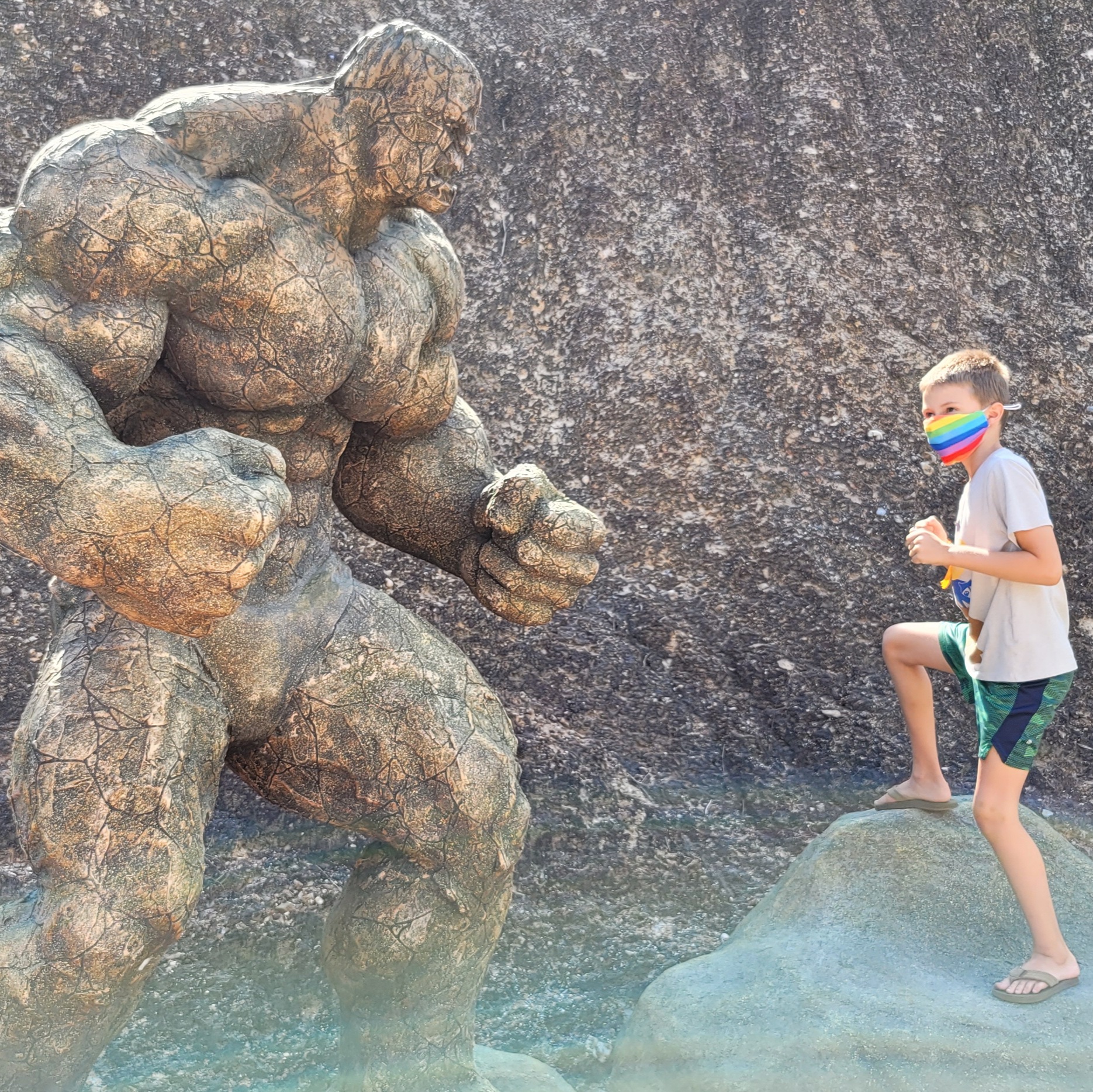 We also splashed around in a large kids zone area which had buckets of water randomly poured on us. There were also a few waterslides tame enough for the surgically-repaired father to enjoy.