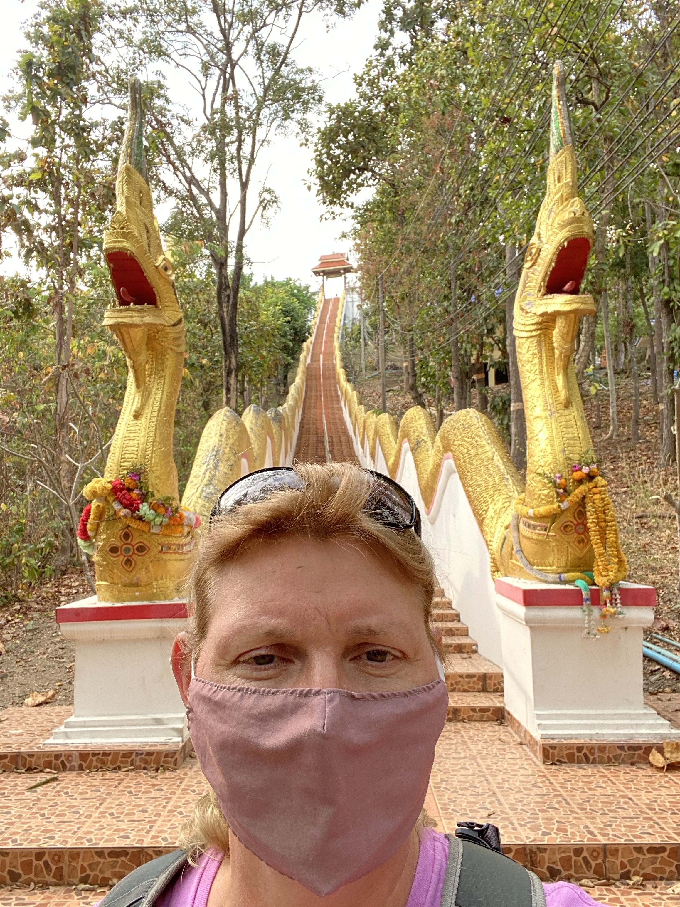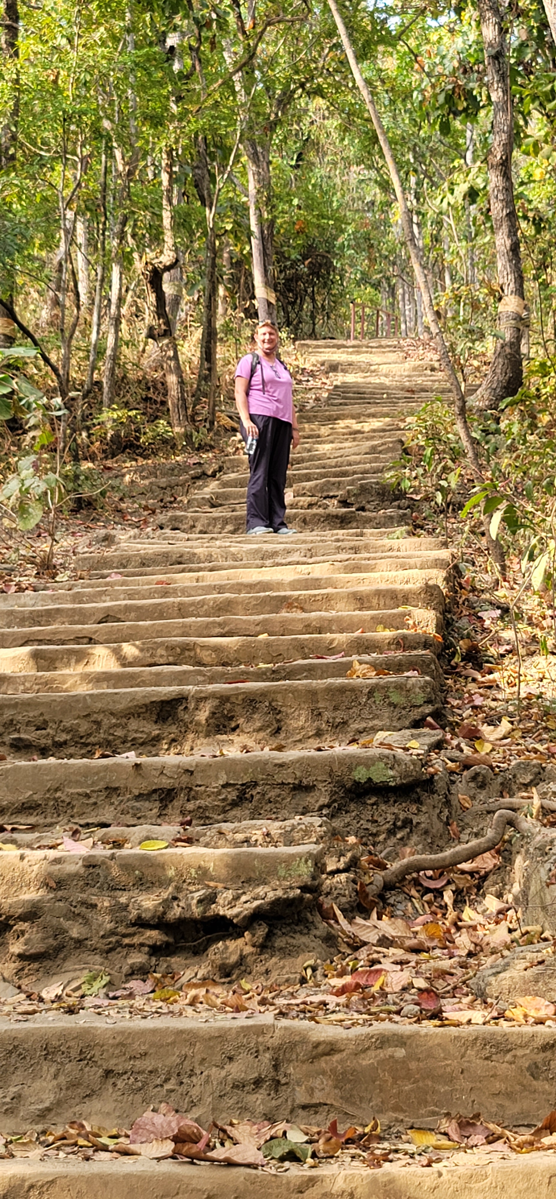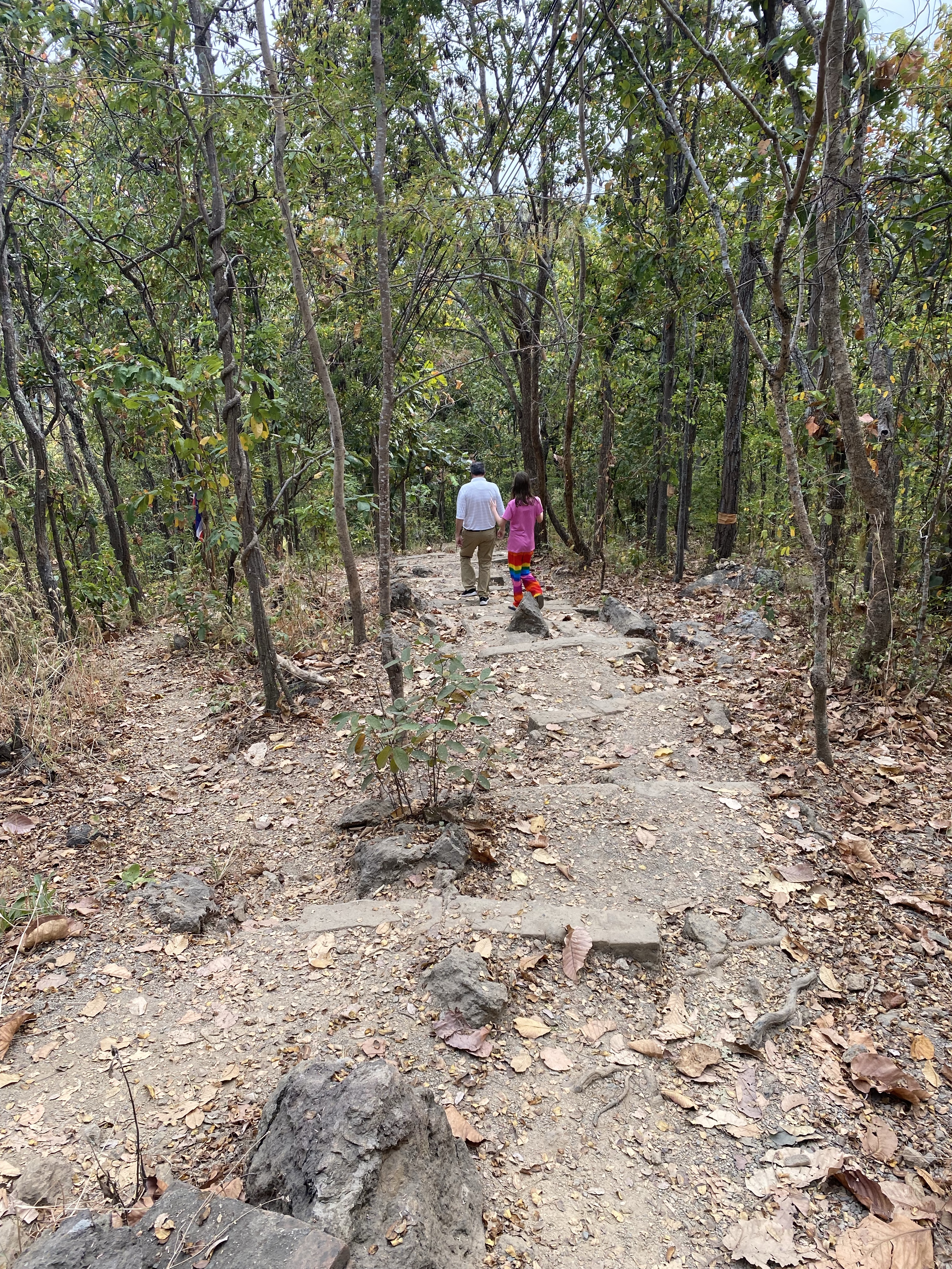 This 1000+ year old temple complex is set into the mountain and also features a large number of stairs for pilgrims to ascend. Our 5 Adventurers were dropped off at the top by their driver but walked down the 300+ steps. The top of the staircase closest to the temple was raised from the forest floor and was protected by two nagas similar to Wat Doi Suthep which we saw on Monday. The second half of the steps offered an experience much closer to what the original pilgrims may have had. We deserved the teasing from our driver about only walking down instead of both ways but we were happy with the choice.